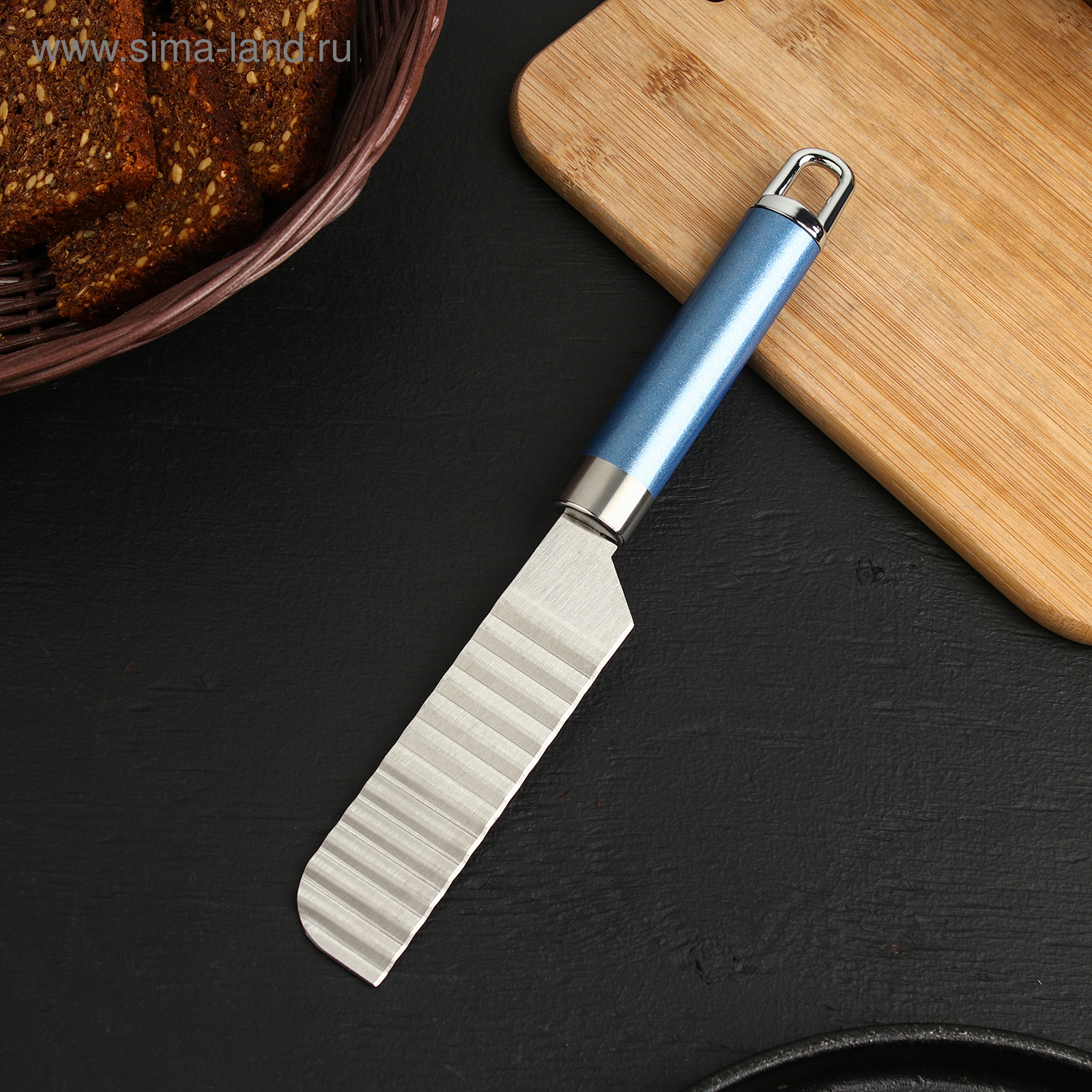 Нож для фигурной нарезки доляна lаgооnа, 25 см, нержавеющая сталь, цвет голубой металлик. Ножи для декоративной нарезки овощей и фруктов сегодня пользуются популярностью. Изделие имеет характерное лезвие с выпуклыми зубцами по всему прямому полотну. При нарезании продуктов он придаёт поверхности ломтиков красивую волнистую форму. Такими ножами удобно резать торты, сыры и ветчину. С помощью изделия можно приятно удивить домочадцев, создавая кулинарные шедевры из имеющихся под рукой продуктов. Цвет: Голубой Длина лезвия, см: 11.2 Материал ручки: Нержавеющая сталь Материал: Нержавеющая сталь Материал лезвия: Нержавеющая сталь  развернуть описание ▼