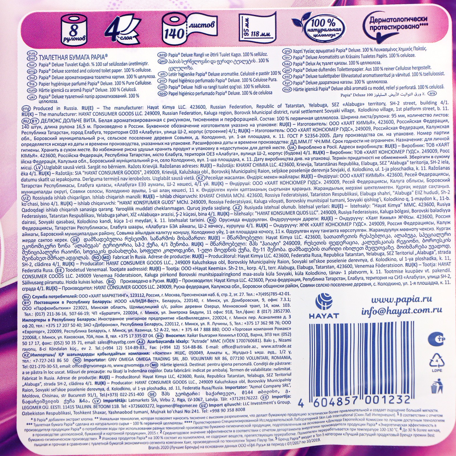 Туалетная бумага Papia Deluxe Dolce Vita, 4 слоя, 8 рулонов