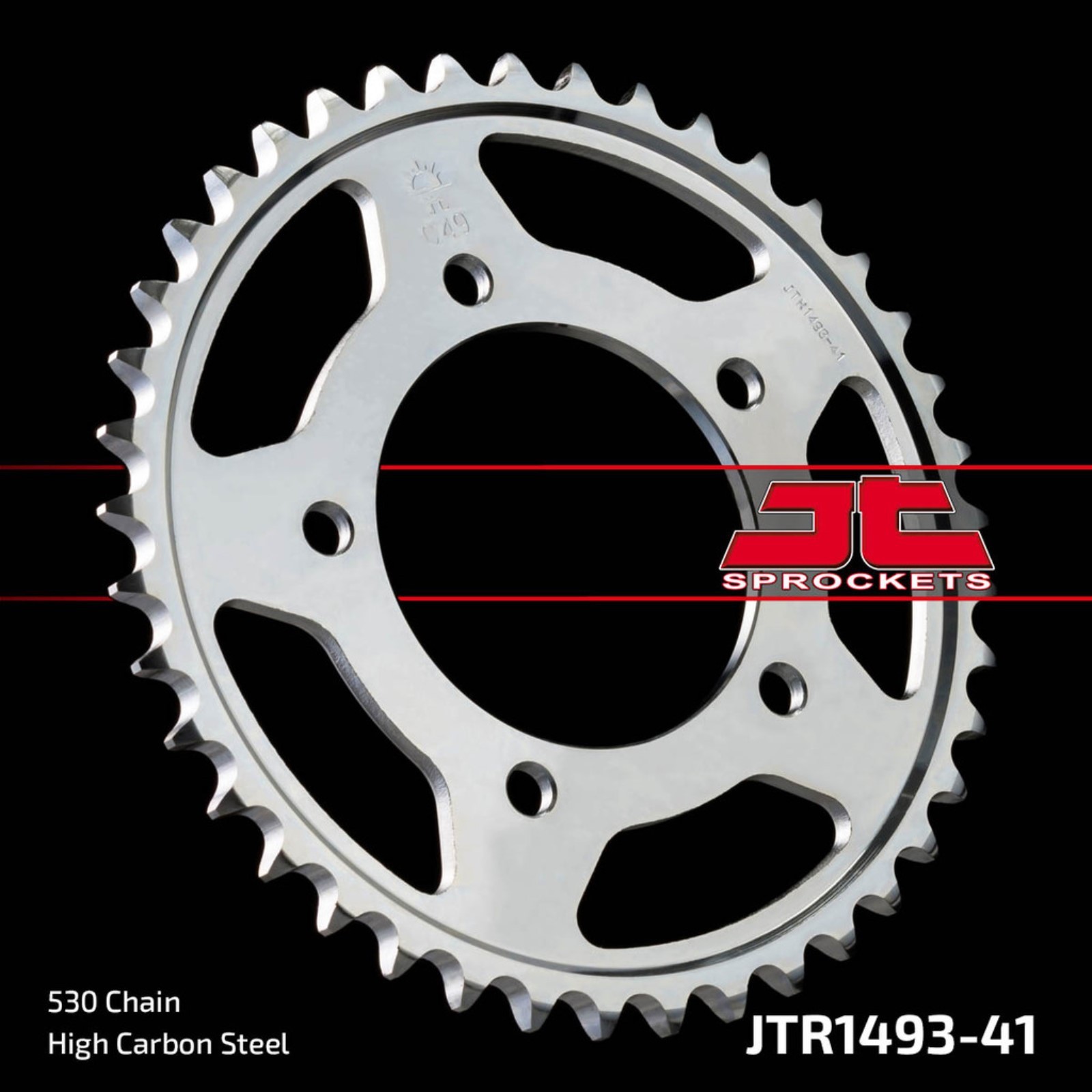 Звезда задняя ведомая jtr1493 для мотоцикла стальная, цепь 530, 41 зубье. Деталь подойдёт для KAWASAKI ZX-14 (2006-2010)KAWASAKI ZX-14 (2011-2011)KAWASAKI ZZR 1400 (2006-2010)KAWASAKI ZZR 1400 (ABS) (2006-2009) Количество зубьев: 41 Вид звезды: Ведомая  развернуть описание ▼