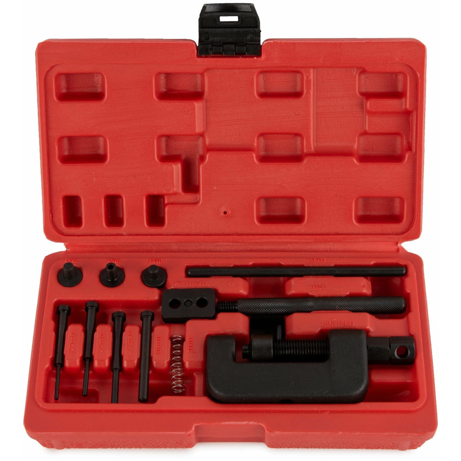 Набор инструмента для расклёпки, заклёпки цепи jt. Набор профессионального инструмента для расклепки и заклепки цепей размерностей 420, 428, 520, 525 и 530 в пластиковом кейсе. Отлично подойдет как для мотосервиса, так и для частного пользования. Используется для замков цепи, требующих развальцовывания.