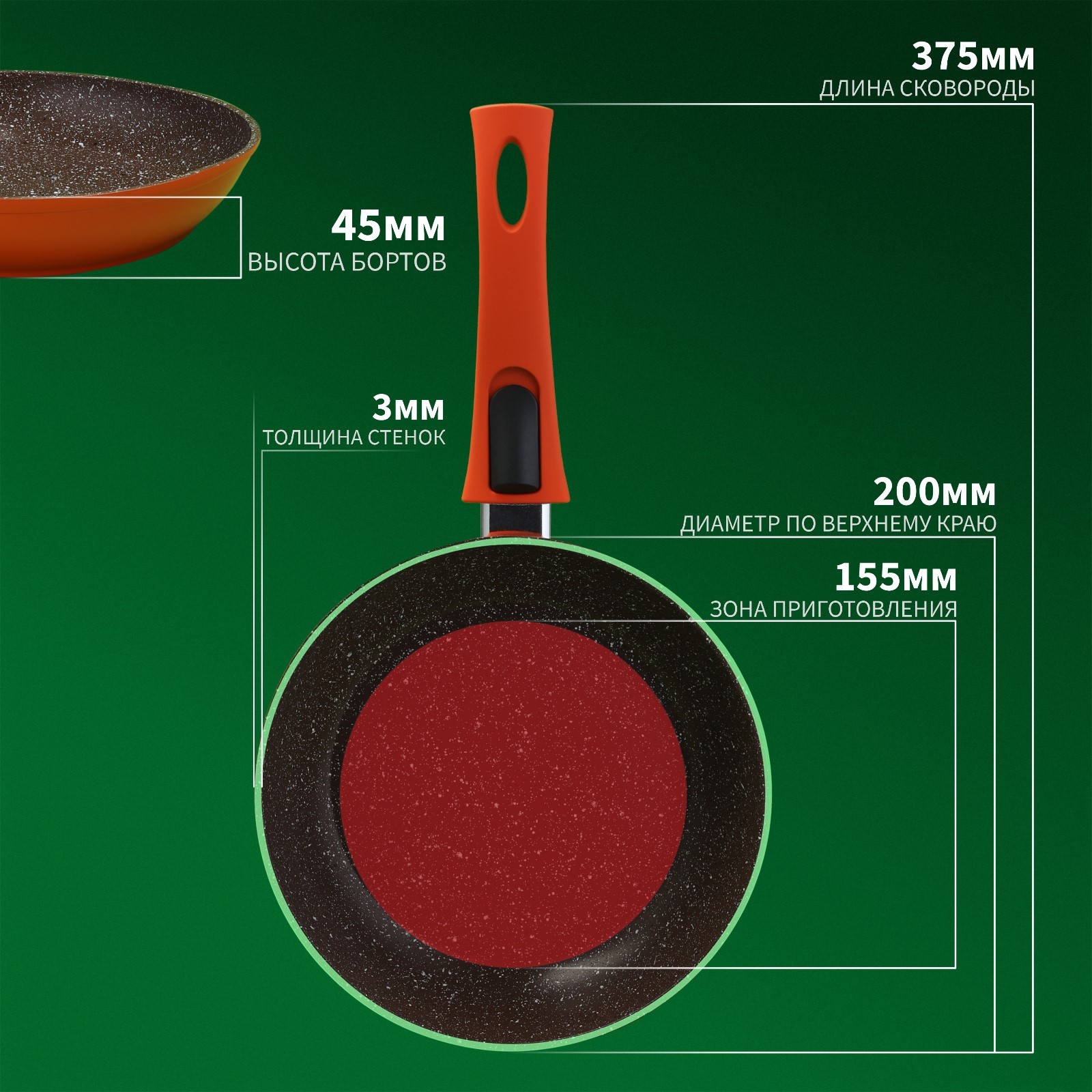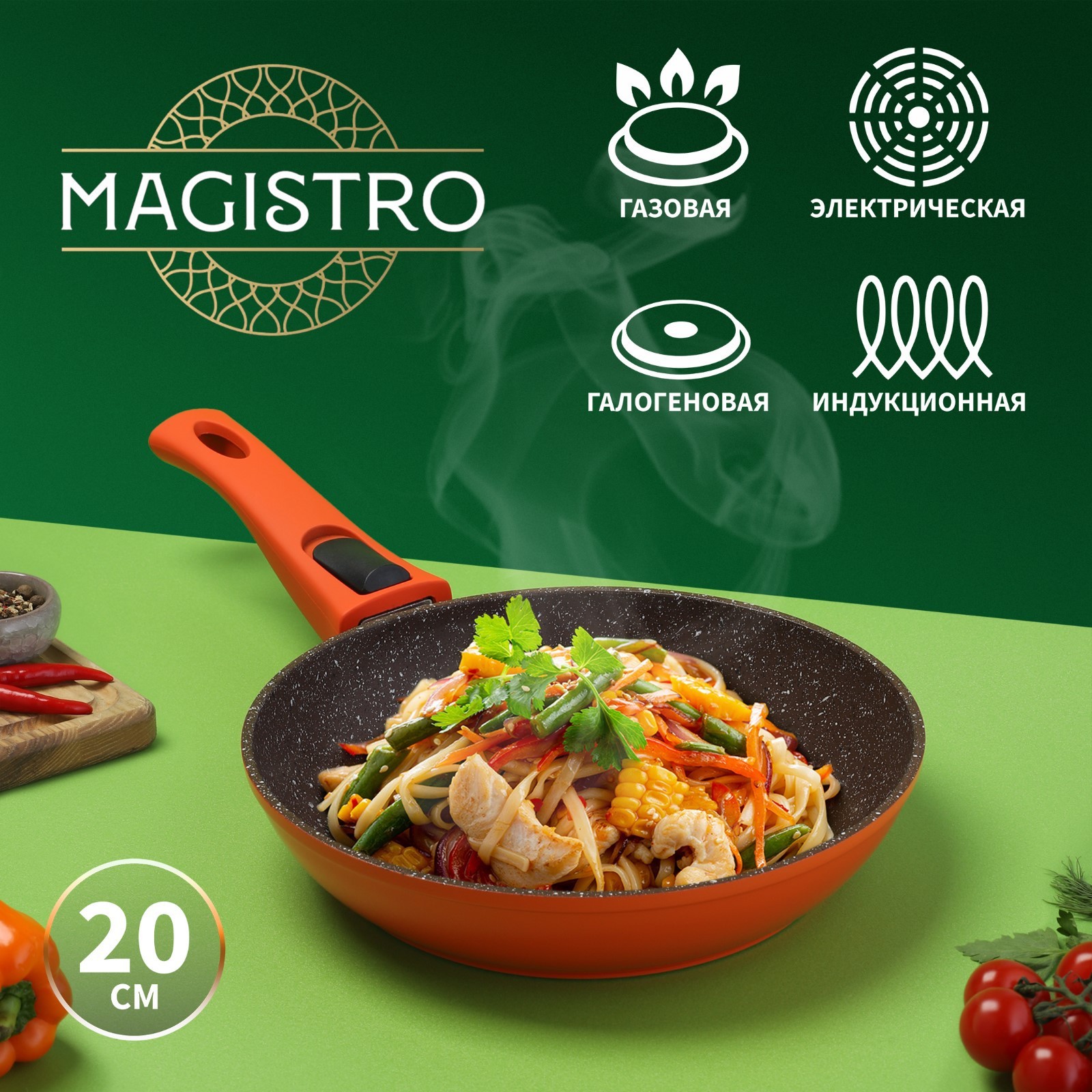 Сковорода Magistro Terra, D=20 см, съёмная ручка Soft-touch, антипригарное покрытие, индукция, цвет оранжевый