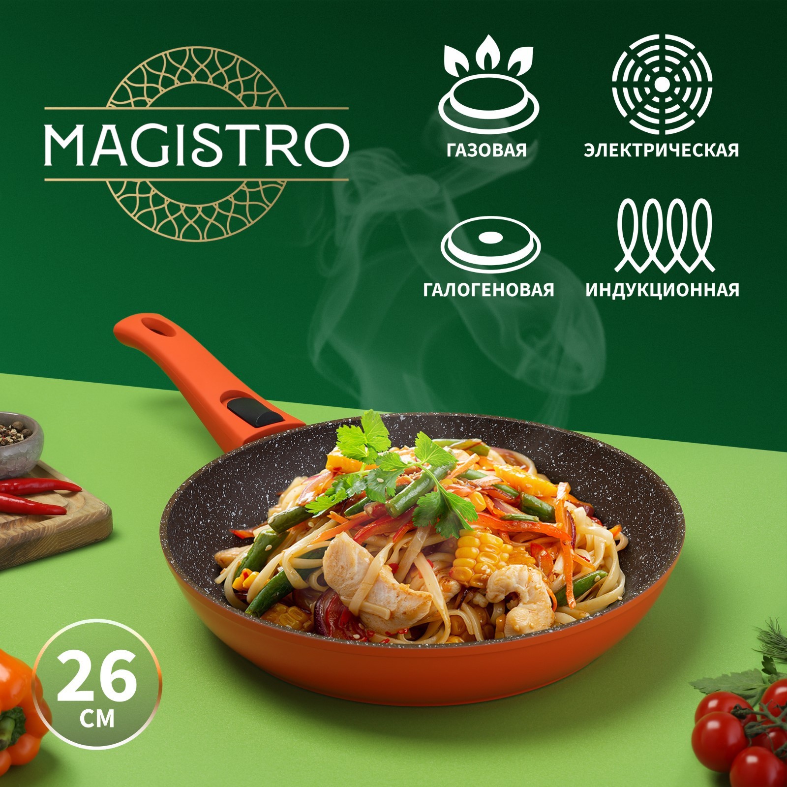 Сковорода Magistro Terra, D=26 см, съёмная ручка Soft-touch, антипригарное покрытие, индукция, цвет оранжевый
