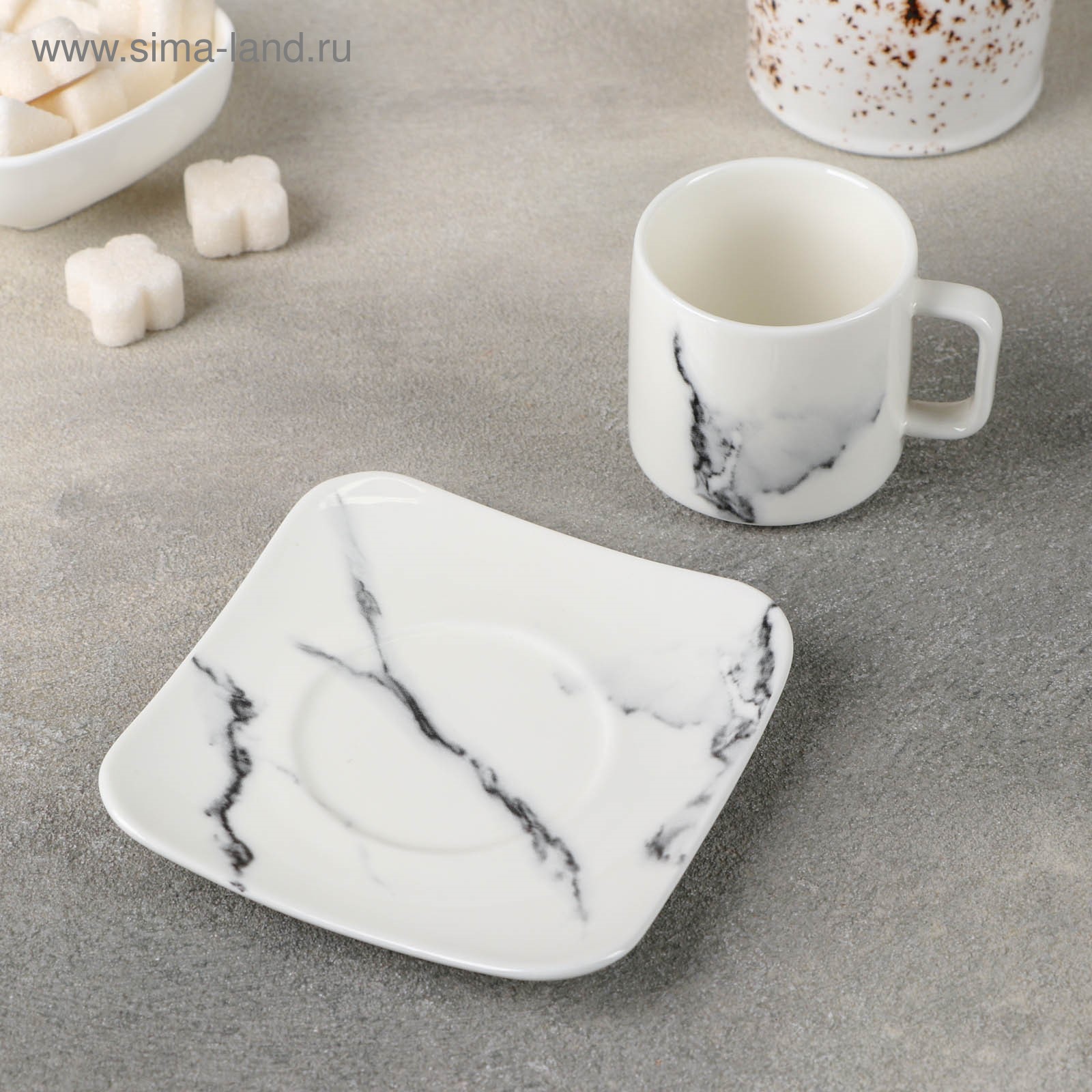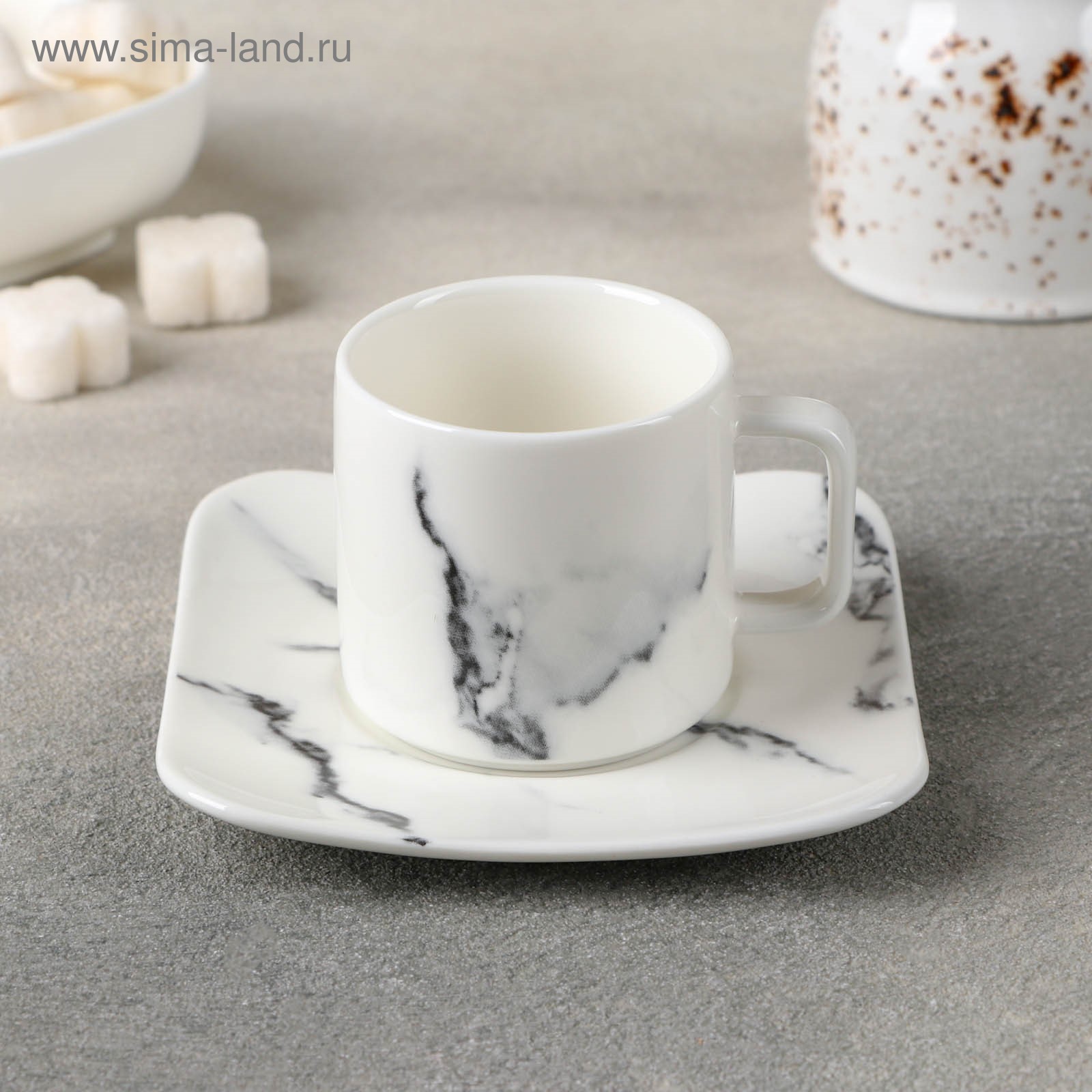 Кофейная пара фарфоровая «мрамор», 2 предмета: чашка 90 мл, блюдце D=11,2 см, цвет белый