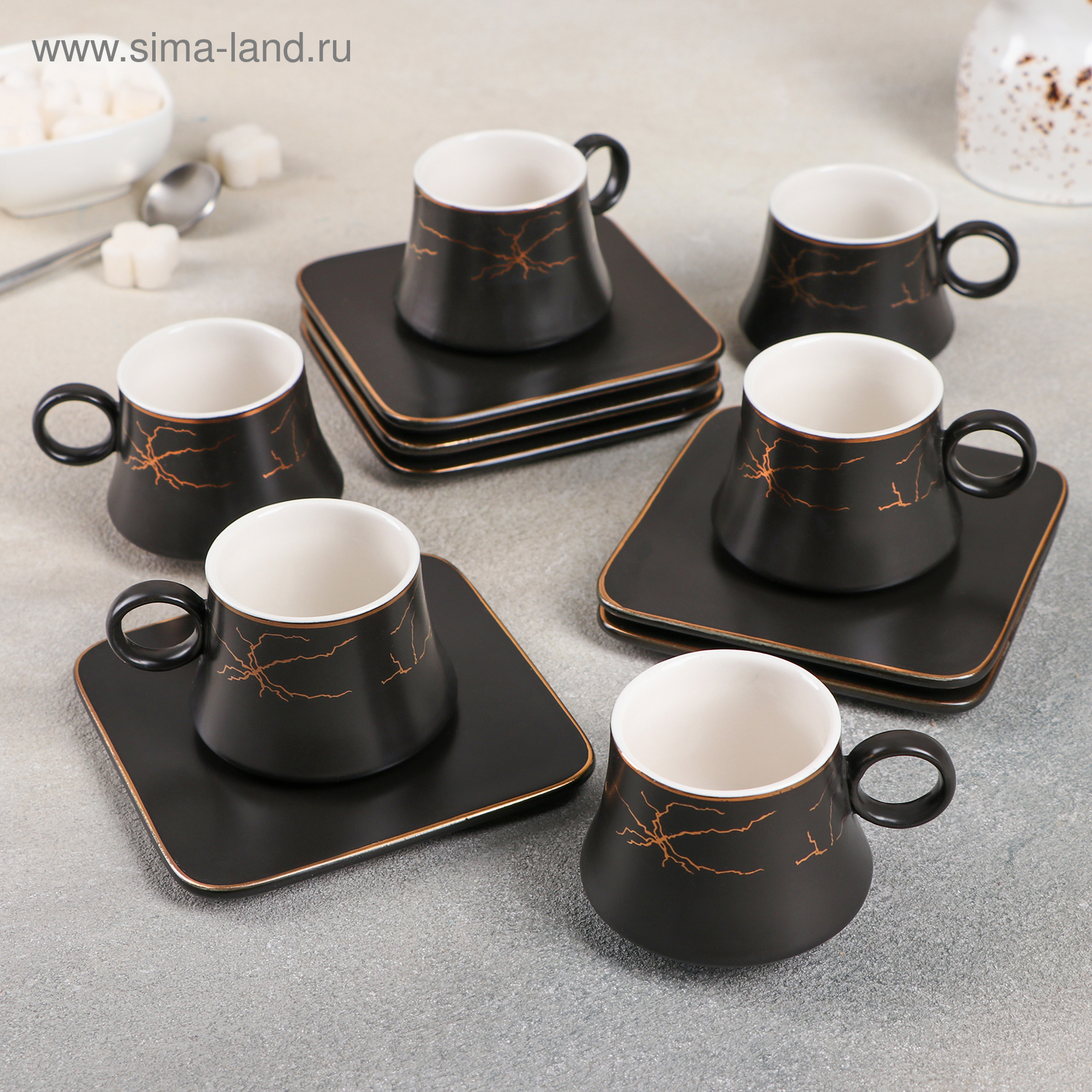 Набор керамический кофейный «мейси», 12 предметов: 6 чашек 100 мл, 6 блюдец D=11 см, цвет чёрный
