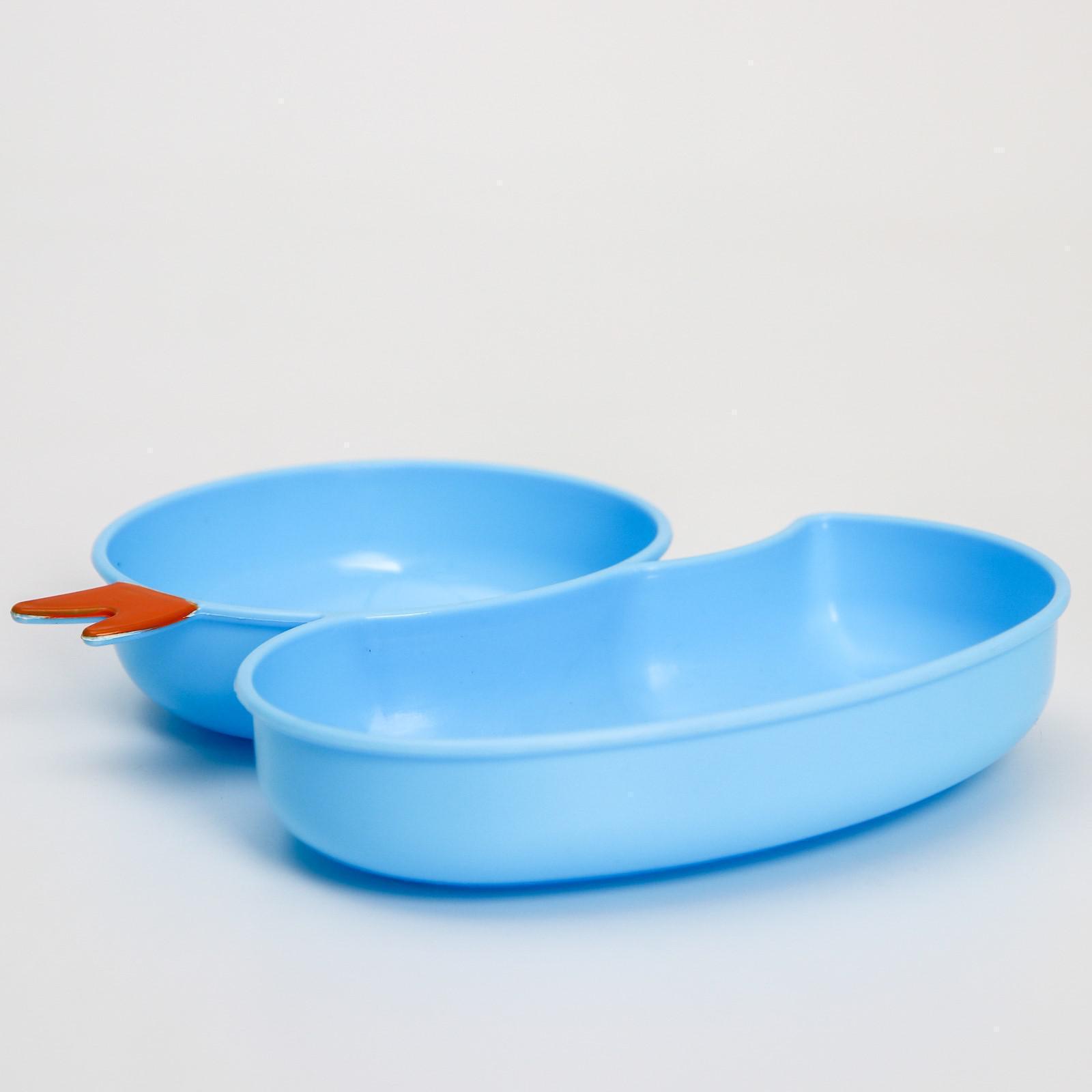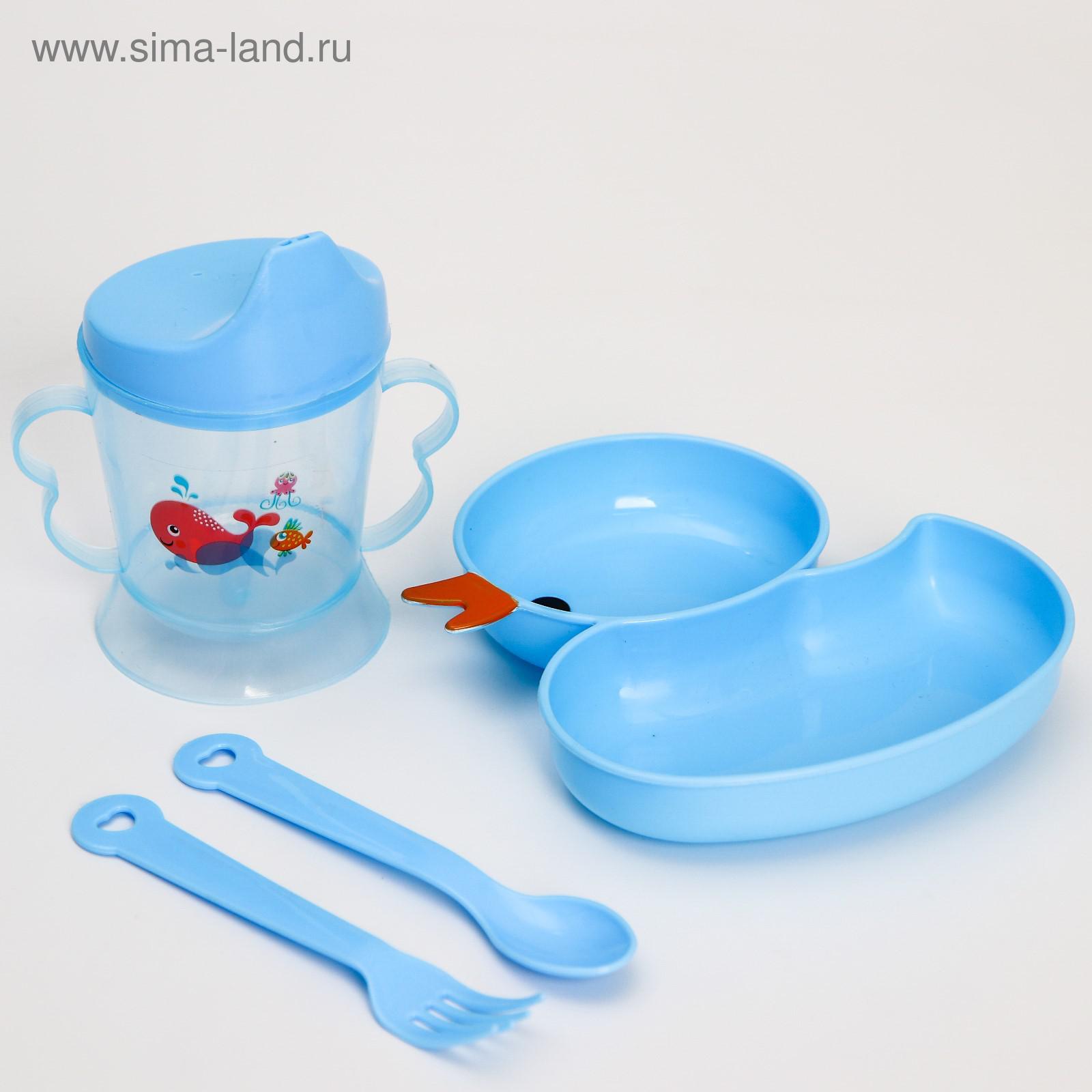 Набор посуды 4 предмета, миска, вилка, ложка, поильник твердый носик 200 мл., цвет микс