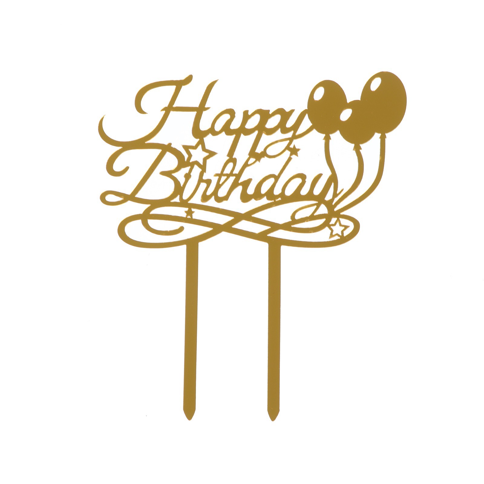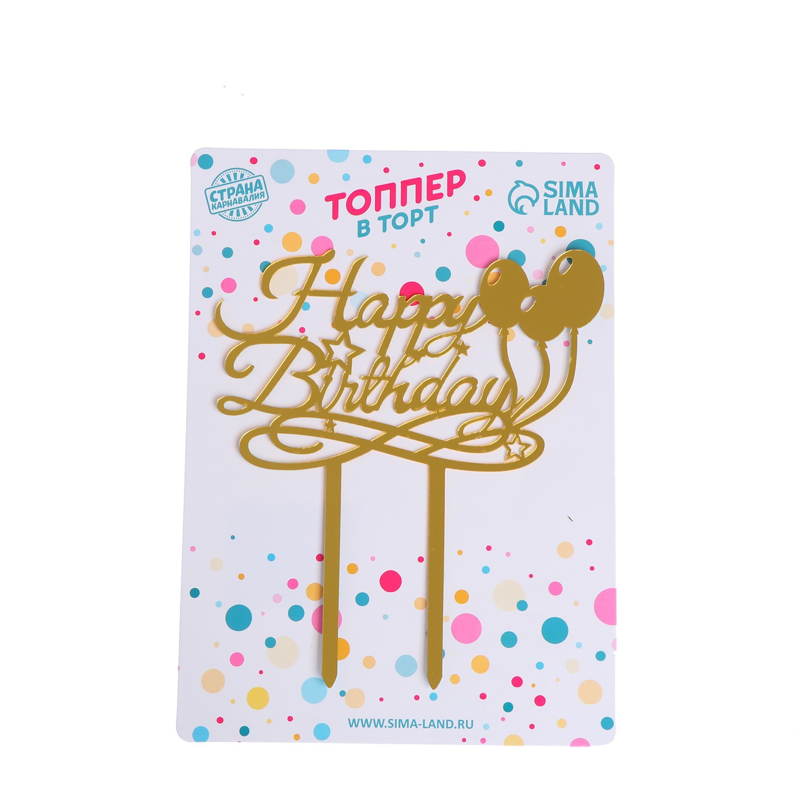 Топпер «с днём рождения», шарики, цвет золотой Топпер «с днём рождения», шарики, цвет золотой