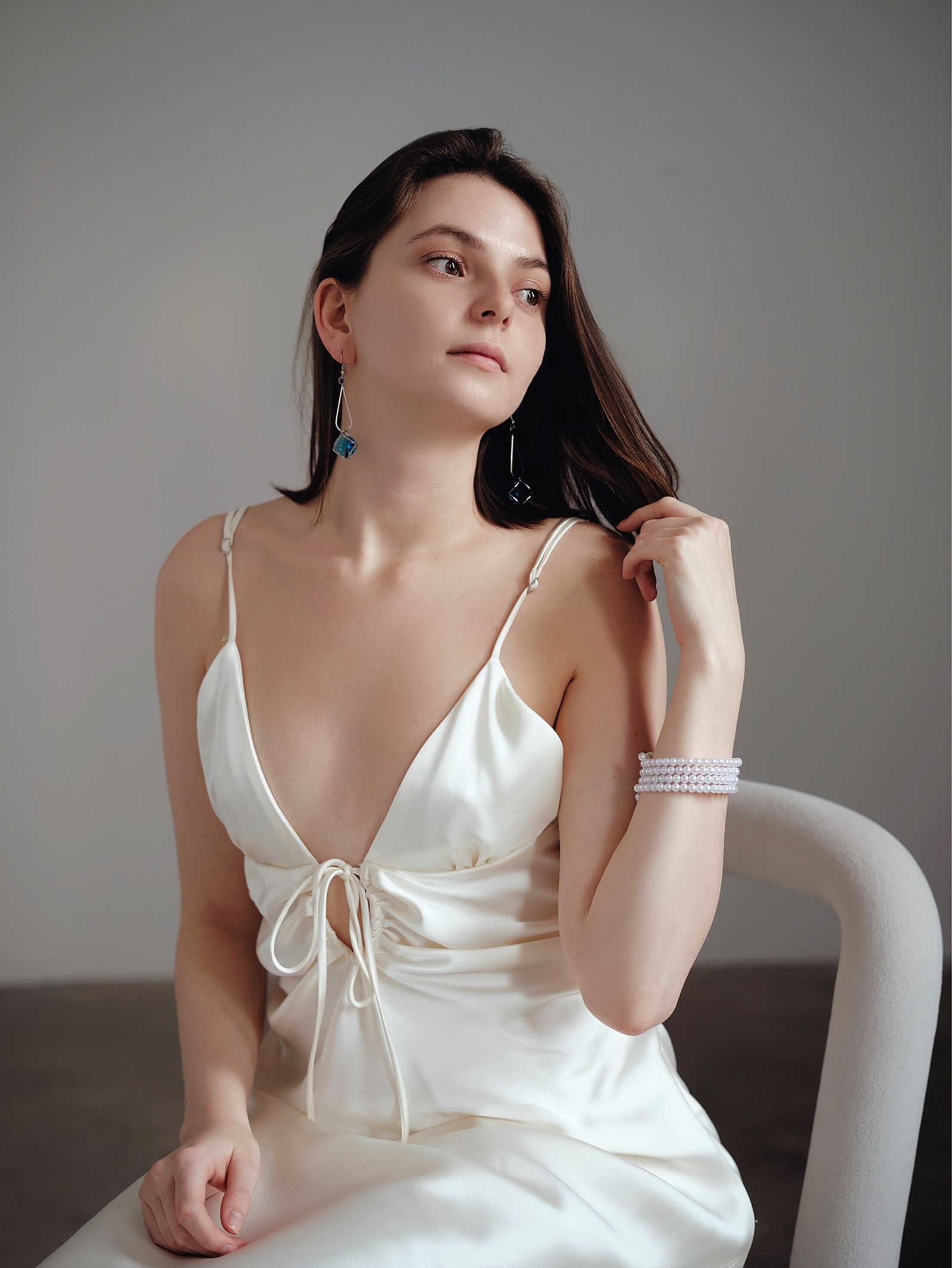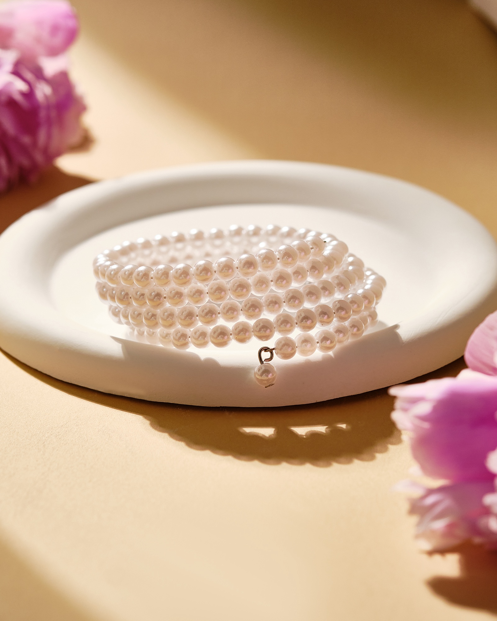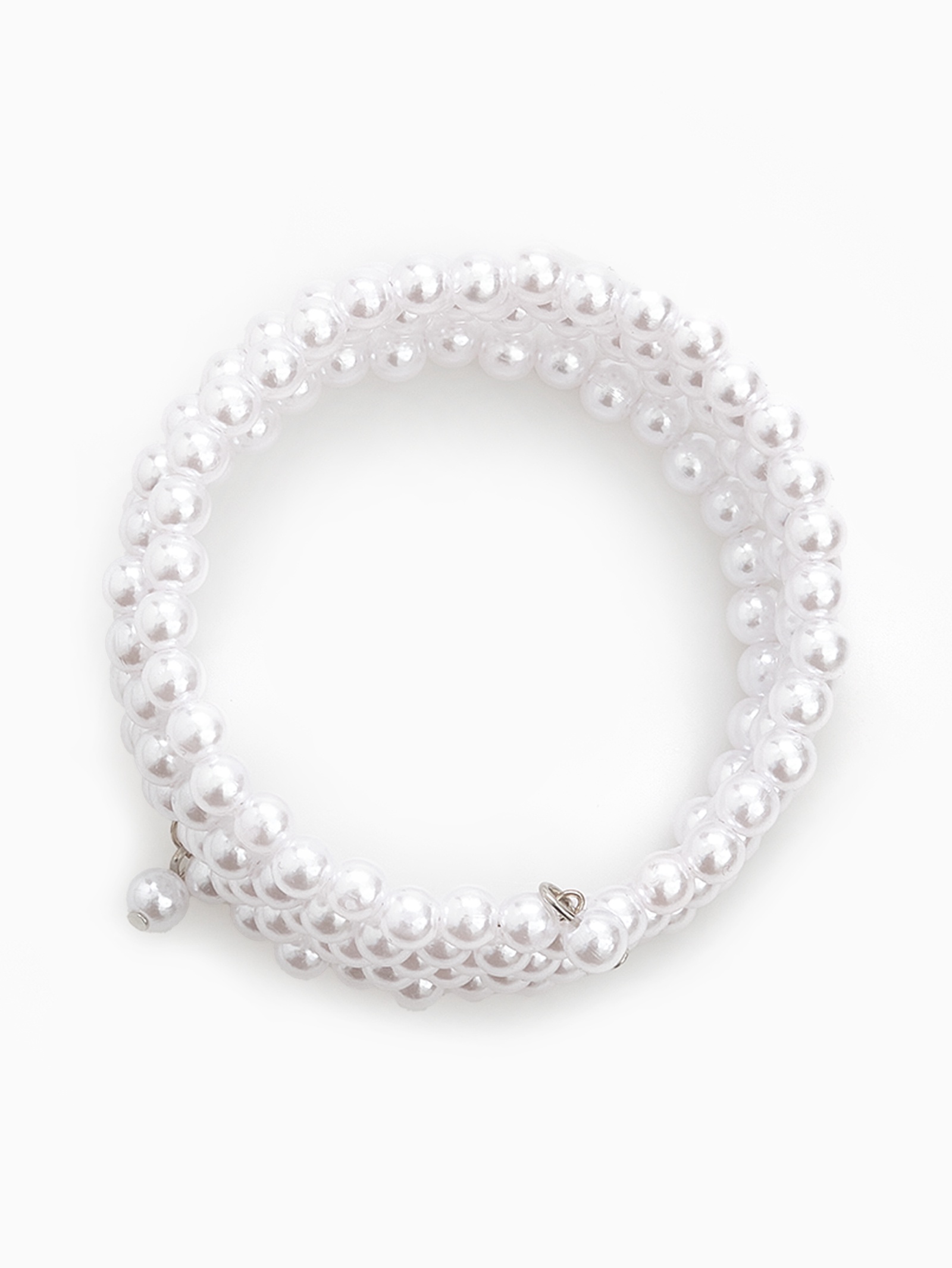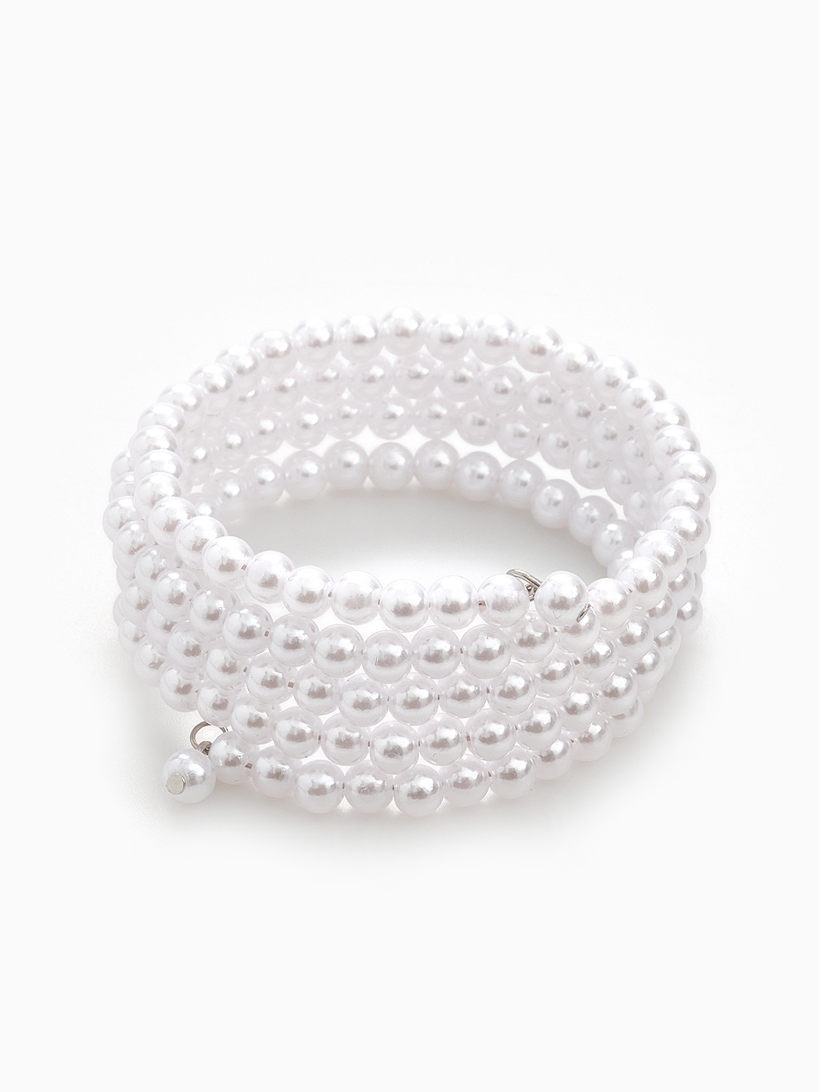 Браслет жемчуг «невеста» бусины D=0,5, 4 ряда с пружинкой, цвет белый