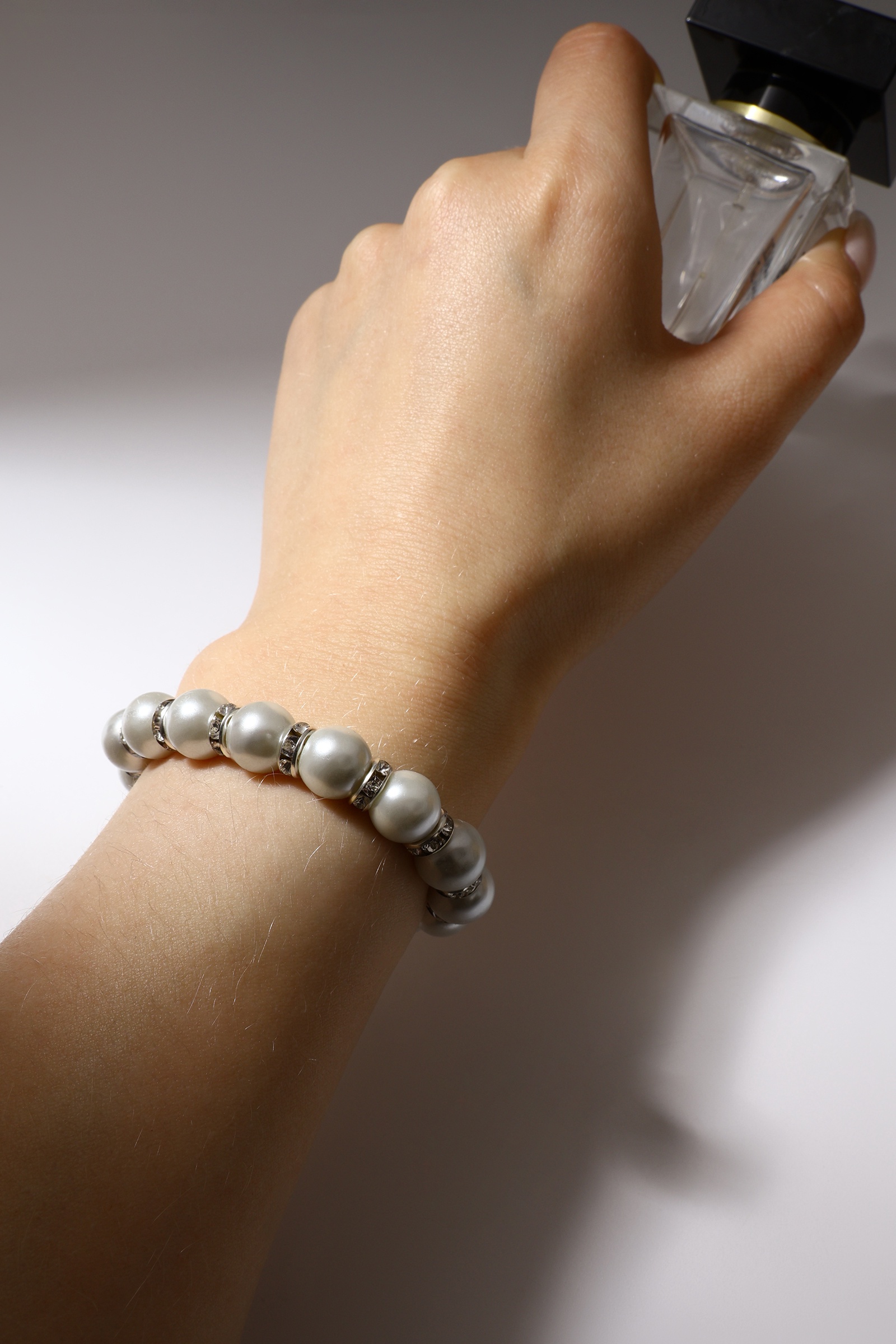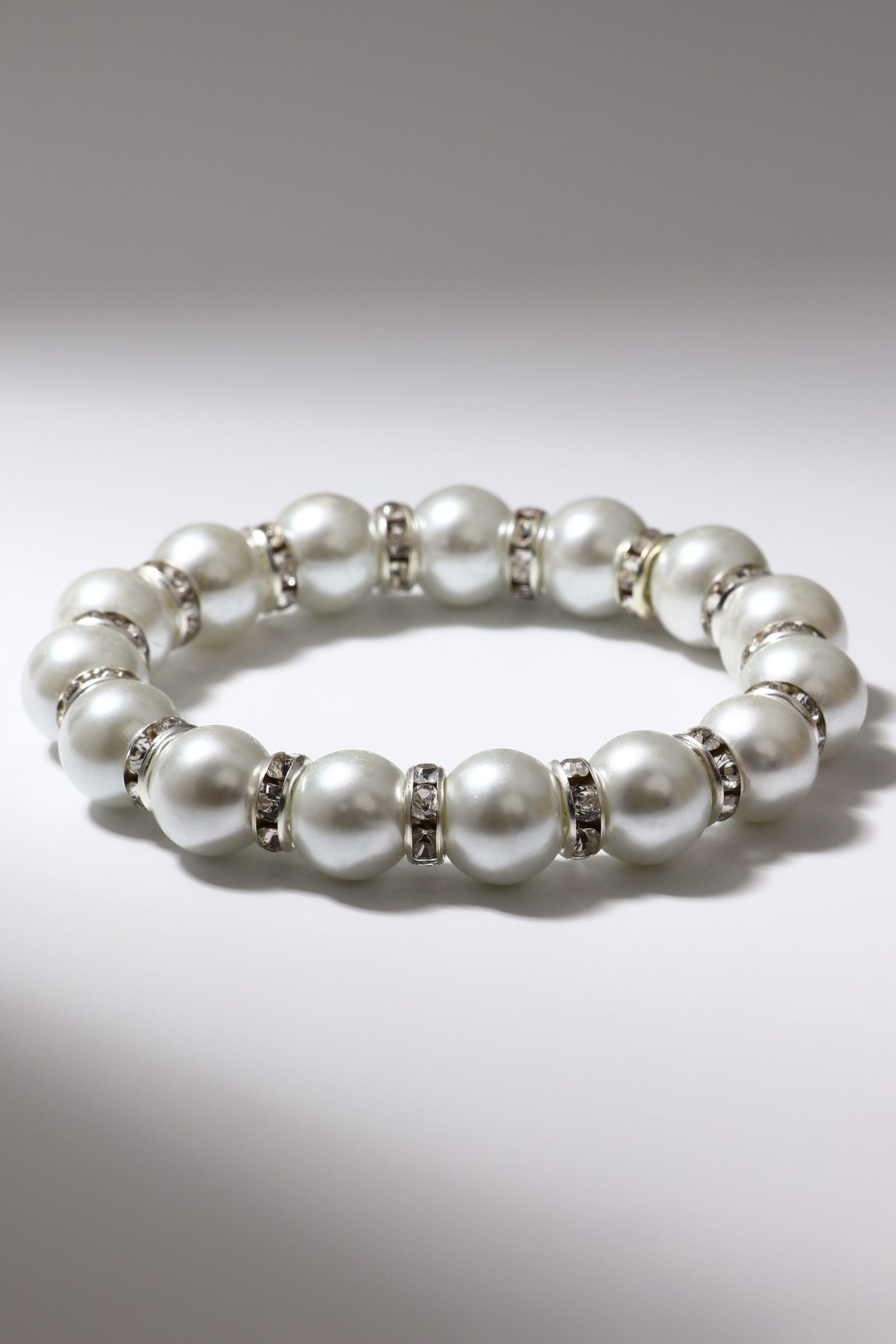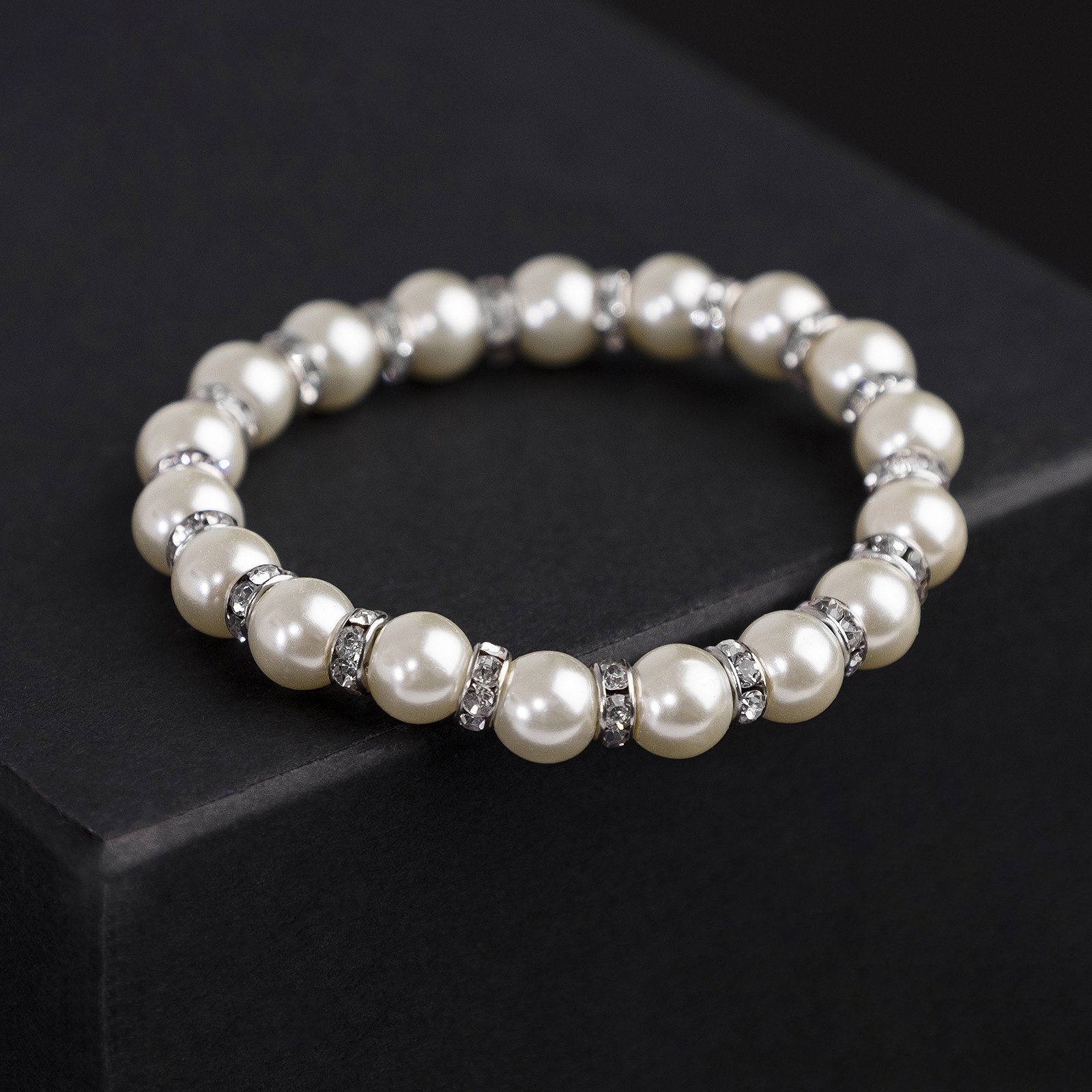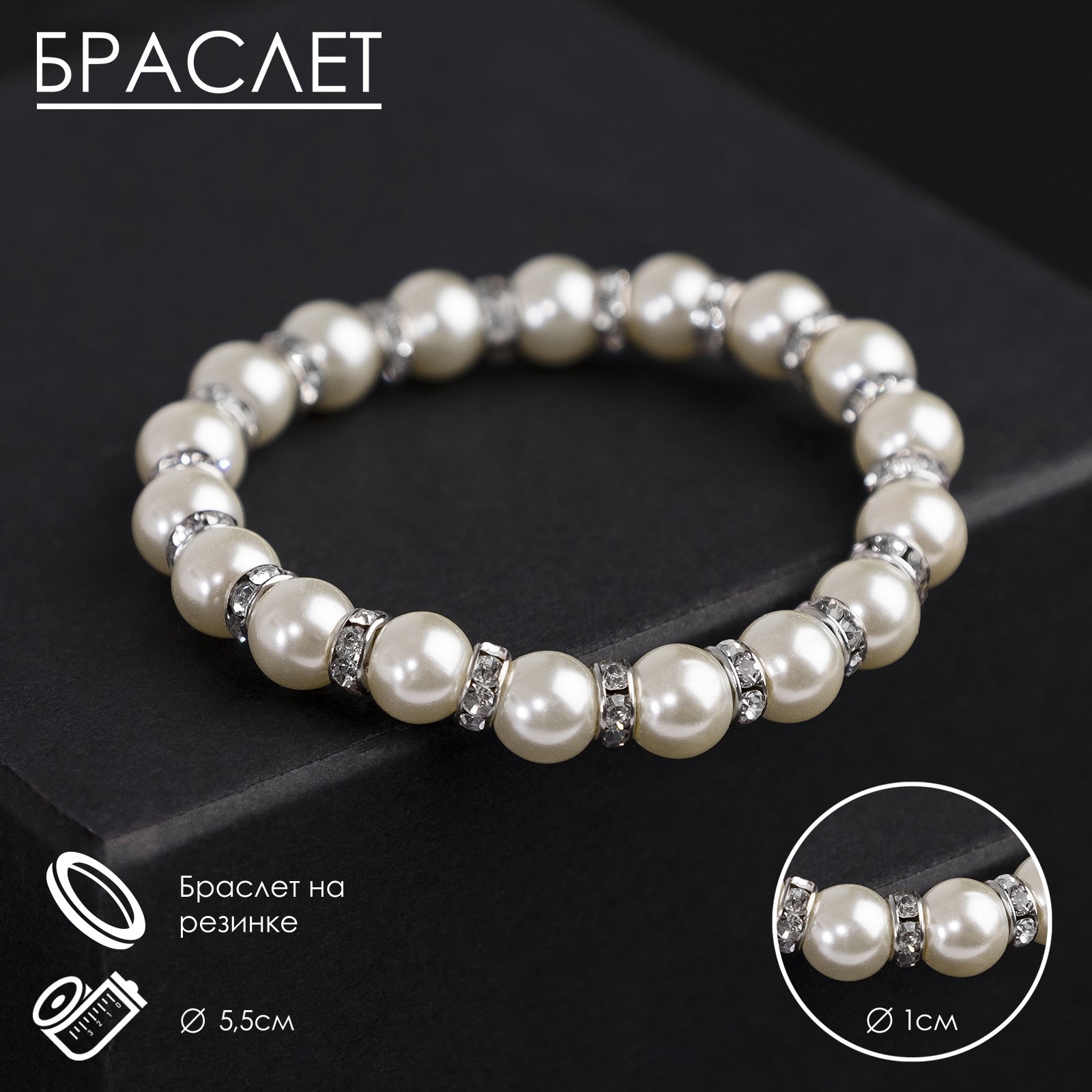 Браслет жемчуг «невеста» со стразами, шар №10, цвет белый, D=5,5 см