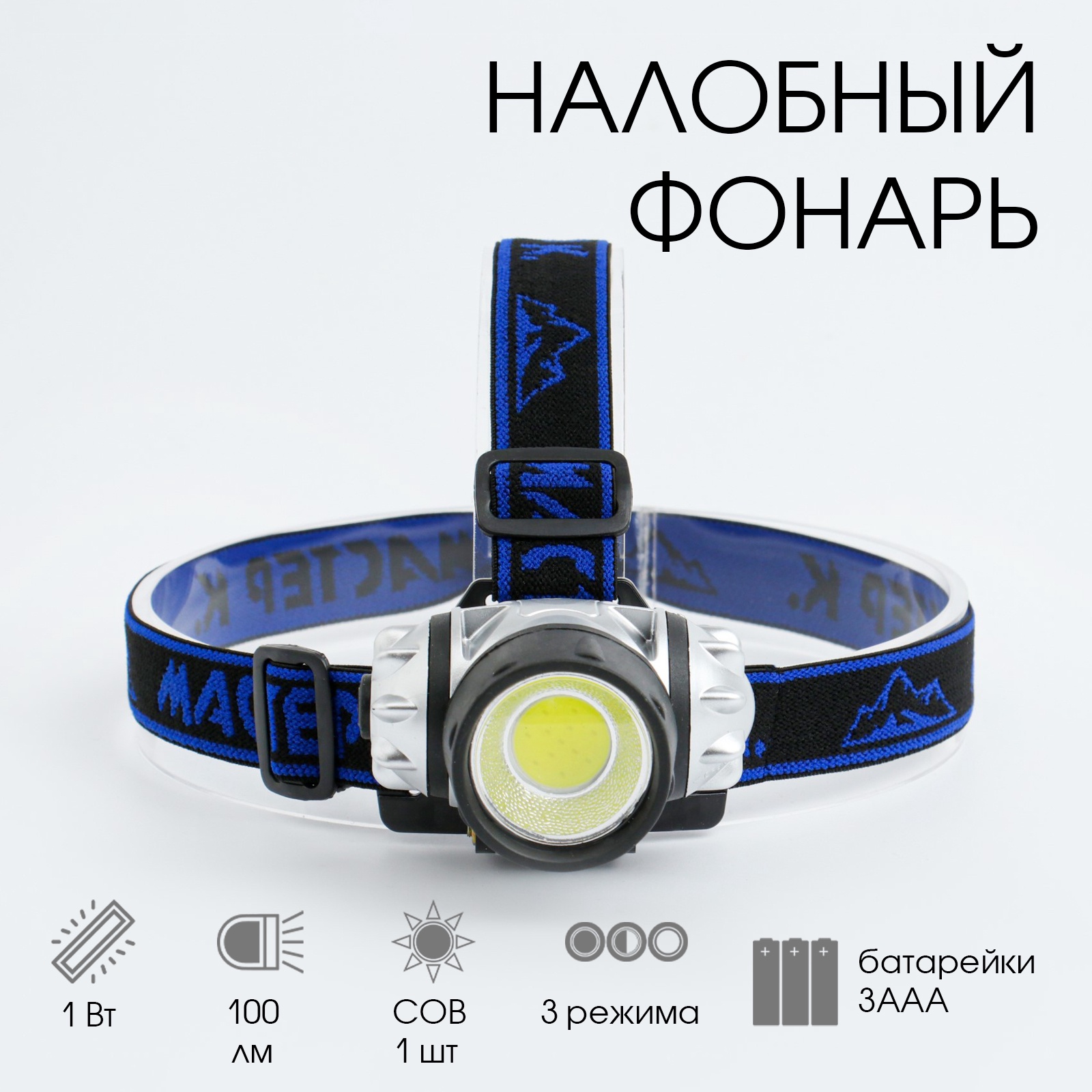 Фонарь налобный "мастер к.", 3 ааа, 5 х 7 см