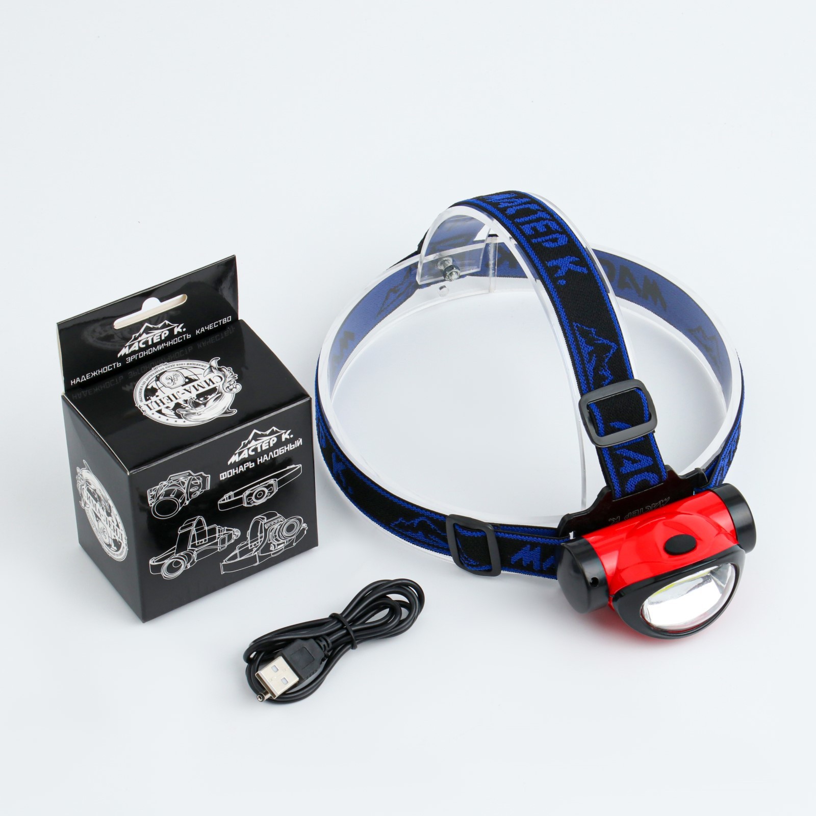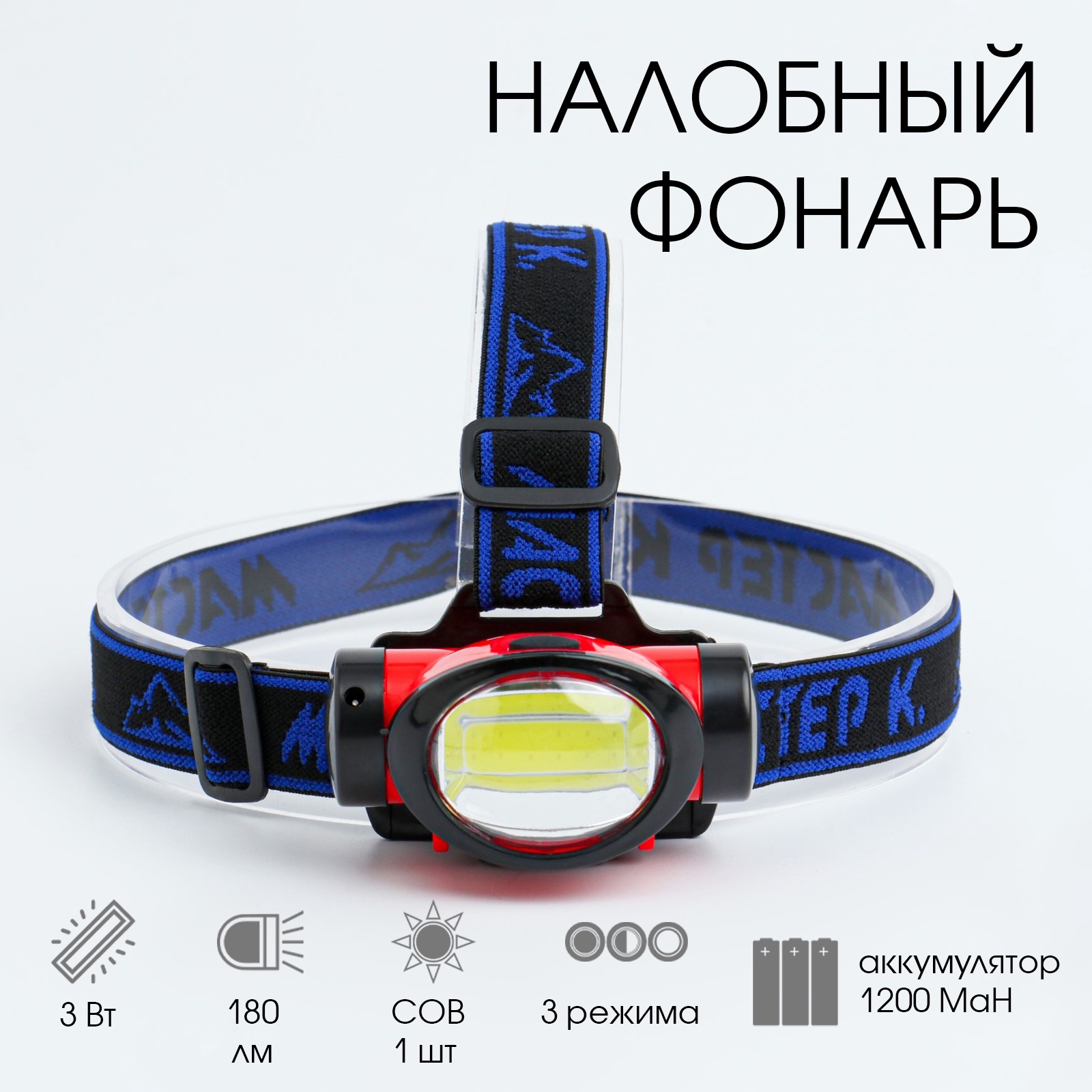 Фонарь налобный аккумуляторный, серия: "мастер к", 3 вт, 1200 мач, 1 Led, 3 режима