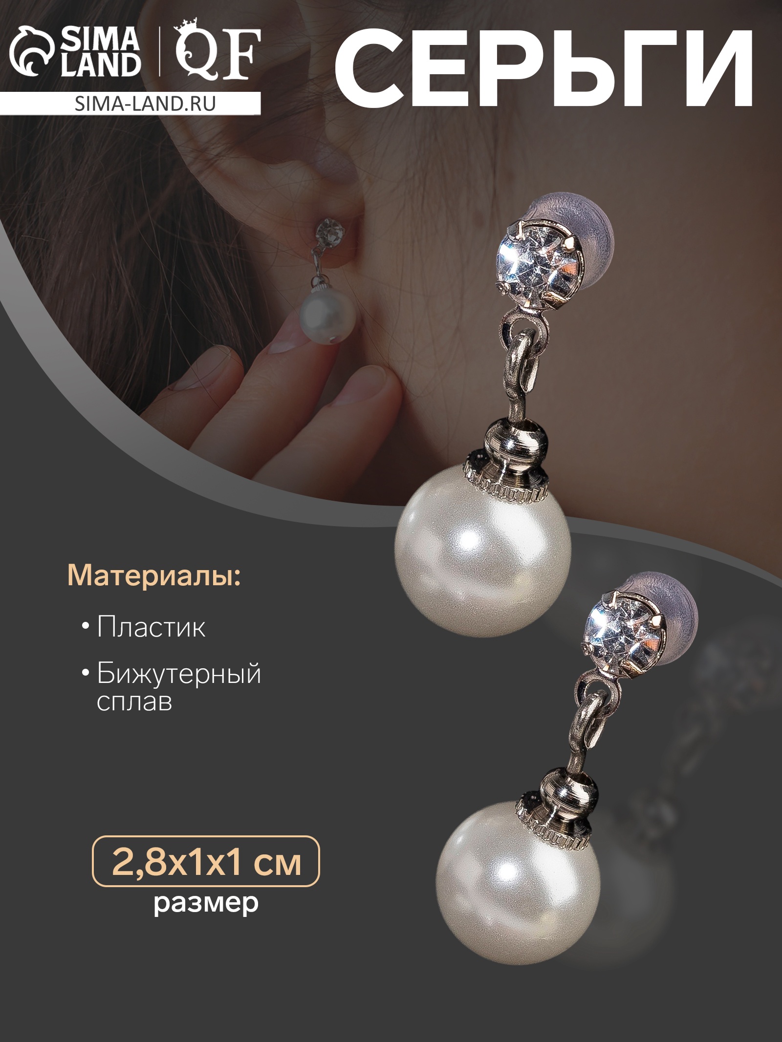 Серьги с жемчугом «невеста» бусины d=1, со стразами, белые. Изящные серьги с искусственным жемчугом и сверкающими стразами создают неповторимый образ, идеально подходящий для особенных событий и повседневной элегантности. Длина 2,8 см и серебристая фурнитура гармонично сочетаются с белоснежными бусинами диаметром 1 см, придавая украшению лёгкость и утонченность. Удобная застёжка пусет обеспечивает надёжную фиксацию и комфорт при ношении, что особенно важно для активного ритма жизни. Эти серьги станут прекрасным дополнением к свадебному образу, выпускному наряду или праздничному ансамблю, подчеркивая женственность и изящество. Высокое качество материалов: металл с серебристым покрытием и искусственный жемчуг гарантируют долговечность и сохранение блеска.Изысканный дизайн: сочетание жемчуга и страз создаёт эффект нежного сияния, привлекающего взгляды.Универсальность: подходят для разных возрастов и событий — от 8 Марта до свадеб и новогодних праздников.Комфорт и надёжность: застёжка пусет обеспечивает удобство и безопасность при носке.Идеальный подарок: отличный выбор для мамы, сестры, дочери или подруги, подчёркивающий заботу и внимание.Эти серьги — воплощение классической красоты и современного стиля, которые помогут вам выразить свою индивидуальность и добавить нежности в любой образ. Набор:Нет|Цвет:Белый|Для кого:Для женщины|Длина, см:2.8|Тематика праздника:Свадьба|Тематика праздника:8 Марта|Тематика праздника:Универсальная тематика|Тематика праздника:Выпускной в школе|Тематика праздника:Новый год|Адресат:Дочке|Адресат:Подруге|Адресат:Маме|Адресат:Сестре|Адресат:Внучке|Материал:Искусственный жемчуг|Цвет фурнитуры:Серебряный|Вставка/Подвеска:Стразы|Вставка/Подвеска:Жемчуг|Материал основания:Металл|Вид застёжки:Застёжка пусет (гвоздик)|Составляющие набора:Серьги|Материал основы:Металл|Возраст:Для взрослых|Тематика:Жемчужная|Страна:Китай  развернуть описание ▼