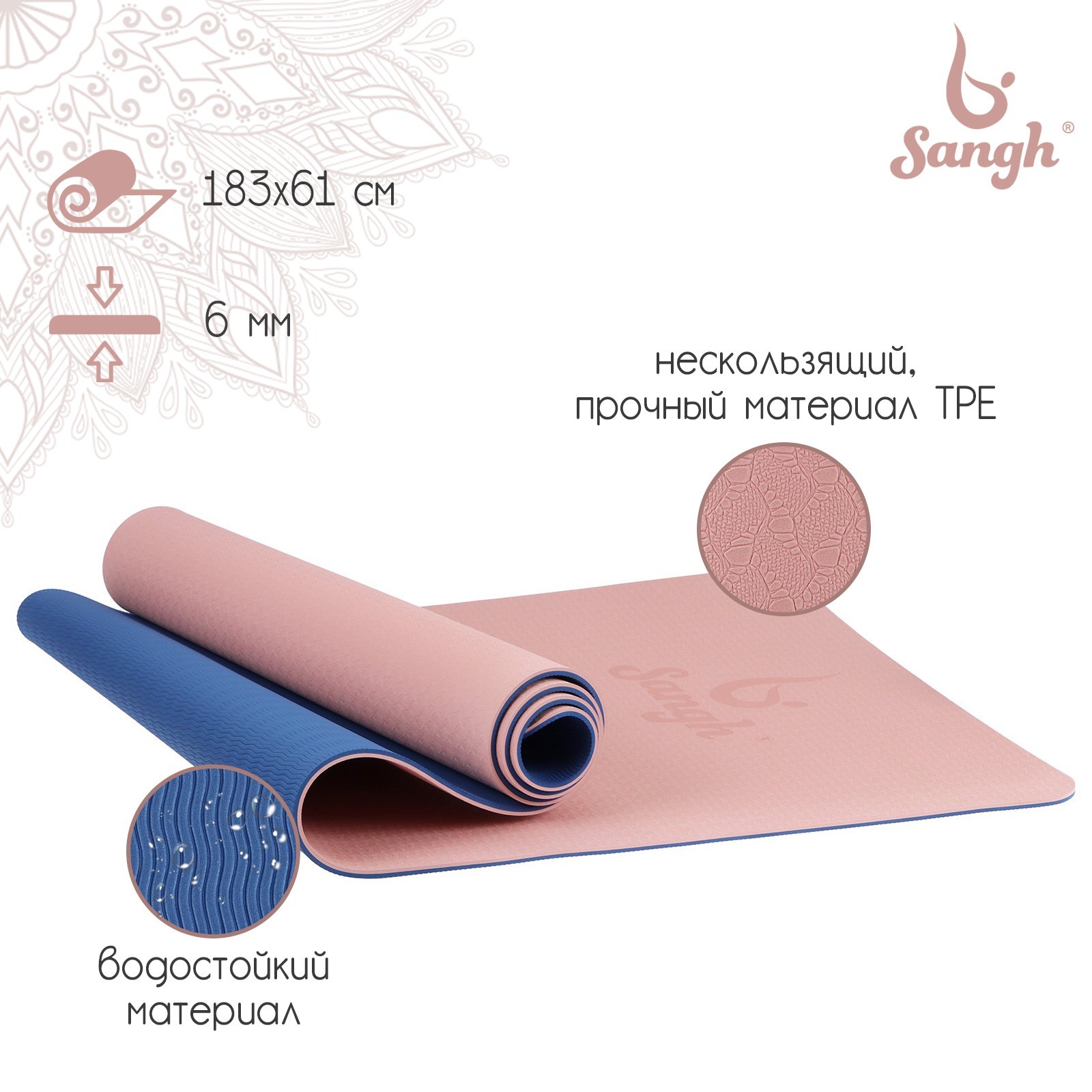 Коврик для йоги Sangh, 183х61х0,6 см, цвет розовый
