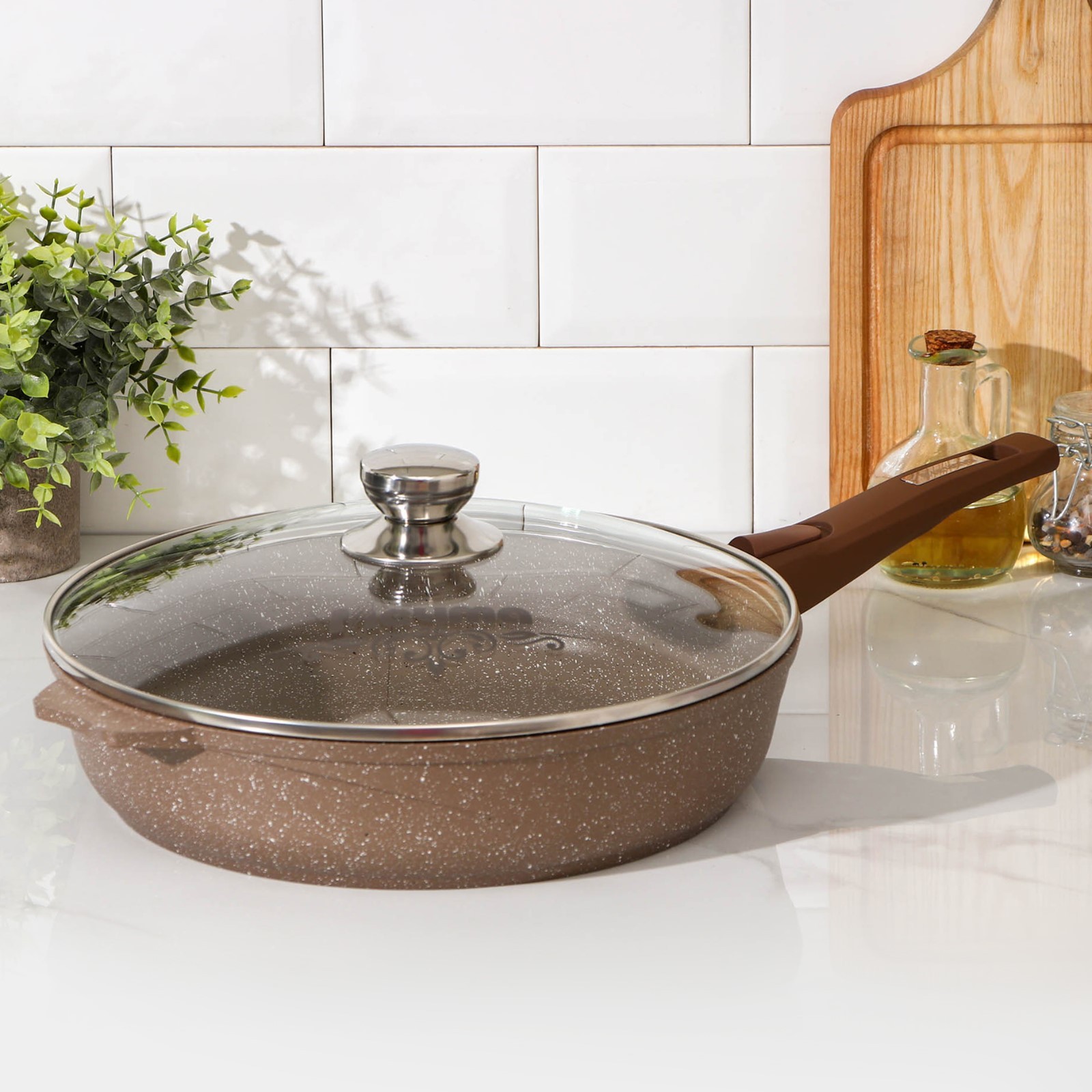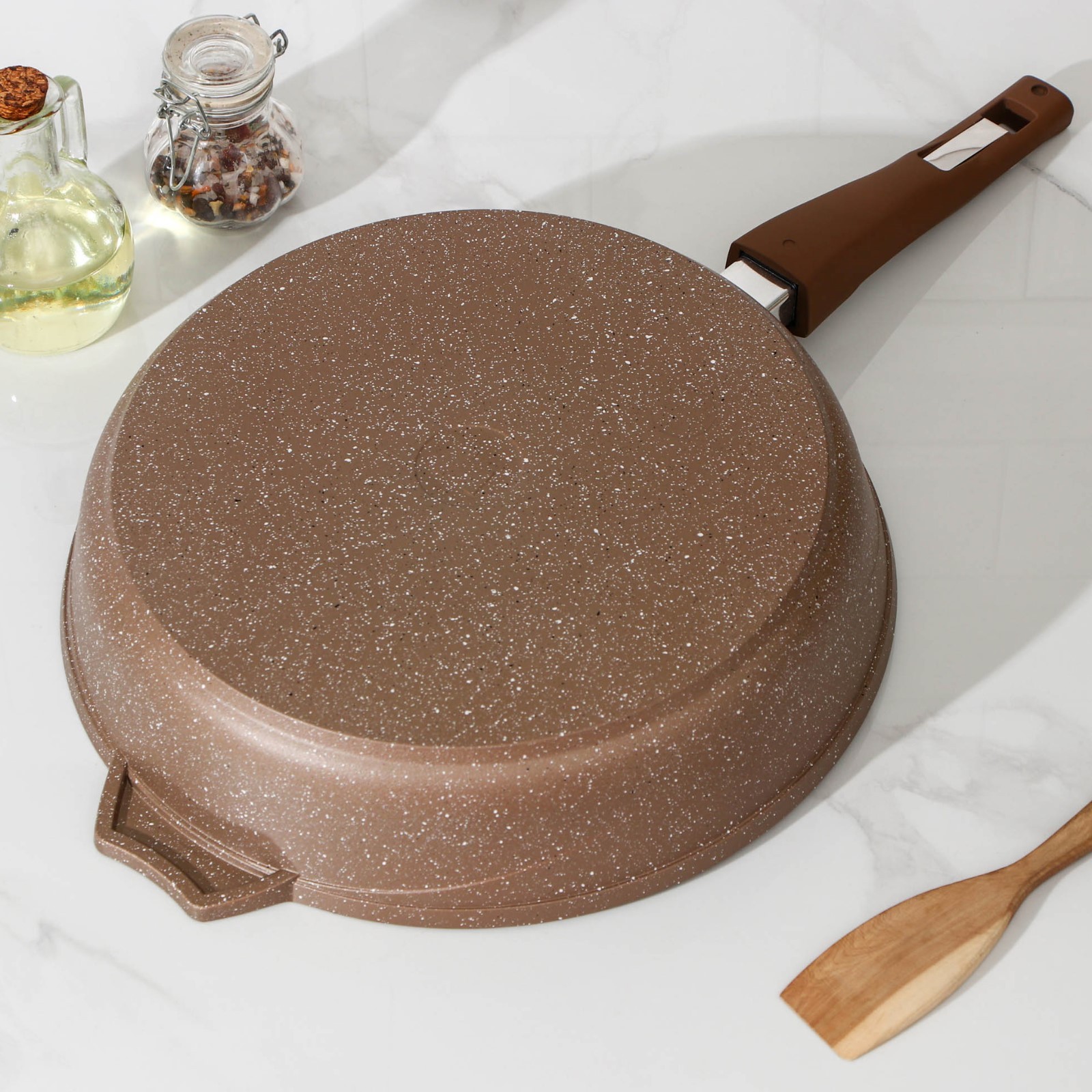 Сковорода «гранит», D=30 см, съёмная ручка, стеклянная крышка, антипригарное покрытие, цвет коричневый