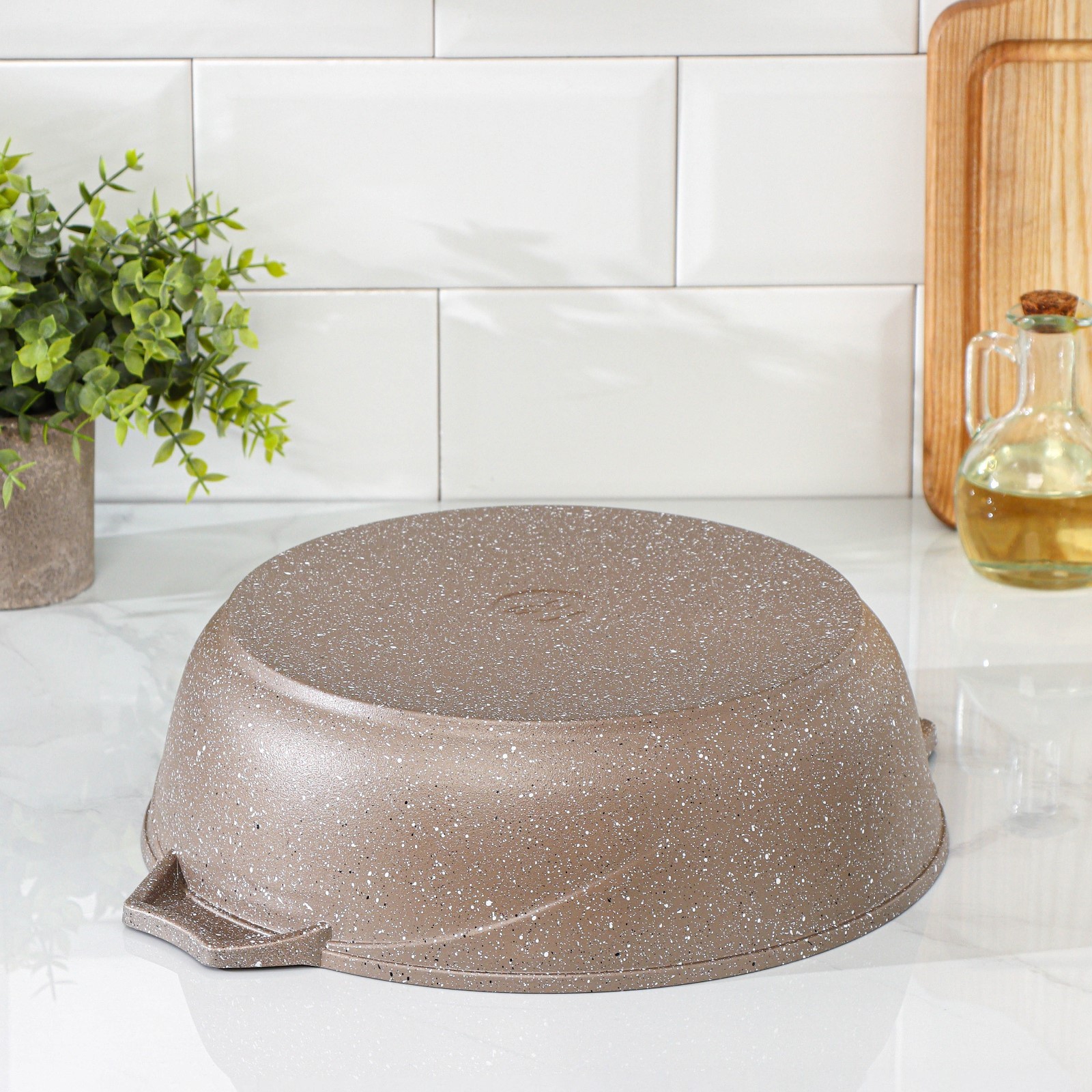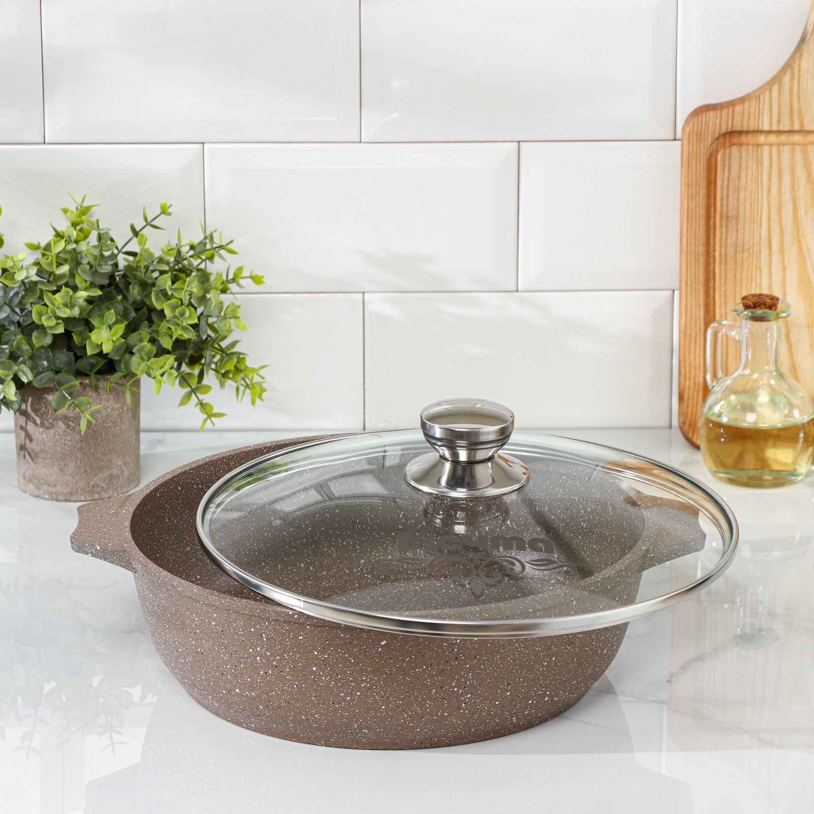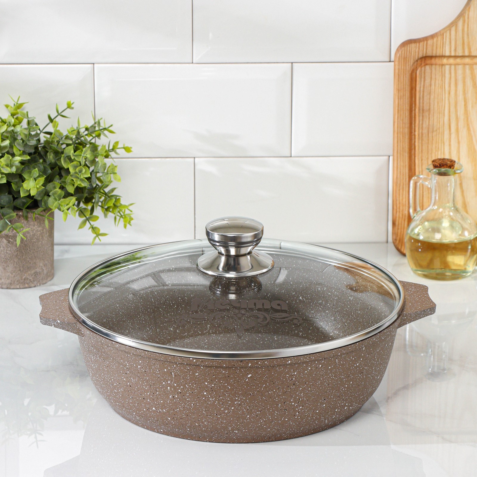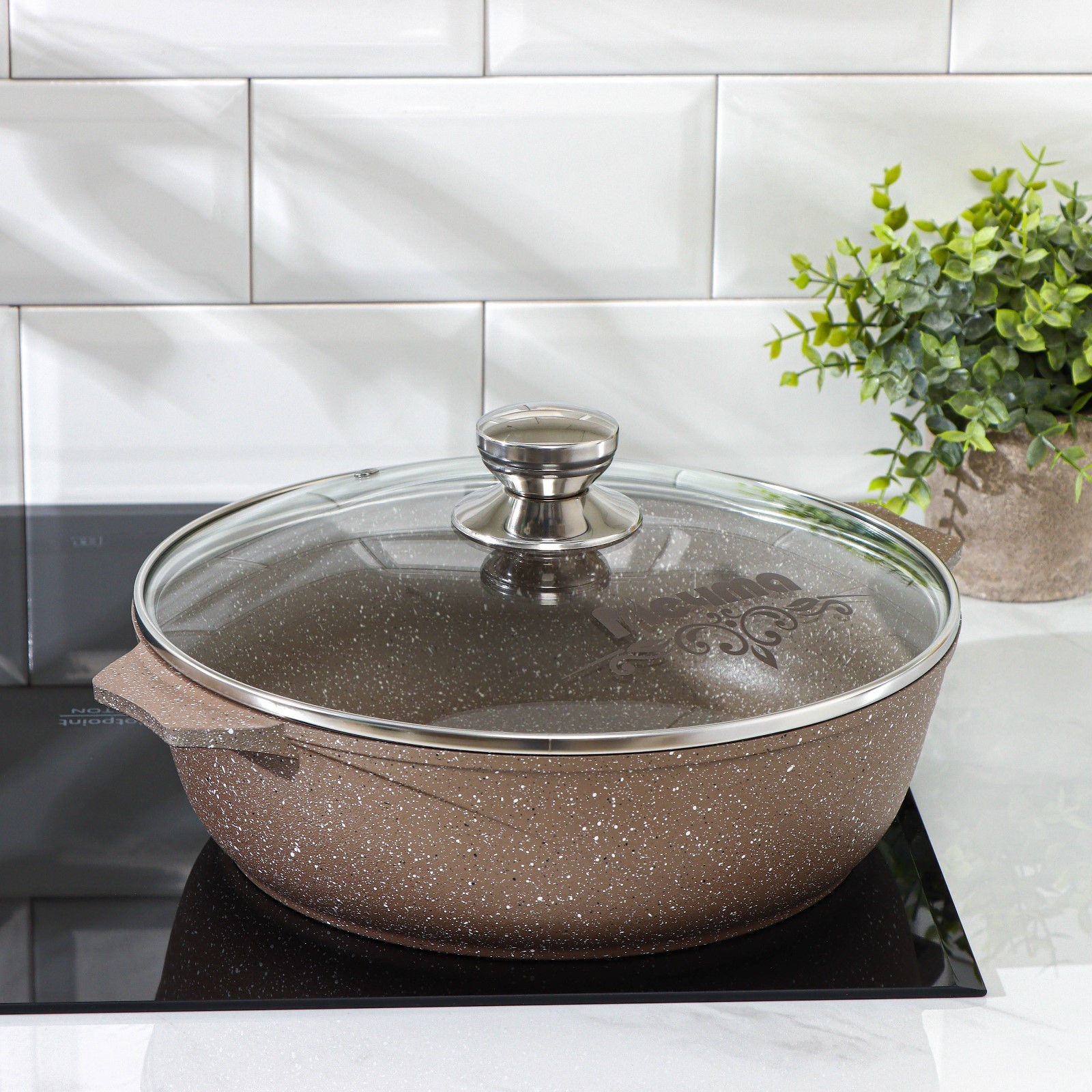 Жаровня «гранит Brown», 4 л, H=8,5 см, стеклянная крышка, антипригарное покрытие, цвет коричневый