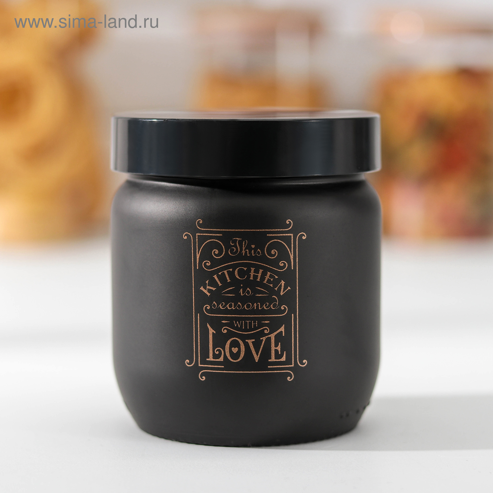 Банка стеклянная для сыпучих продуктов «любовь на кухне», 425 мл, цвет чёрный