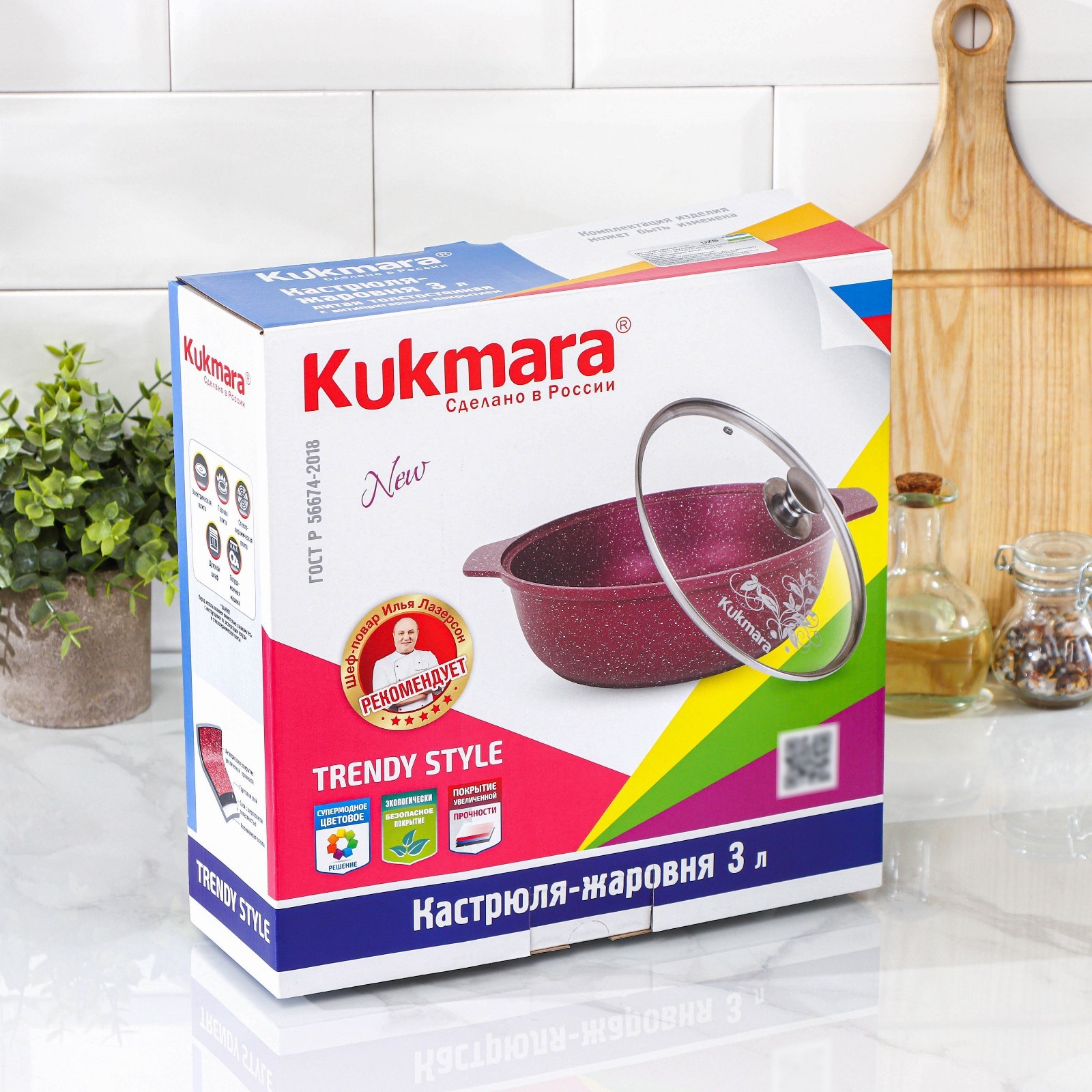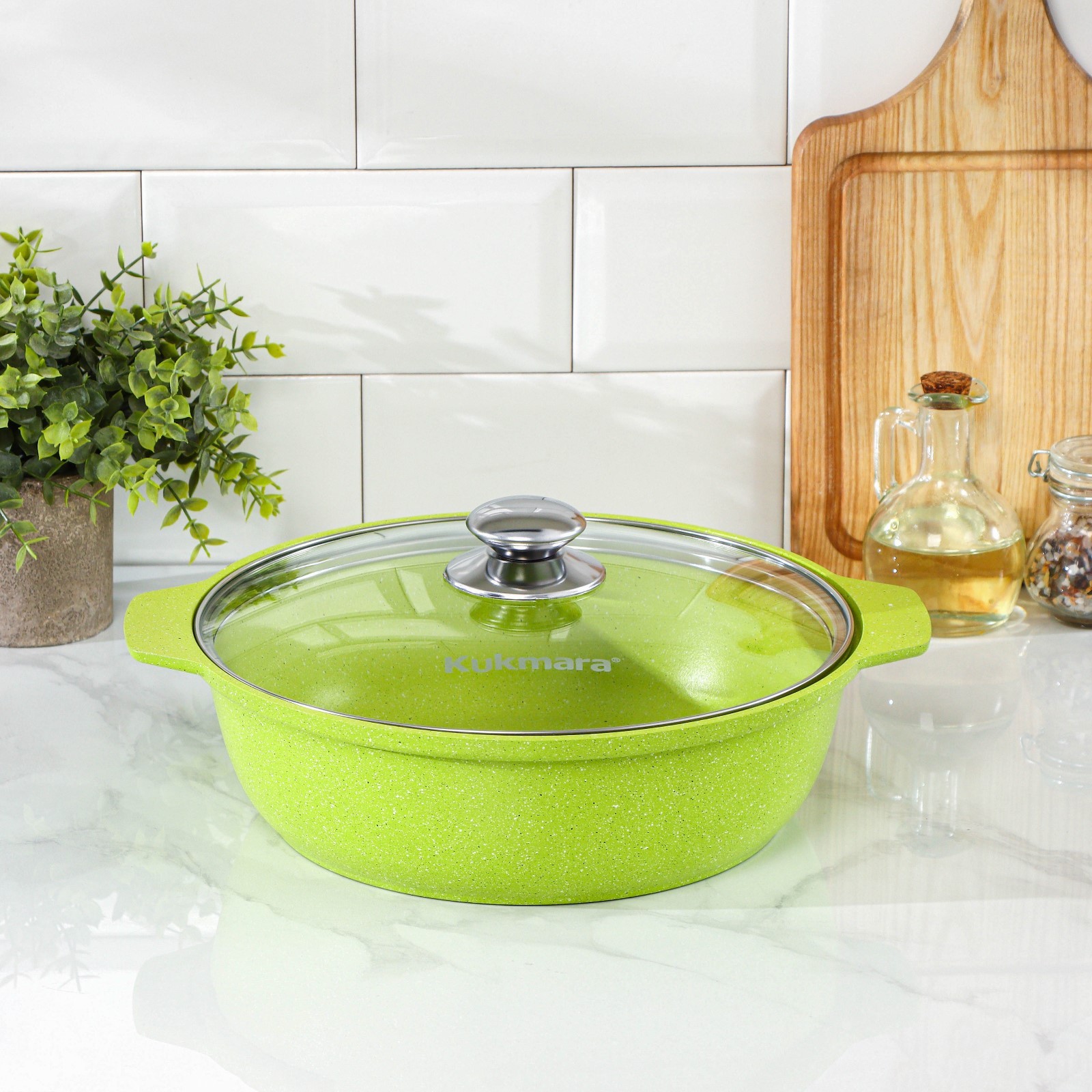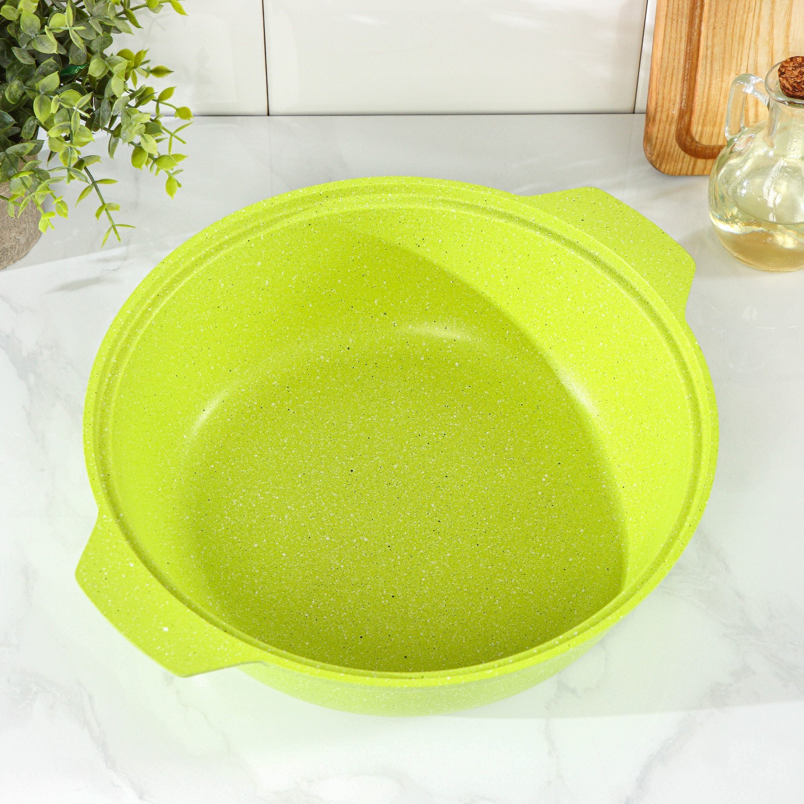 Кастрюля-жаровня Trendy Style, 3 л, D=28 см, стеклянная крышка, антипригарное покрытие, цвет зелёный