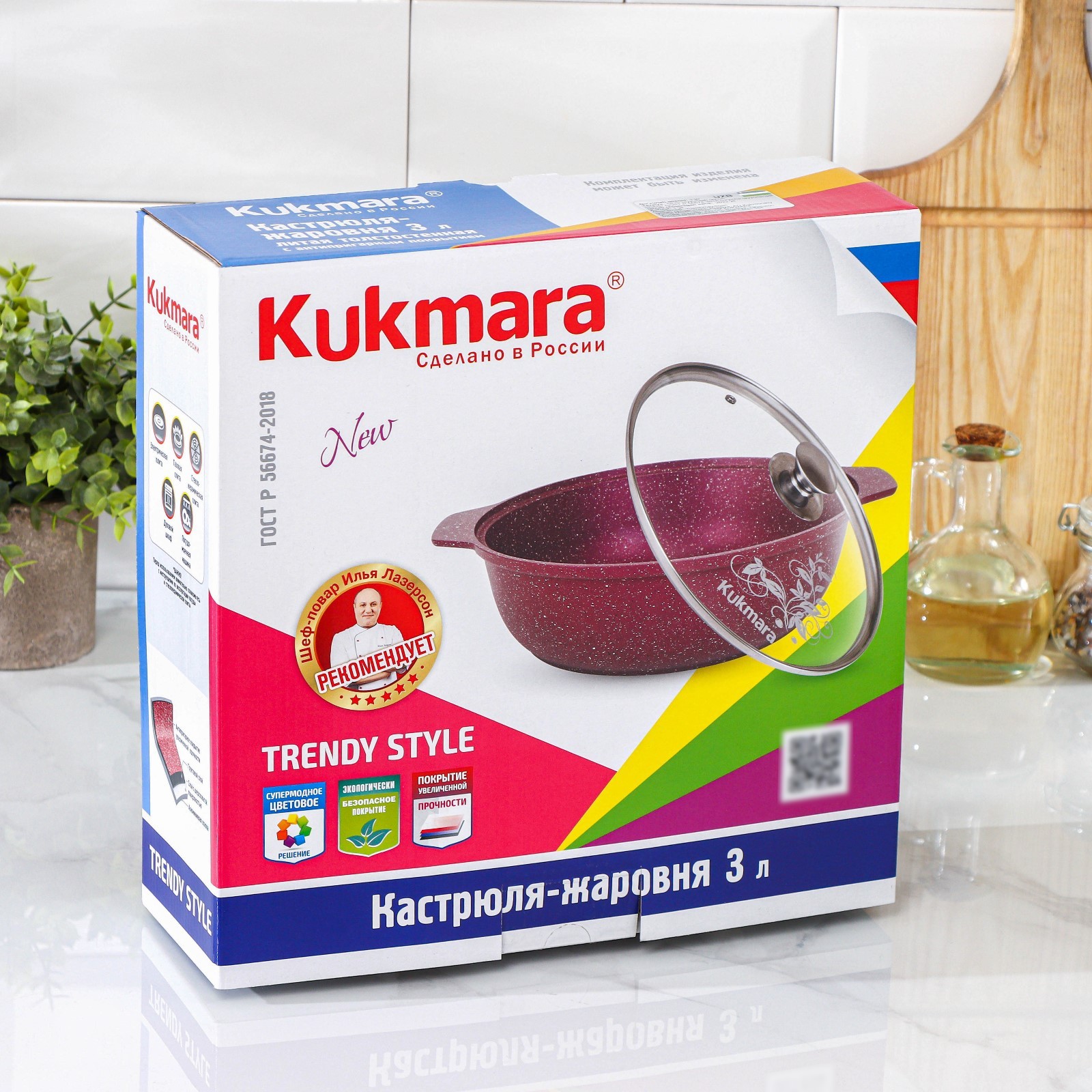 Кастрюля-жаровня Trendy Style, 3 л, D=26 см, H=8,5 см, стеклянная крышка, антипригарное покрытие, цвет фиолетовый
