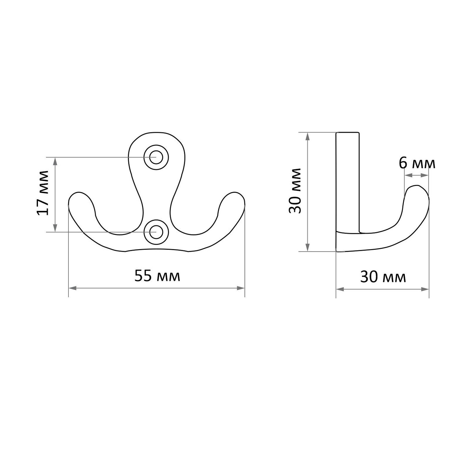 Крючок мебельный тундра Tkd003, двухрожковый, бронза