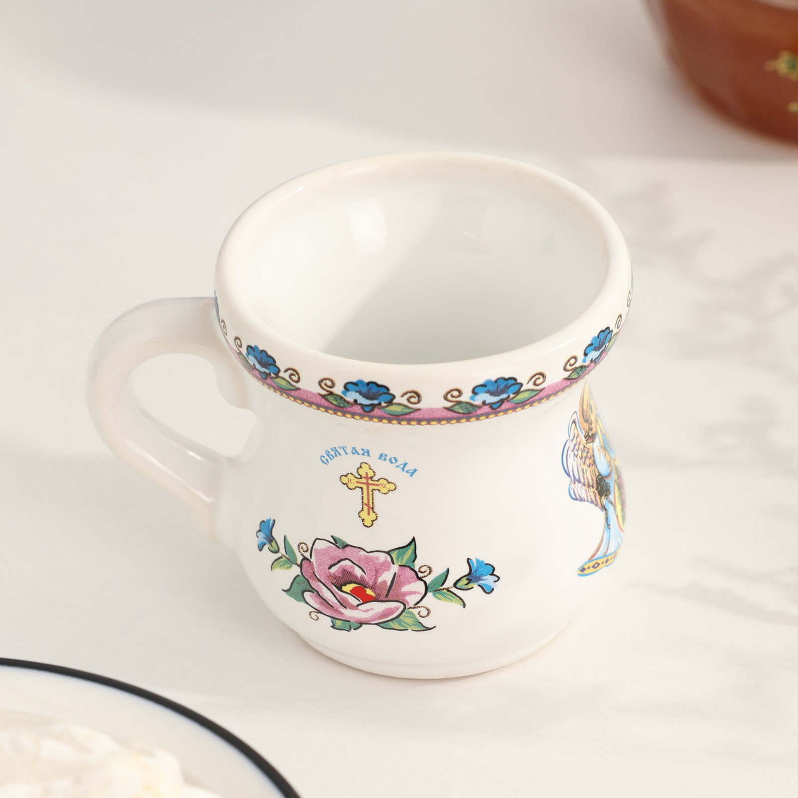 Кружка для святой воды "молитва для женщин", 60 мл. Цвет: Разноцветный В наборе, шт.: 1 Объём, мл: 60 Тематика: Ангел Материал: Керамика Дополнительный аксессуар: Без аксессуаров Температурное ограничение: Нет Можно мыть в посудомоечной машине: Нет Можно использовать в СВЧ-печи: Да Текстура: Гладкая Особенности: С золотой отводкой Матовая поверхность: Нет  развернуть описание ▼