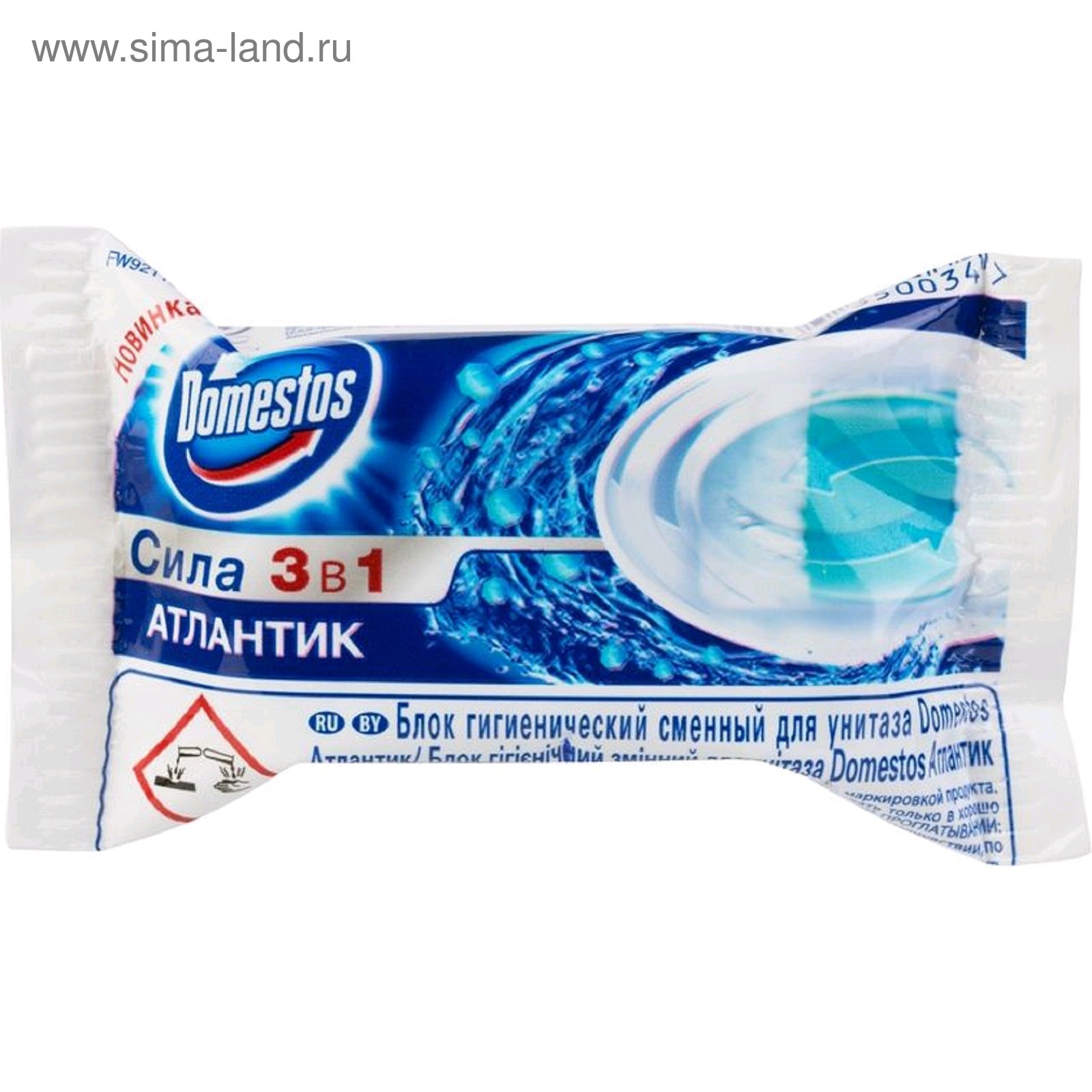 Блок гигиенический для унитаза domestos "атлантик", сила 3 в 1, 40 г. Блок гигиенический для унитаза 3 в 1 аромат атлантик– три действия в одном эффективном средстве. Благодаря формуле с микрочастицами оно содержит целых три преимущества, обеспечивающих защиту от загрязнений, а значит и от микробов: борется с налетом, поддерживает чистоту, добавляет блеск, оставляя свежесть надолго. Способ применения: закрепите блок на ободке унитаза так, чтобы он полностью омывался при смыве, отрегулировав длину держателя. После использования поместите новый сменный блок. После замены тщательно вымыть руки. Меры предосторожности: используйте перчатки и средства защиты лица и глаз. Использовать только в хорошо вентилируемом помещении. При проглатывании прополоскать рот. Обратиться за медицинской помощью при плохом самочувствии, по возможности показать маркировку продукта. При попадании в глаза осторожно промыть глаза водой в течении нескольких минут. Снять контактные линзы, если вы ими пользуетесь, и если это легко сделать. Продолжить промывание. Состав: 15-30% анаонные ПАВ, 5% неиногенные ПАВ, 5% отдушка, 5% фосфаты, 5% ароматические углевороды, 5% цитраль, 5% лимонен, 5% линалоол. parts count: 0 Аромат: Океанская свежесть Вид средства: Сменный блок  развернуть описание ▼