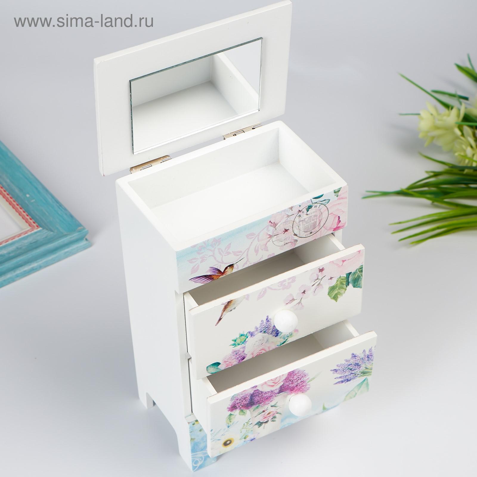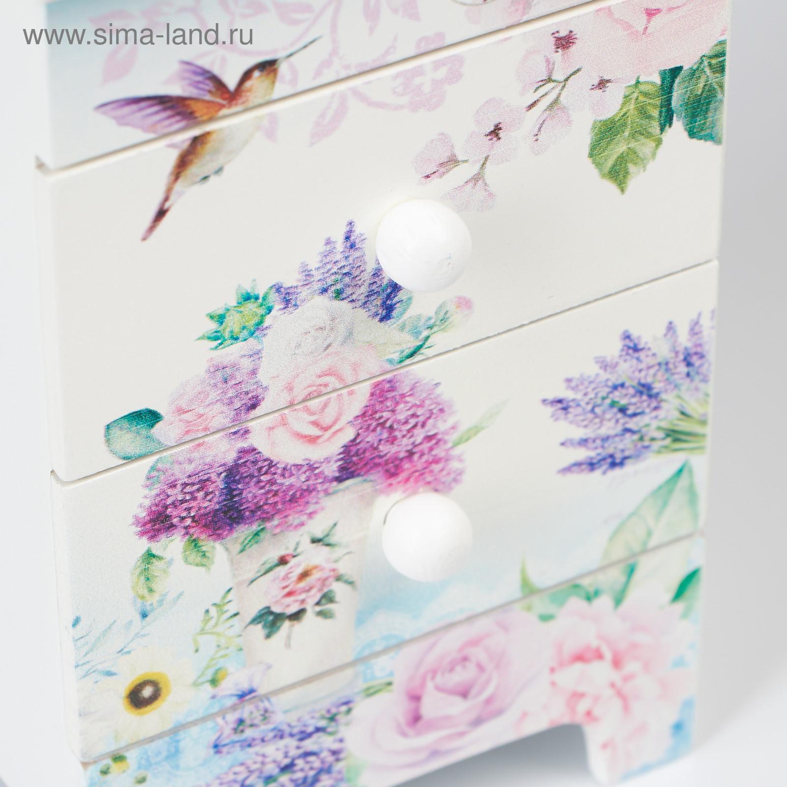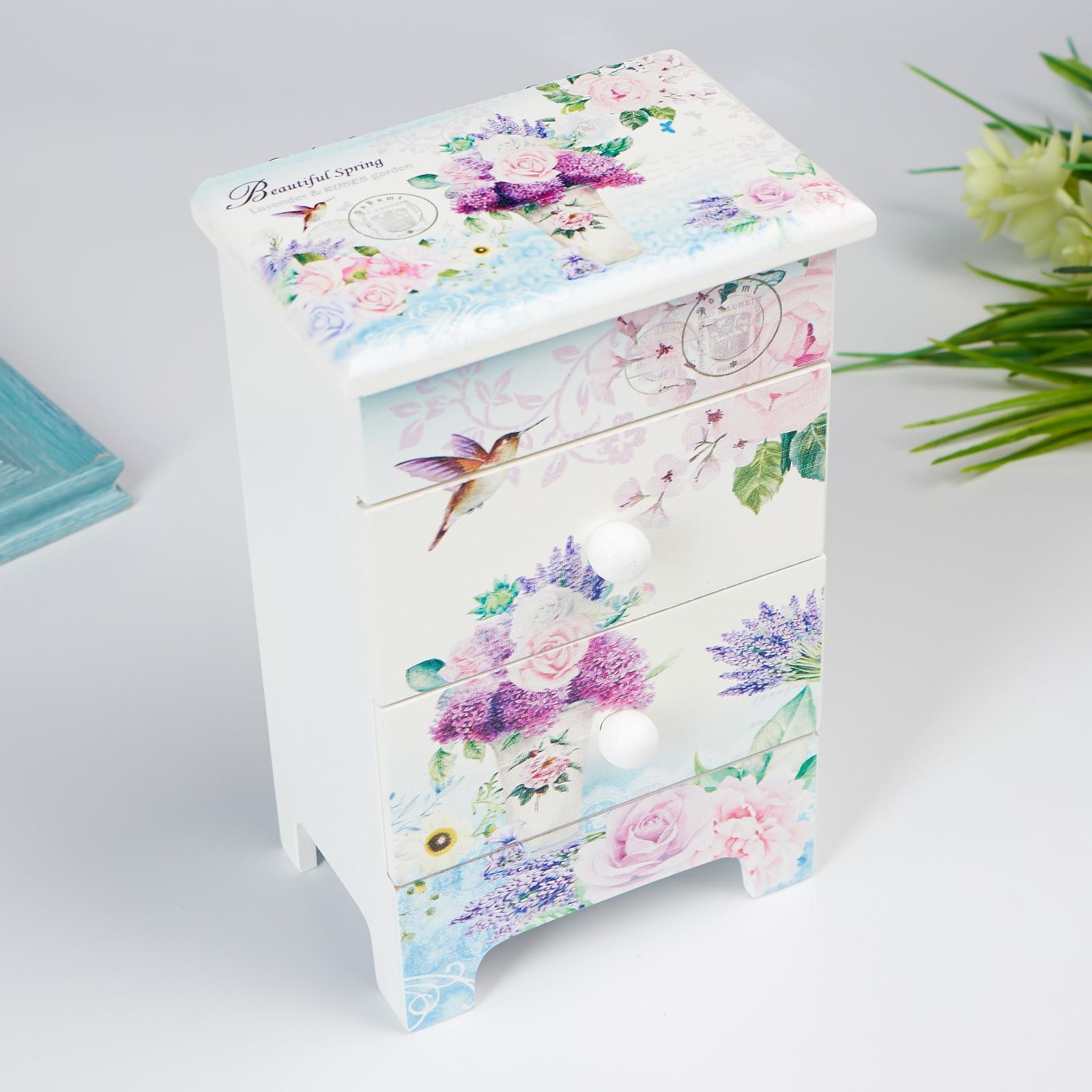 Шкатулка для украшений 2 ящика «комод. лаванда и розы», дерево, 18.5 7.5 11.8 см. Набор:Нет|Цвет:Разноцветный|Форма:Прямоугольная|Длина, см:11.8|Ширина, см:7.5|Высота, см:18.5|Тематика:Цветочно-растительная|Тематика праздника:8 Марта|Вид дерева:МДФ|Материал:Дерево|Покрытие:Краска|Особенности шкатулки:Выдвижные ящики|Страна:Китай  развернуть описание ▼