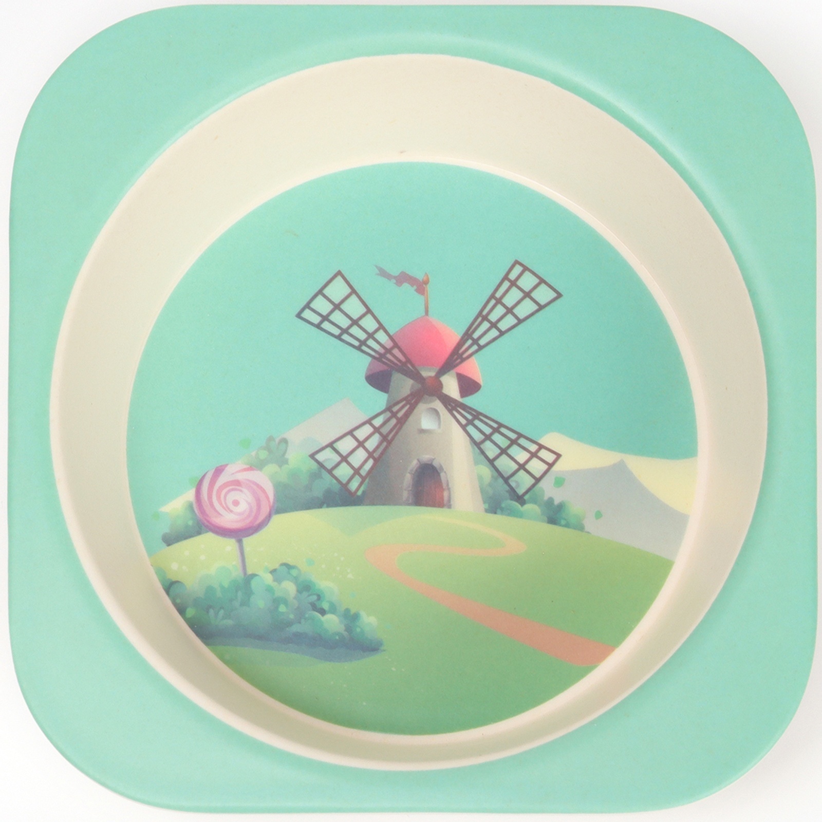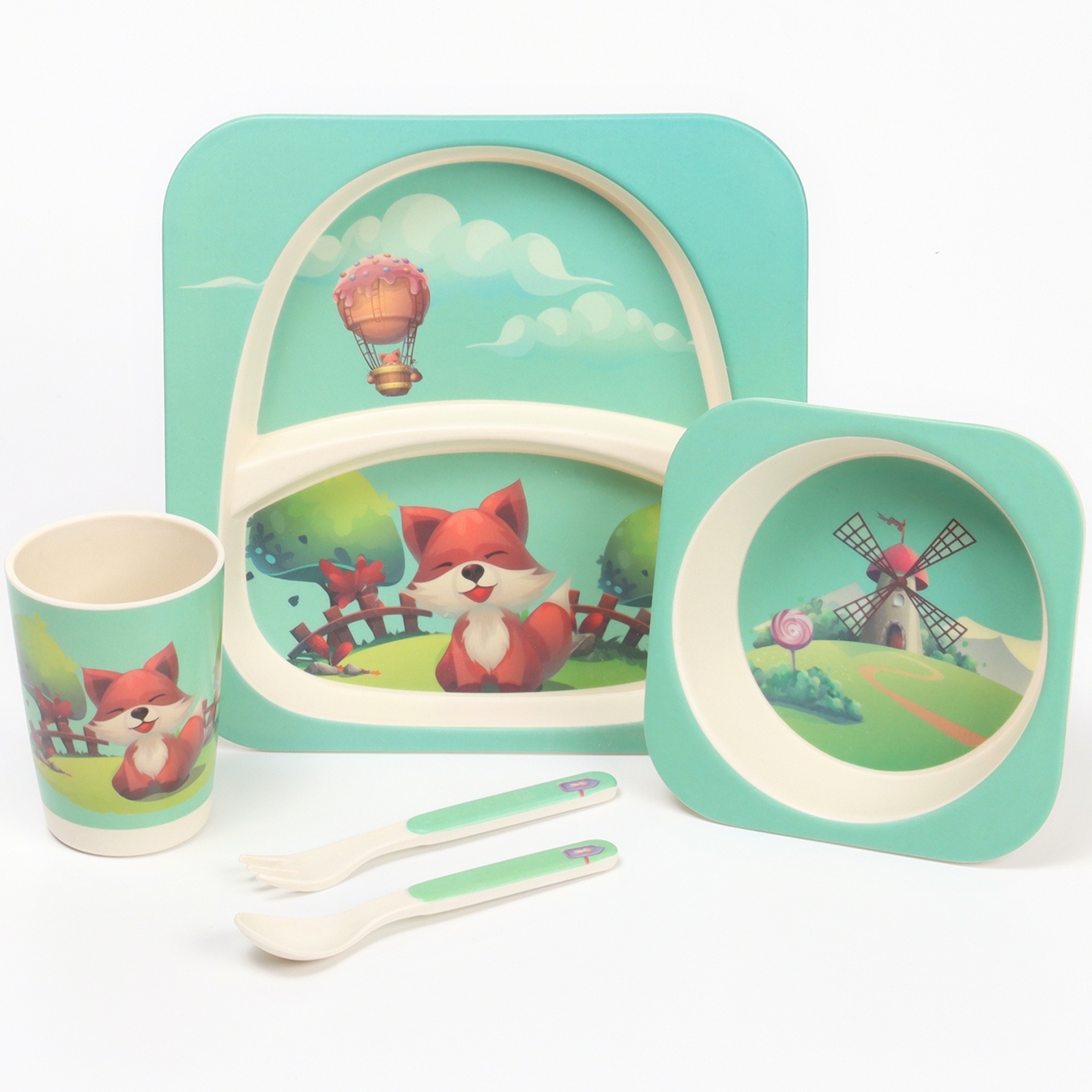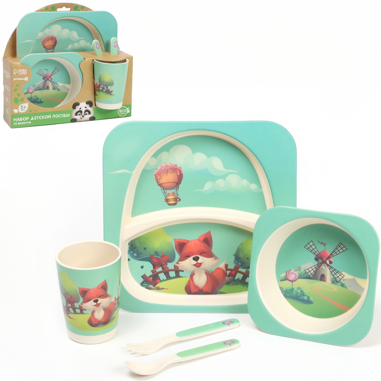 Набор бамбуковой посуды «мельница», 5 предметов: тарелка, миска, стакан, вилка, ложка
