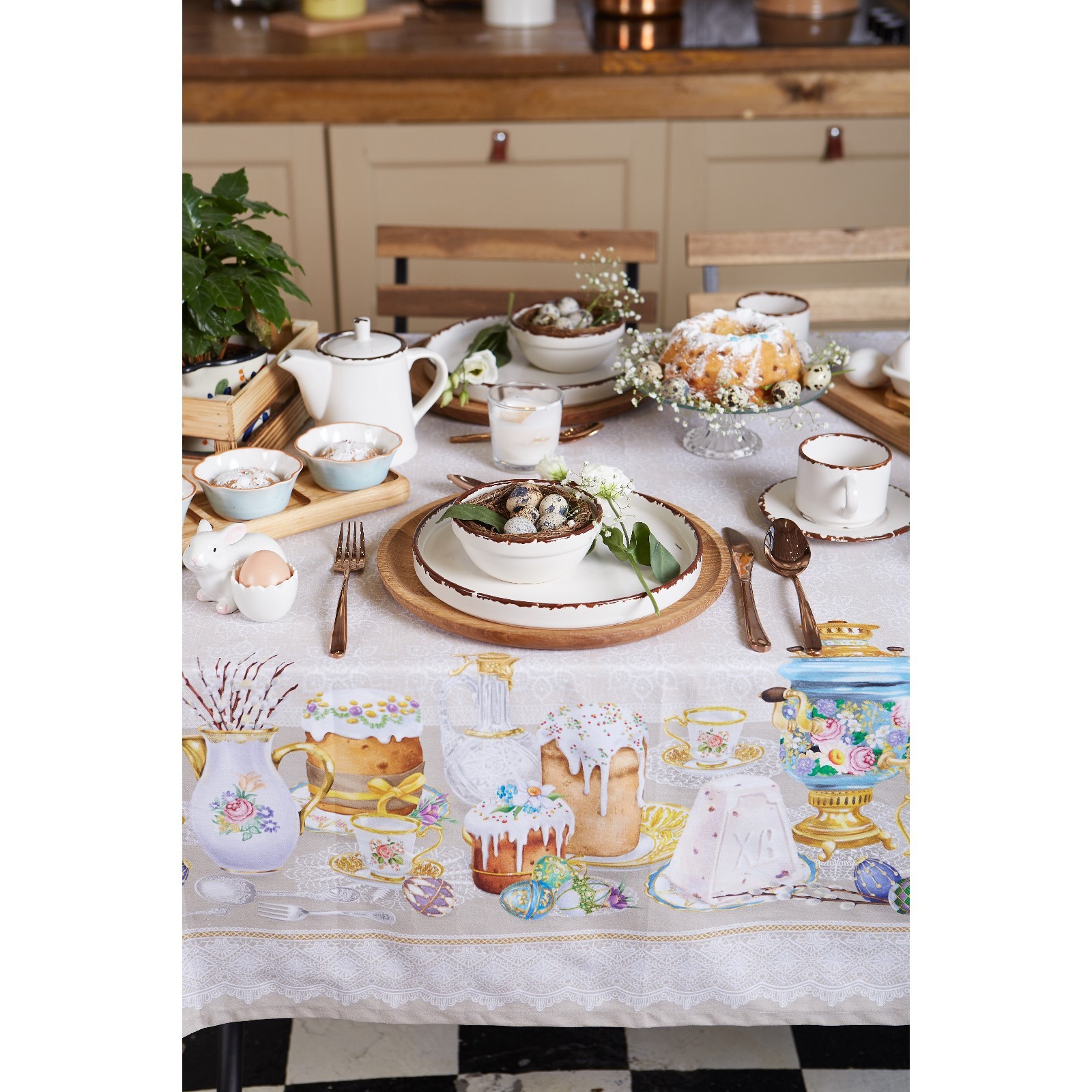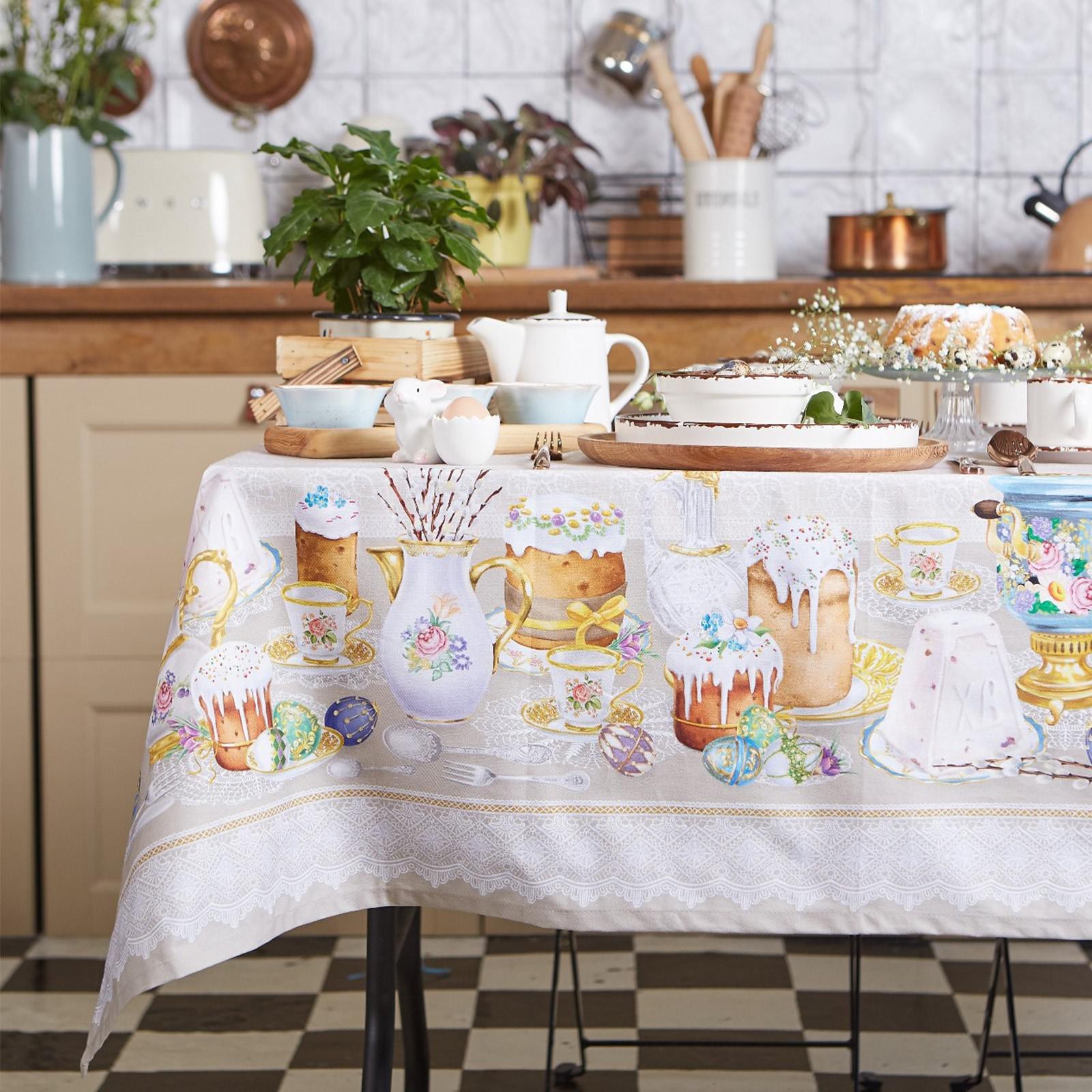 Скатерть "этель" пасхальные куличи 220х147 см, 100% хл, саржа 190 гр/м2