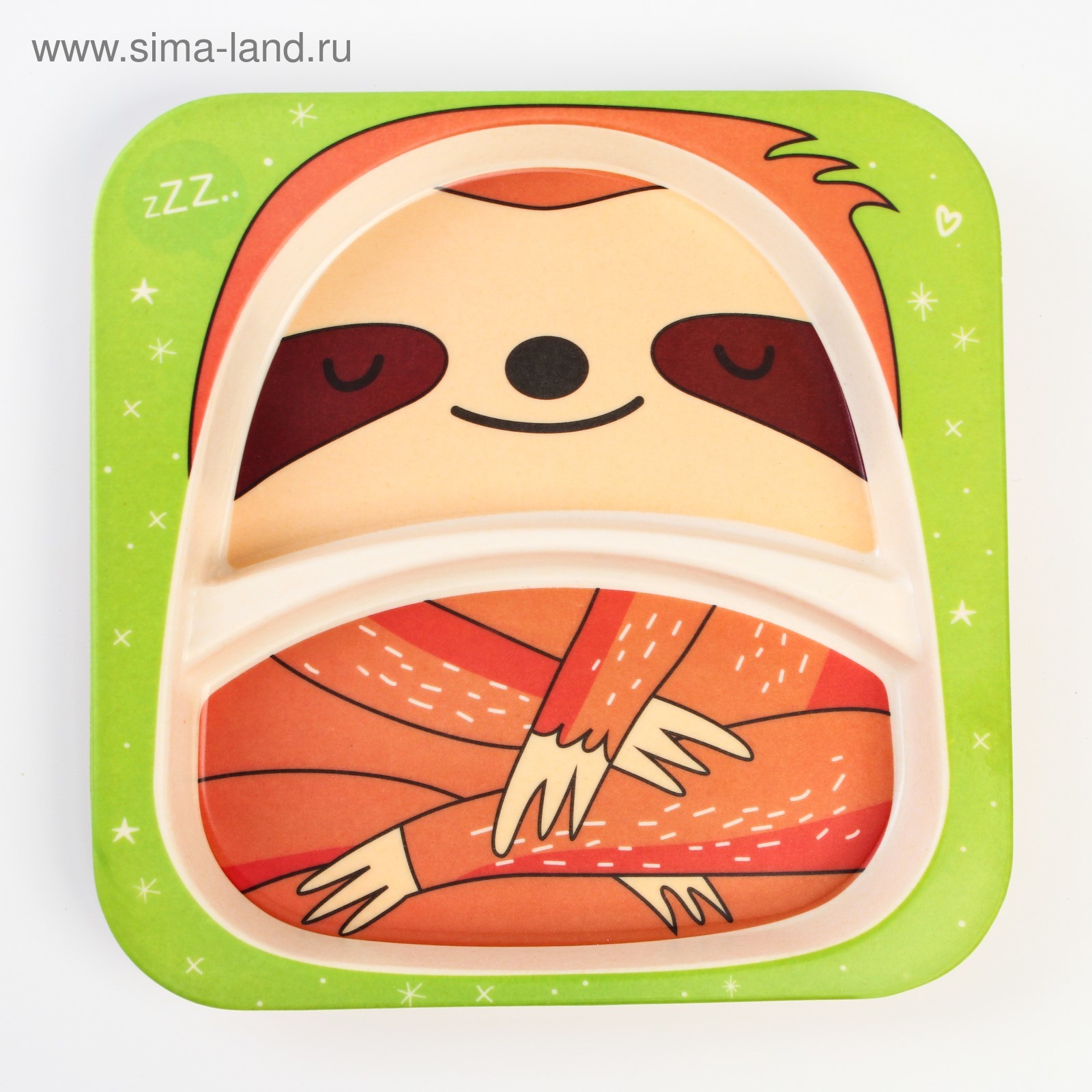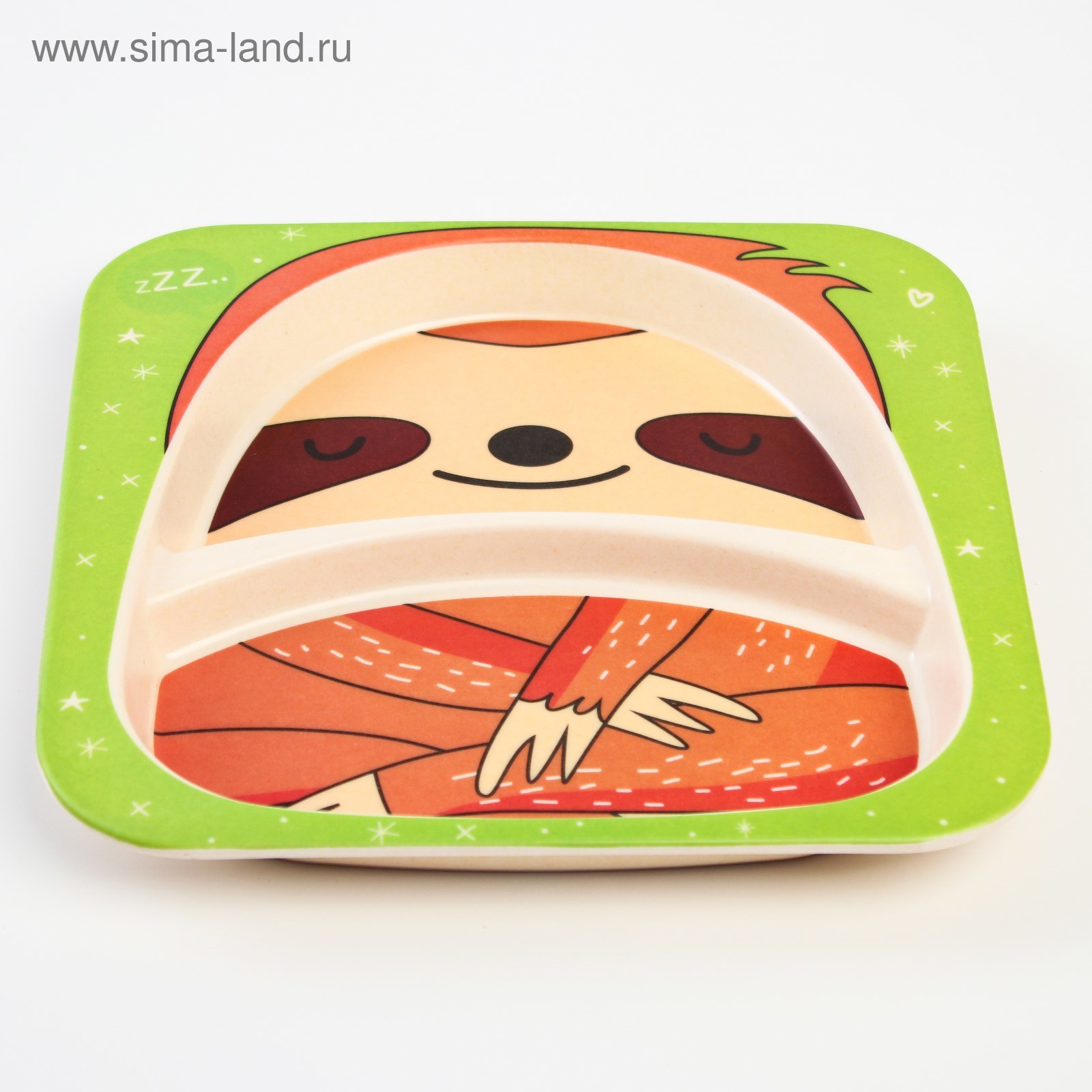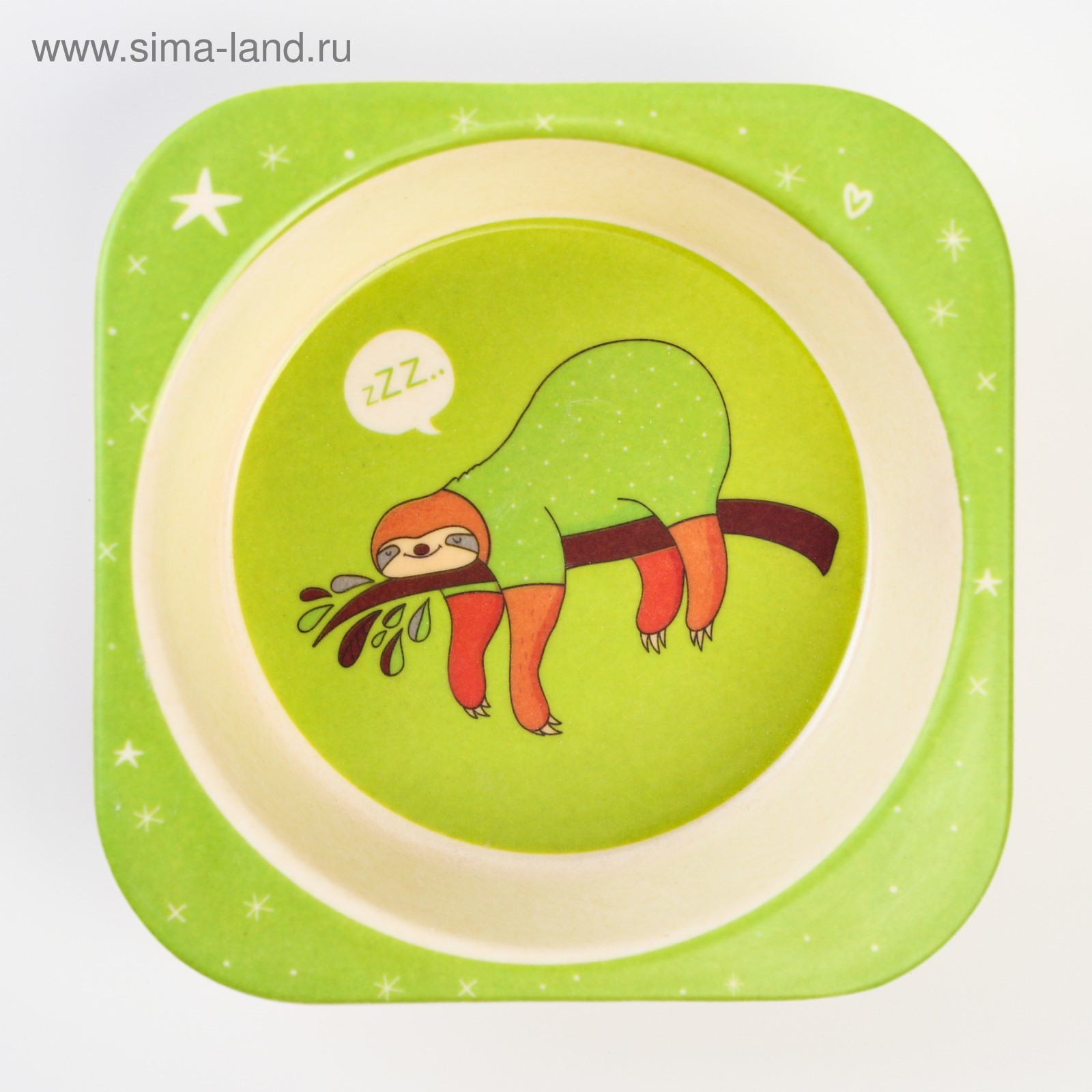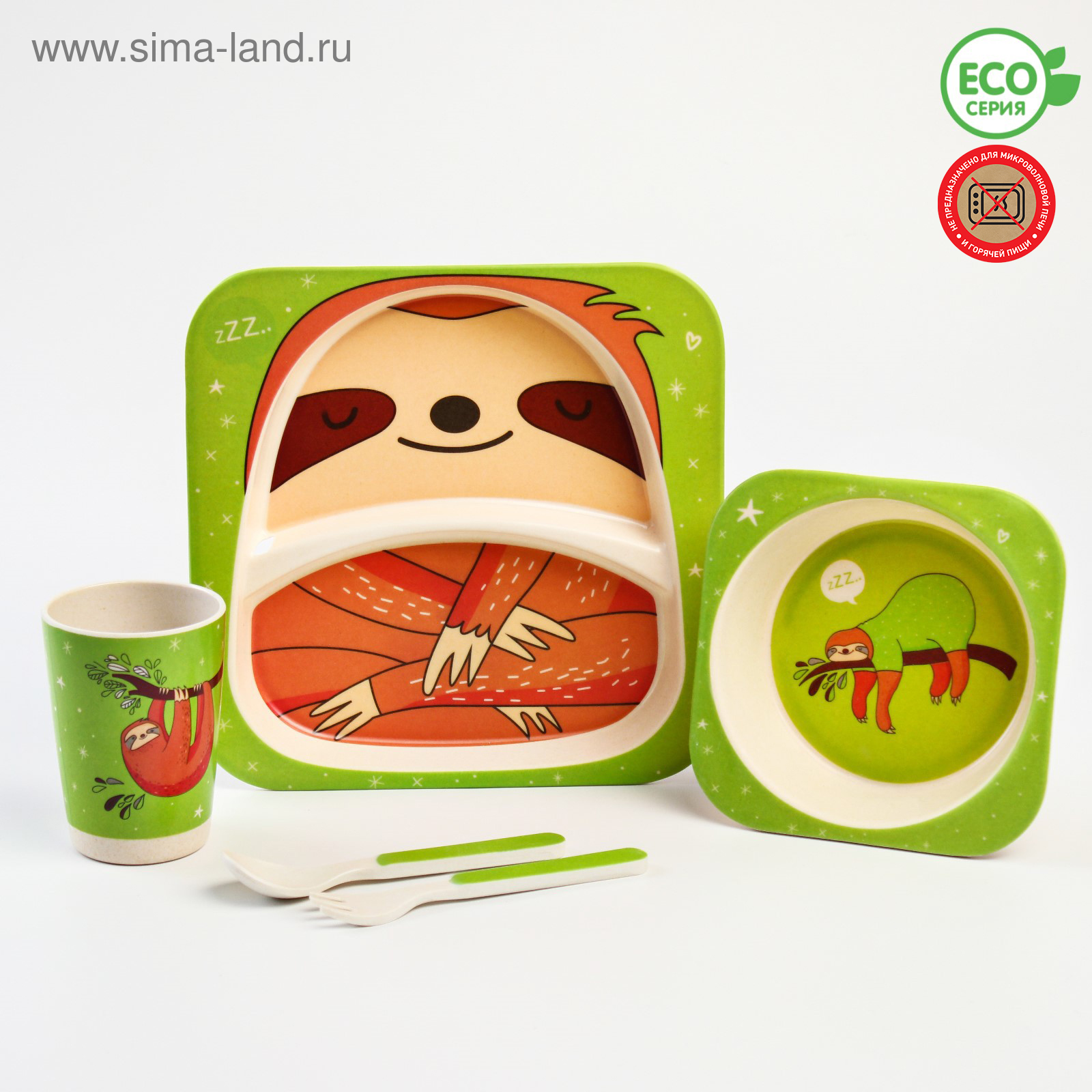 Набор бамбуковой посуды «ленивец», 5 предметов: тарелка, миска, стакан, вилка, ложка