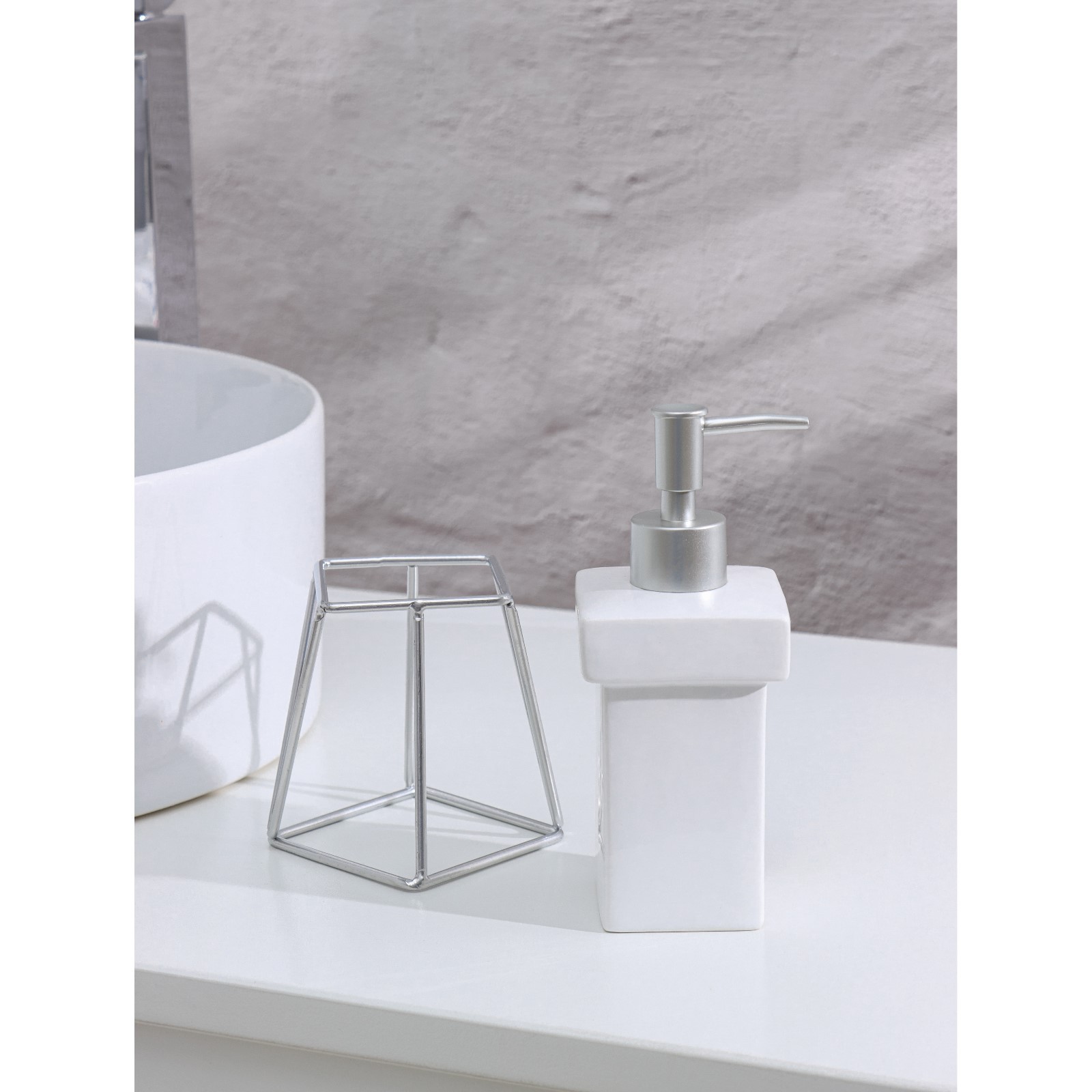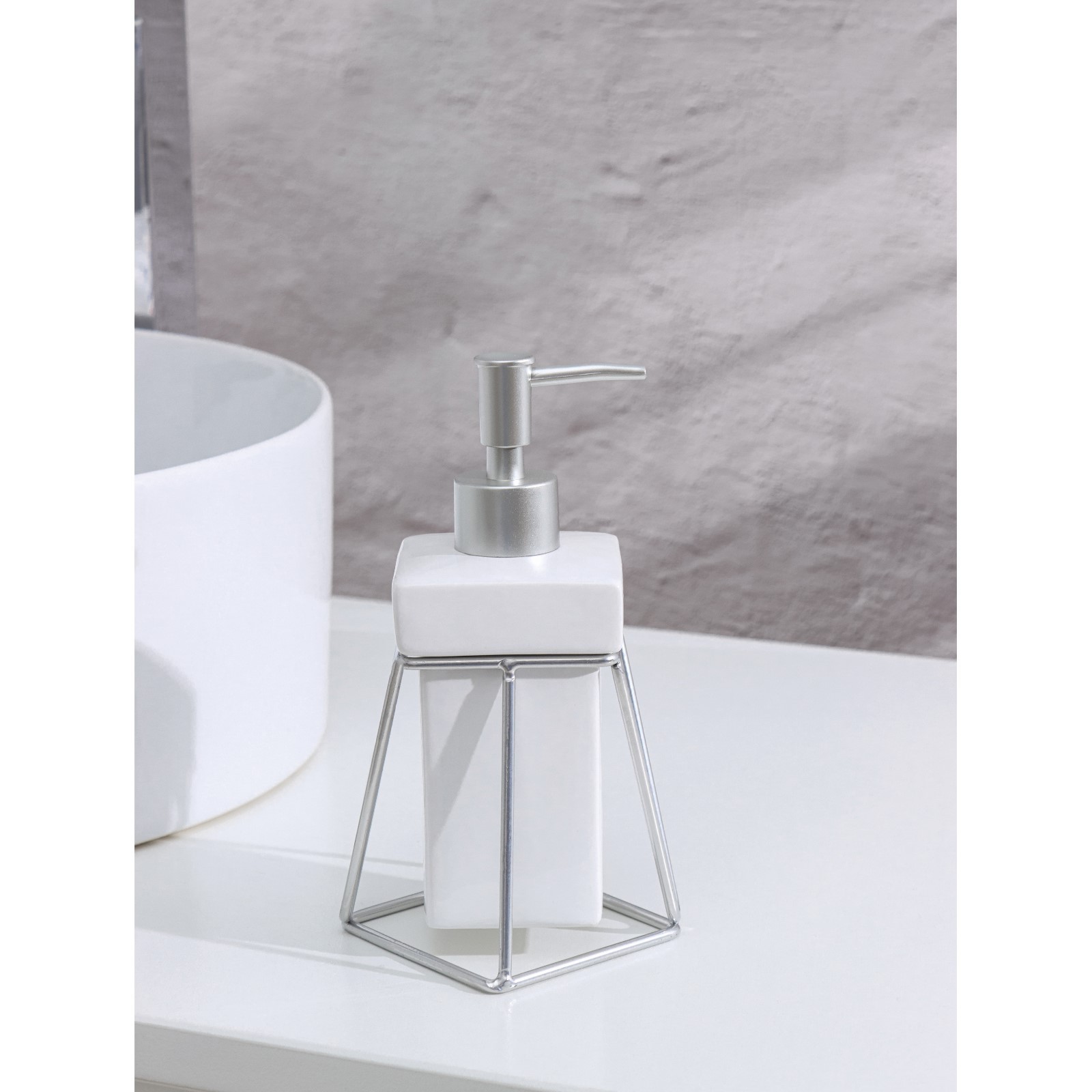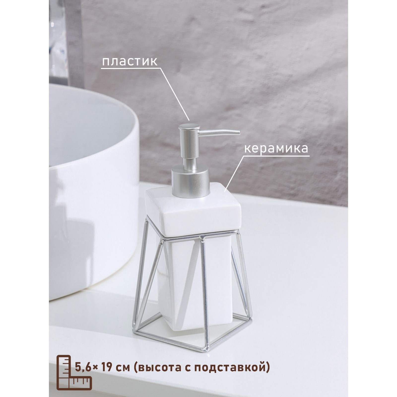 Дозатор для жидкого мыла на подставке savanna «геометрика», 250 мл, цвет белый. Керамический дозатор для жидкого мыла станет стильным дополнением вашей ванной комнаты или кухни. Такой аксессуар очень удобен в использовании. Просто перелейте жидкое мыло или моющее средство в диспенсер, а когда понадобиться, выдавите необходимое количество лёгким нажатием на помпу дозатора. Вы можете использовать диспенсер для жидкого мыла, шампуней, бальзамов или чистящих средств. Цвет: Серебристый Цвет: Белый Объём, мл: 250 tnved: 6912008500 Тематика: Однотонная Материал: Керамика Наличие губки/щётки: Нет Настенные: Нет Тип: Дозатор (диспенсер) Запрет реализации по сегментам: 00000000485 Способ заправки: Наливной Механизм управления: Ручной  развернуть описание ▼