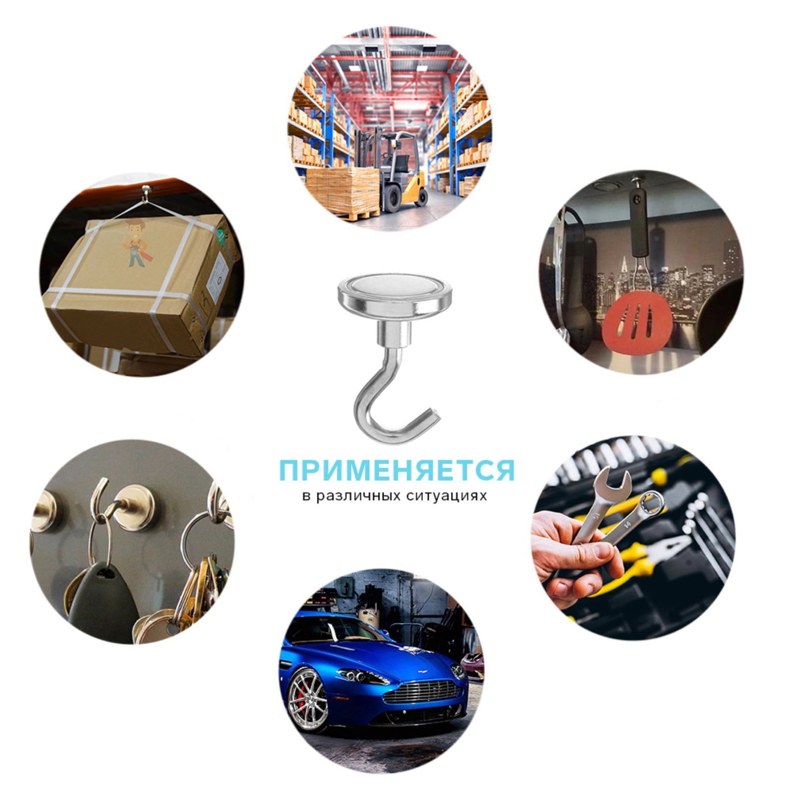 Магнит неодимовый cartage с крючком для авто, d 25 мм, сцепление 10 кг. Мощный постоянный магнит известен своей мощностью притяжения и высокой стойкостью к размагничиванию. Очень востребован и применяется в различных областях. Размагничивание происходит достаточно медленно и за 10 лет "сила" магнита снижается всего на 1 – 2 %. Неодимовый магнит отлично подойдет для закрепления на крыше, капоте или багажнике машины различных табличек и знаков, которые не сместятся даже при высокоскоростном движении или сильном ветре. Так же используется для закрепления тентов навесов на кузове автомобиля. Неодимовые магниты можно применять и для крепления каких-либо приборов в салоне. Кроме того, магниты могут намагничивать инструменты (допустим, отвертку) и восстанавливать утраченные характеристики других магнитов. Цвет: Серебристый В наборе, шт.: 1 В упаковке, шт.: 1 Количество крючков: 1 Maксимальная нагрузка, кг: 19 Материал: Металл Вид: Магнитные аксессуары и захваты Форма: Крючок Форма: S-образный Вид крепления: Магнит  развернуть описание ▼