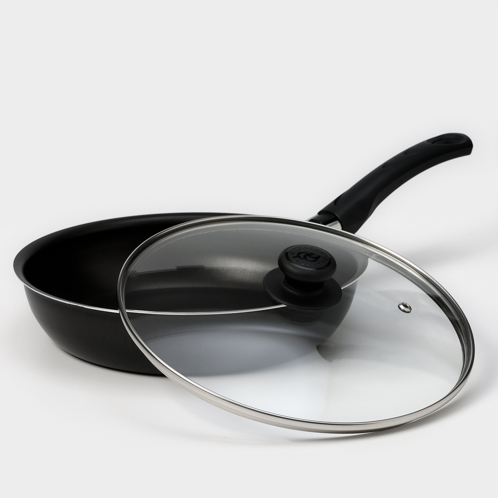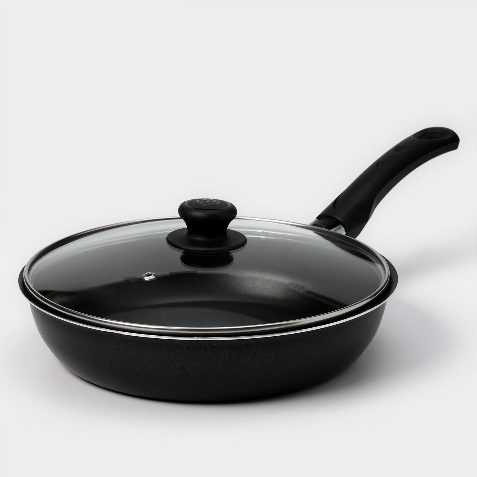 Сковорода «классика атлас», D=24 см, пластиковая ручка, стеклянная крышка, антипригарное покрытие, цвет чёрный