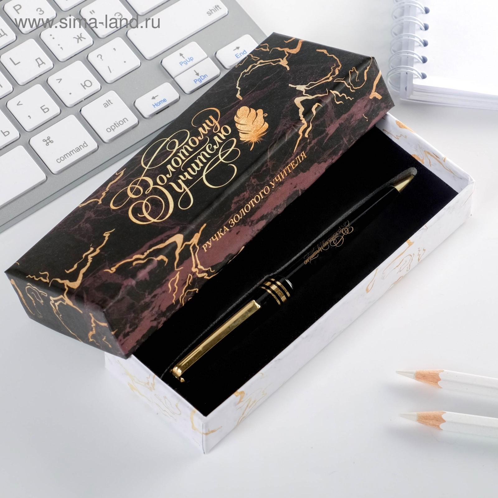 Ручка шариковая в подарочной коробке, пластик, синяя паста, 1.0 мм «золотому учителю». Ручка отлично подойдет в качестве подарка. Яркий дизайн несомненно привлечет внимание и будет выделяться среди других предметов, а удобная форма корпуса позволит использовать ее с комфортом. Вид ручки: шариковая;Цвет стержня: синий;Стержень заменяемый: да;Материал: пластик;Форма корпуса: круглая.Упаковка: пакет. Диаметр пишущего узла, мм:1|Набор:Нет|Цвет:Чёрный|Тип:Автоматическая ручка|Вид ручки:Шариковая|Цвет стержня:Синий|Особенности ручек:Без особенностей|Европодвес:Нет|Вид упаковки:Пакет|Тематика праздника:День учителя|Адресат:Учителю|Материал:Пластик|Материал упаковки:Полиэтилен|Стержень заменяемый:Да|Штрихкод на единице товара:Да|Наличие грипа:Нет|Страна:Китай  развернуть описание ▼