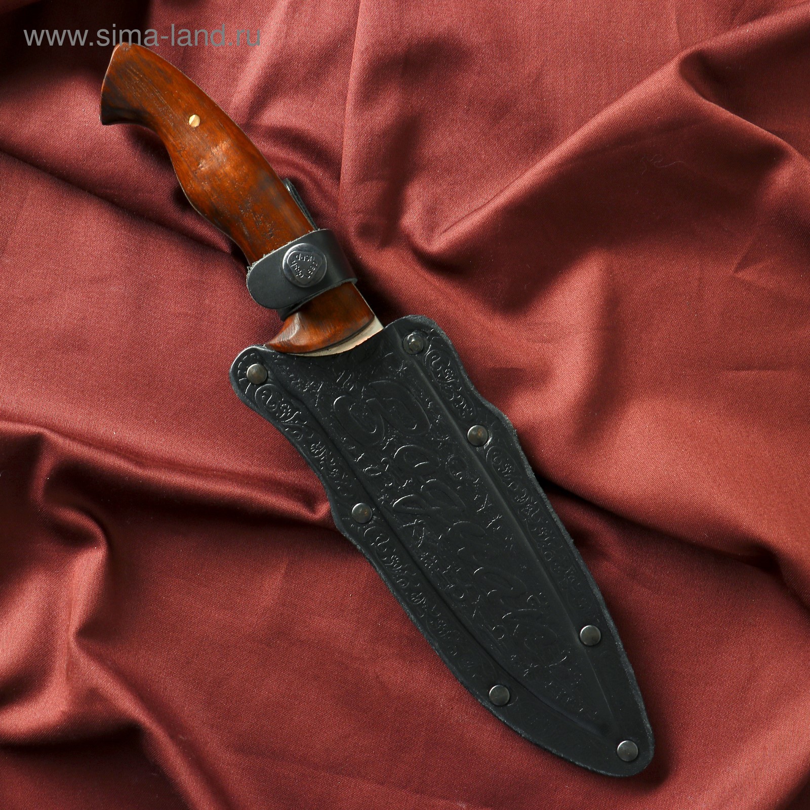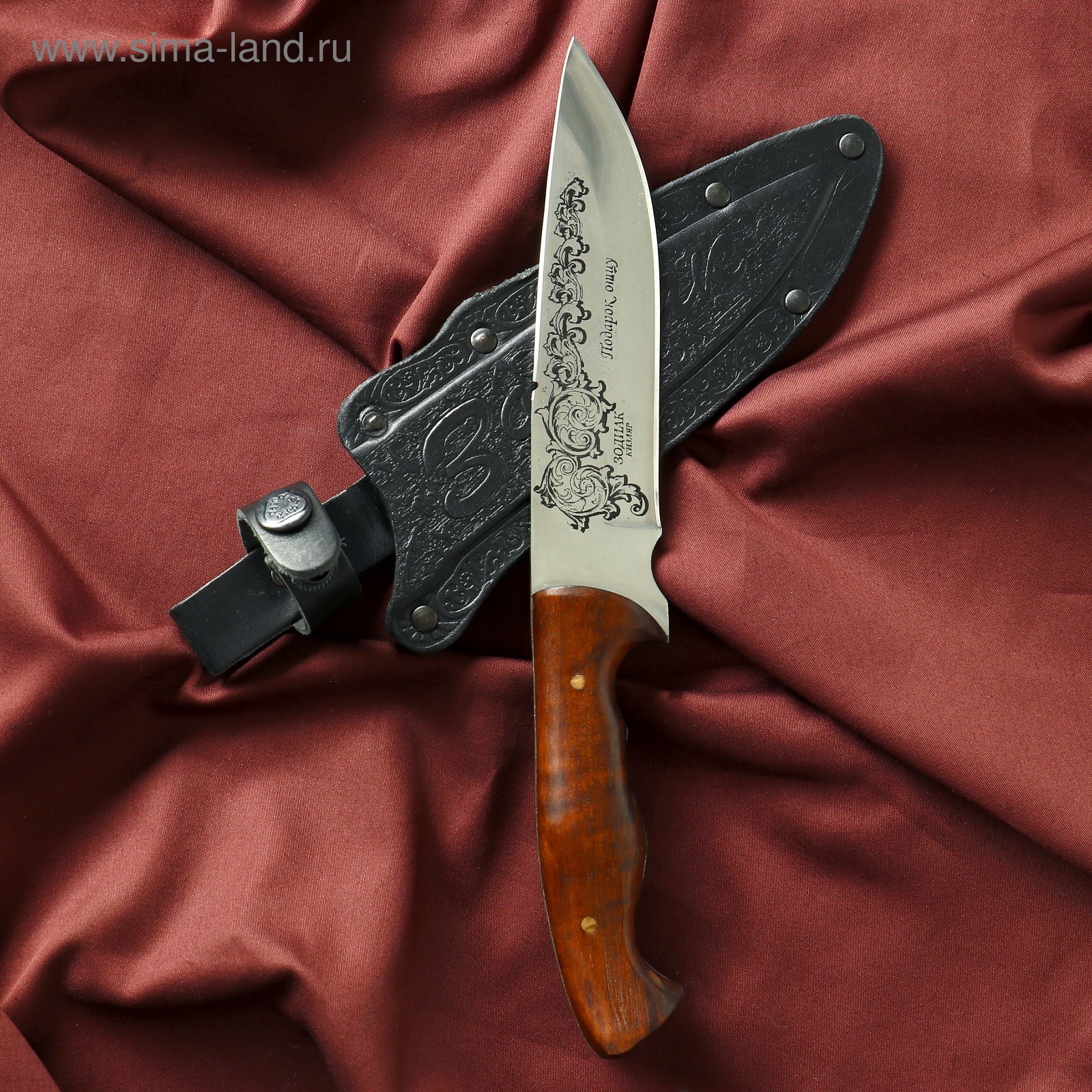 Нож кавказский, туристический "зодиак" с ножнами, сталь - 40х13, вощеный орех, 14.5 см. Небольшой городок Кизляр, расположенный на границе Дагестана и Чечни, известен не только своими коньяками, но и искусными ножами и кинжалами. Народные умельцы из поколения в поколение изготавливают клинки, получившие со временем мировую известность благодаря эталонному качеству и стилю. В производстве кизлярских ножей сочетаются современные технологии обработки материалов и традиции художественного оформления высочайшего мастерства. Виртуозы своего дела украшают ножи резьбой по металлу, дереву, кости, инкрустацией и выжиганием. Кизлярские ножи — не просто инструмент, это желанное и статусное приобретение для многих мужчин. Эти ножи станут и надёжными помощниками в деле, и замечательными сувенирами в коллекцию оружия. Цвет: Серебристый Цвет: Коричневый Длина лезвия, см: 14.5 Твёрдость лезвия, HRC: 55 Материал ручки: Дерево Материал: Дерево Материал: Сталь Сталь: 40X13 Общая длина ножа, см: 28 - 28.5 Температурное ограничение: Нет Метательный нож: Нет  развернуть описание ▼