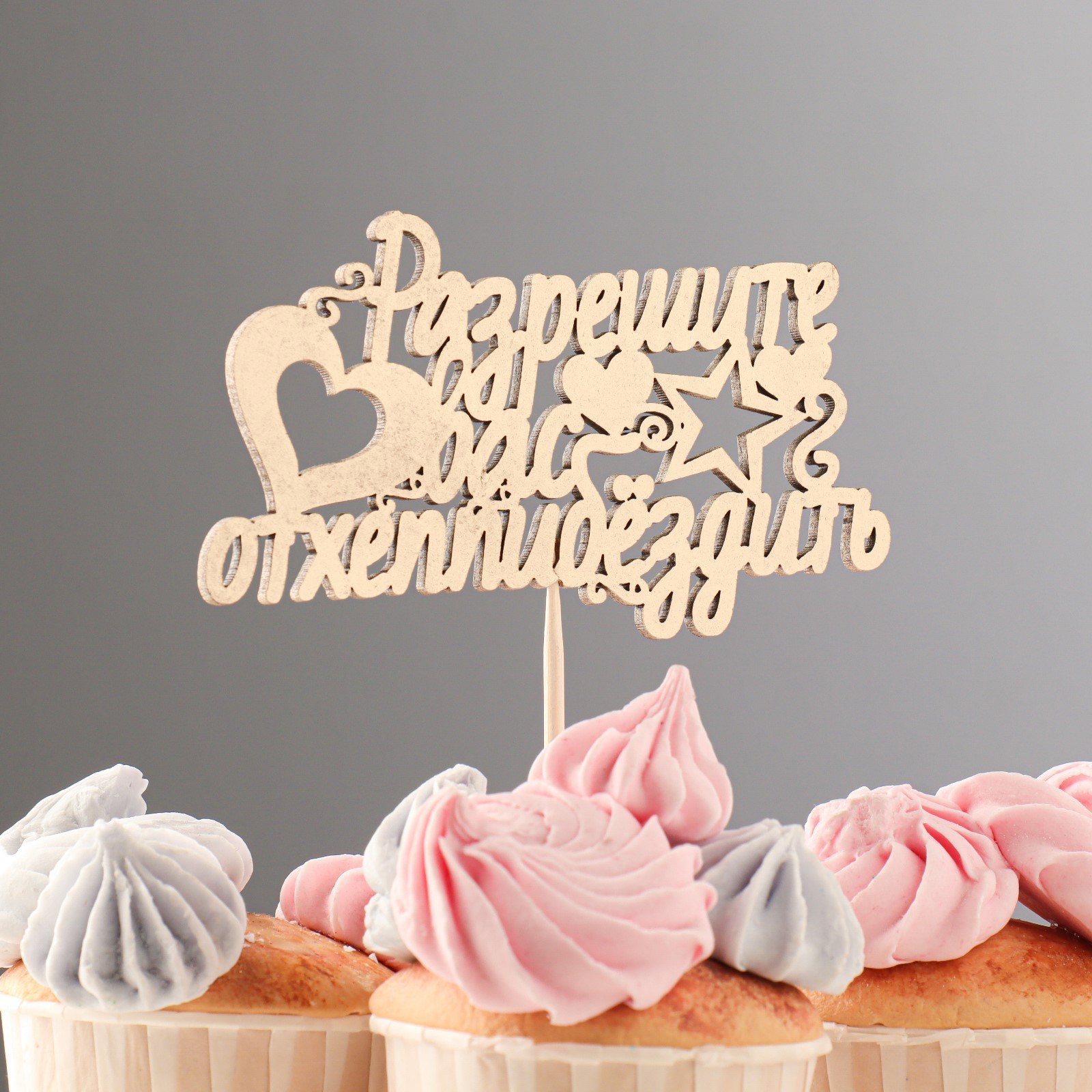 Топпер дарим красиво "разрешите вас отхеппибёздить" на подвесе, золотой