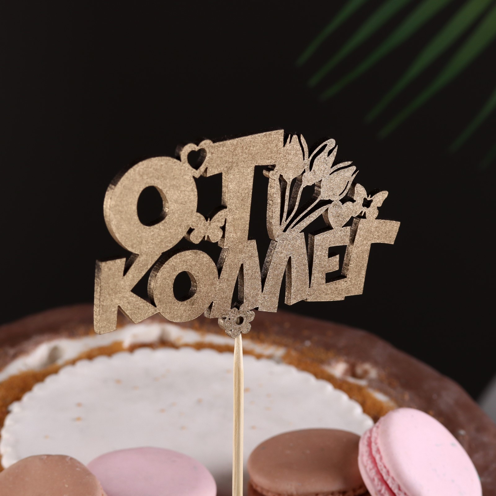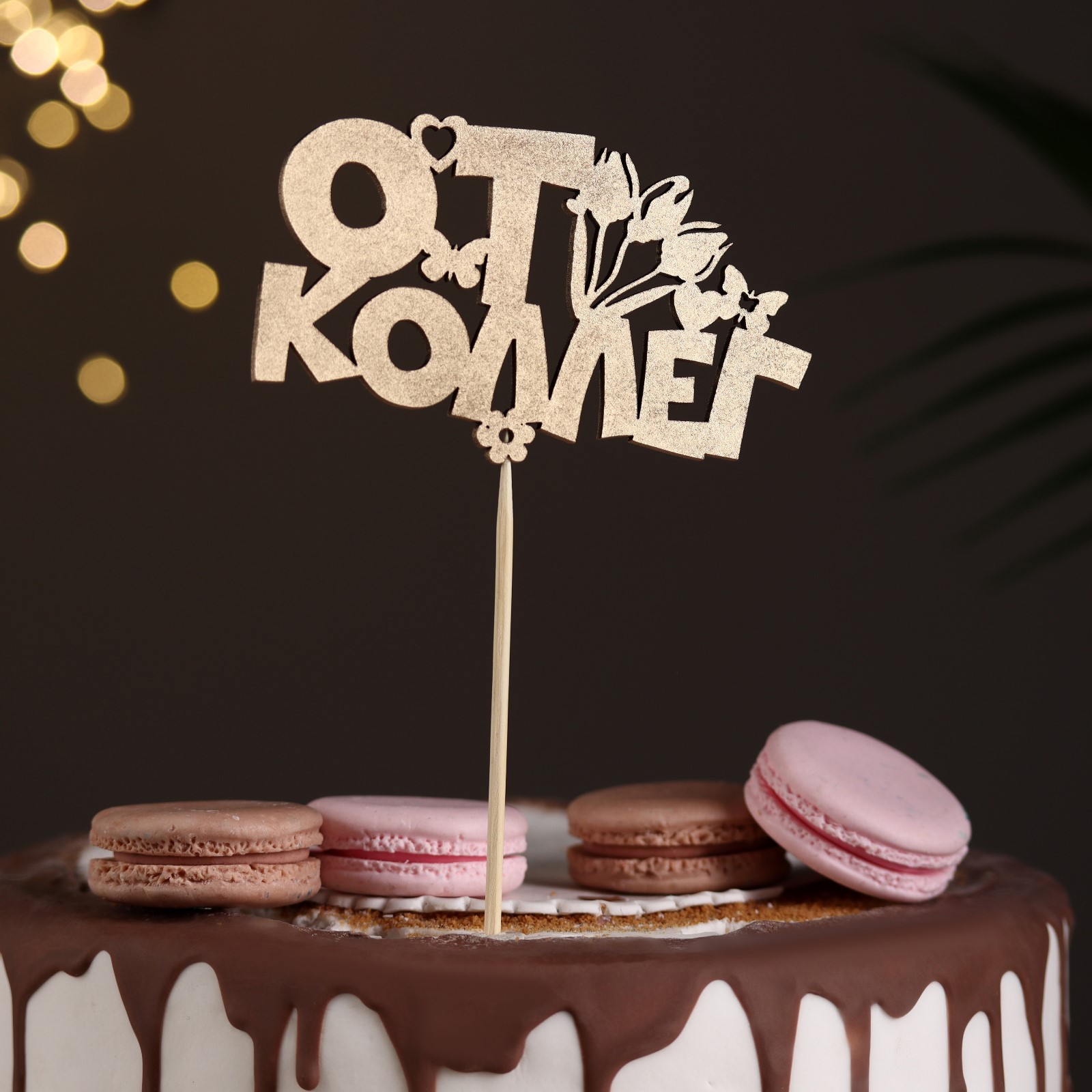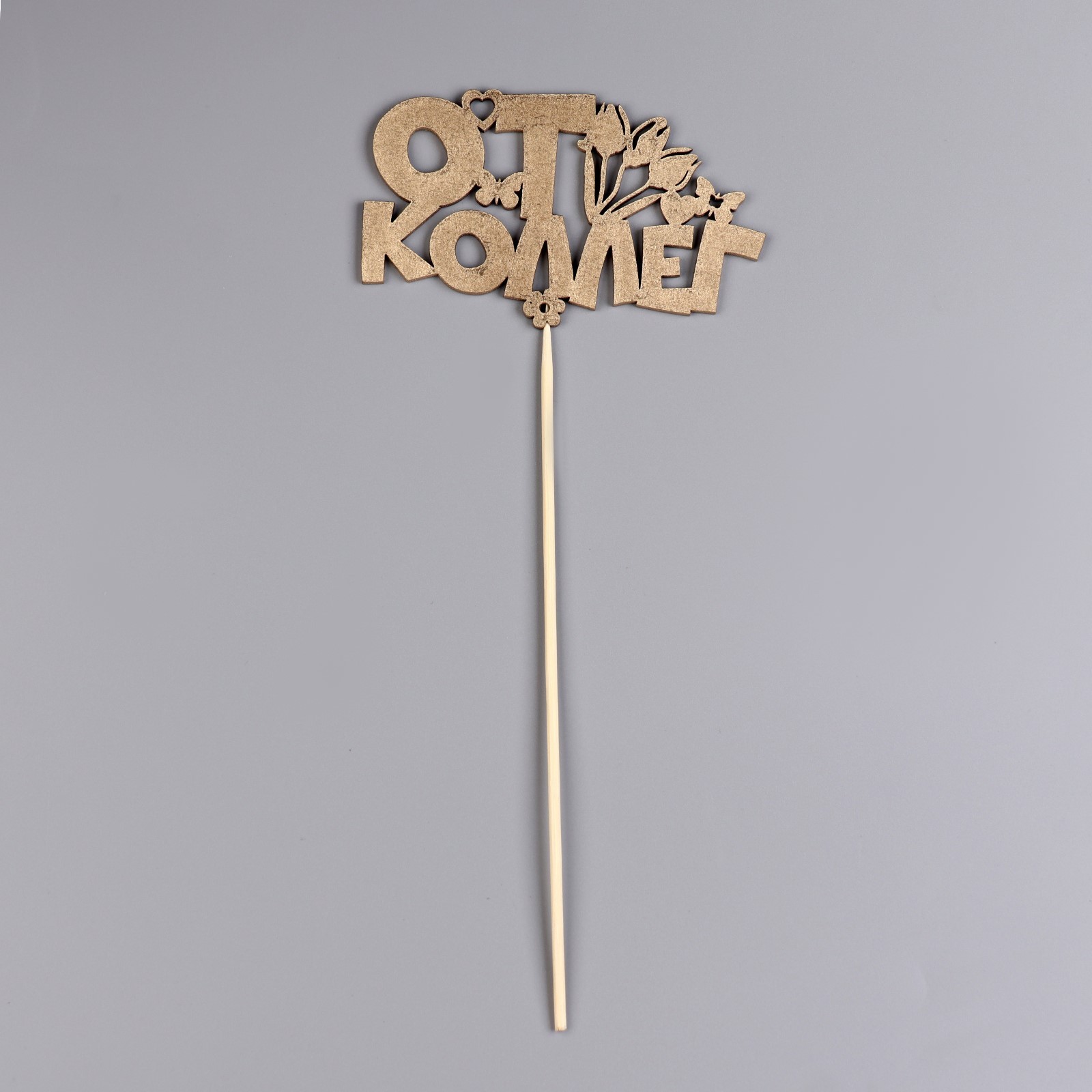 Топпер "от коллег, тюльпаны, бабочки, сердечки" на подвесе, золотой
