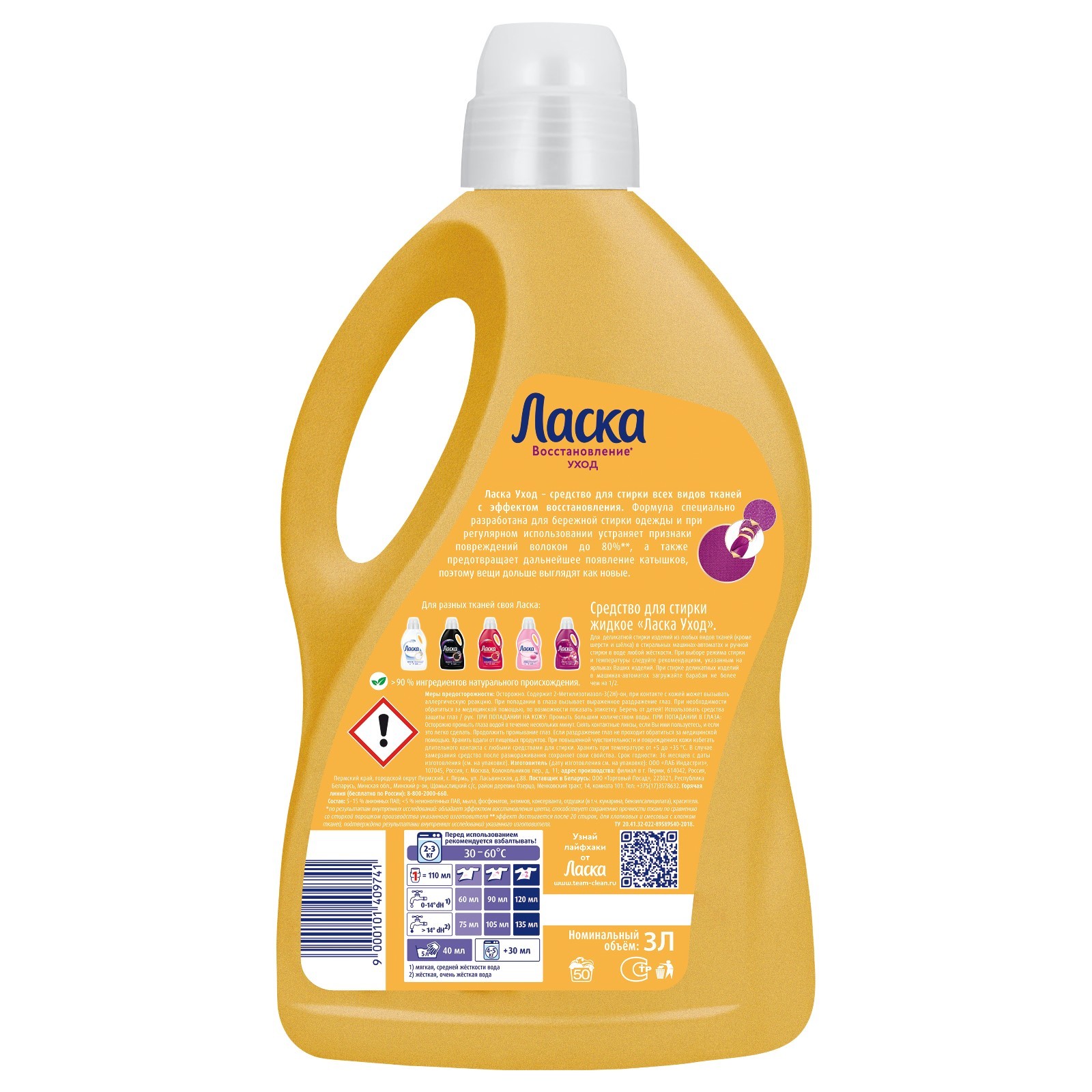 Гель для стирки ласка «уход и восстановление», 3 л