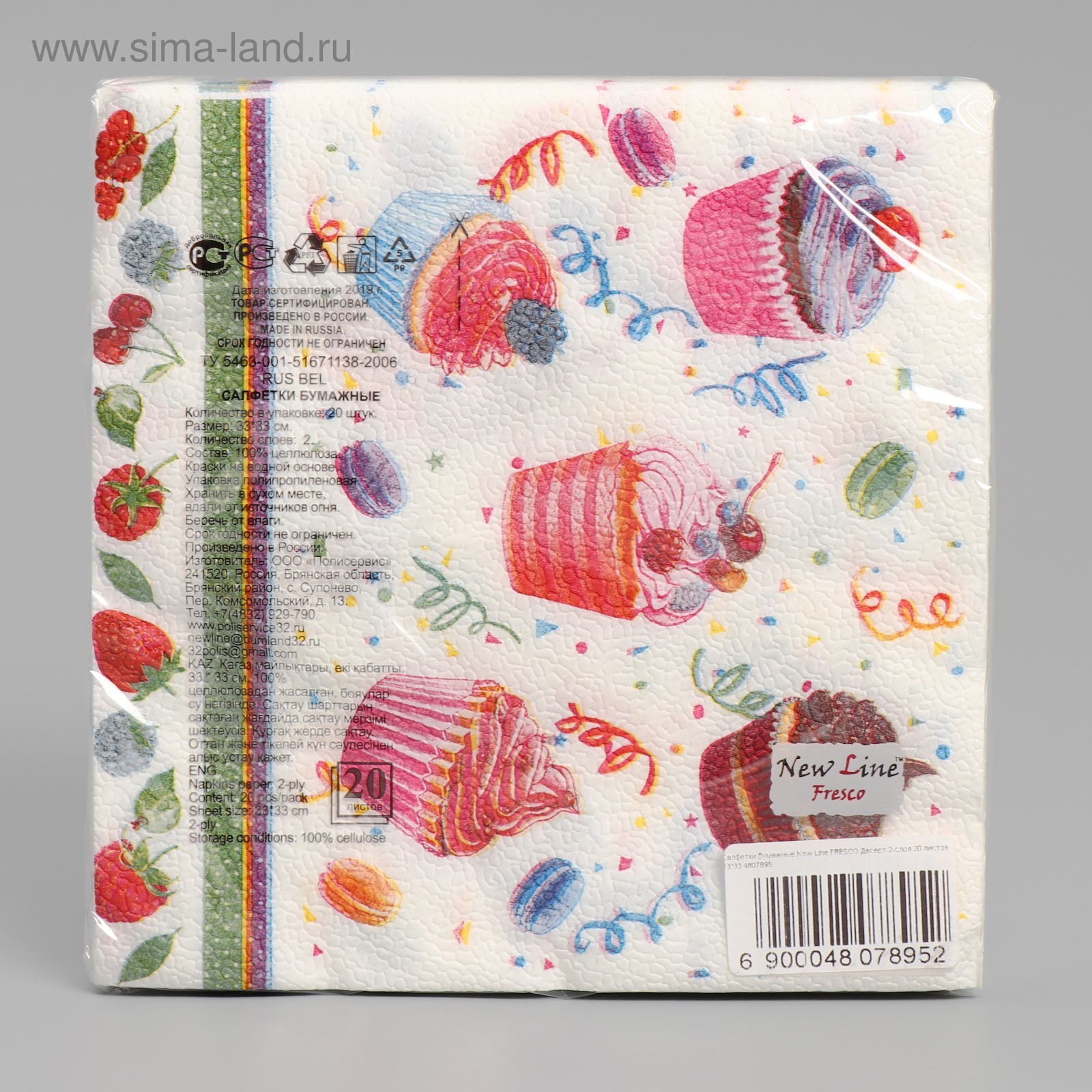 Салфетки бумажные New Line Fresco «десерт», 2 слоя, 33*33 см, 20 шт.