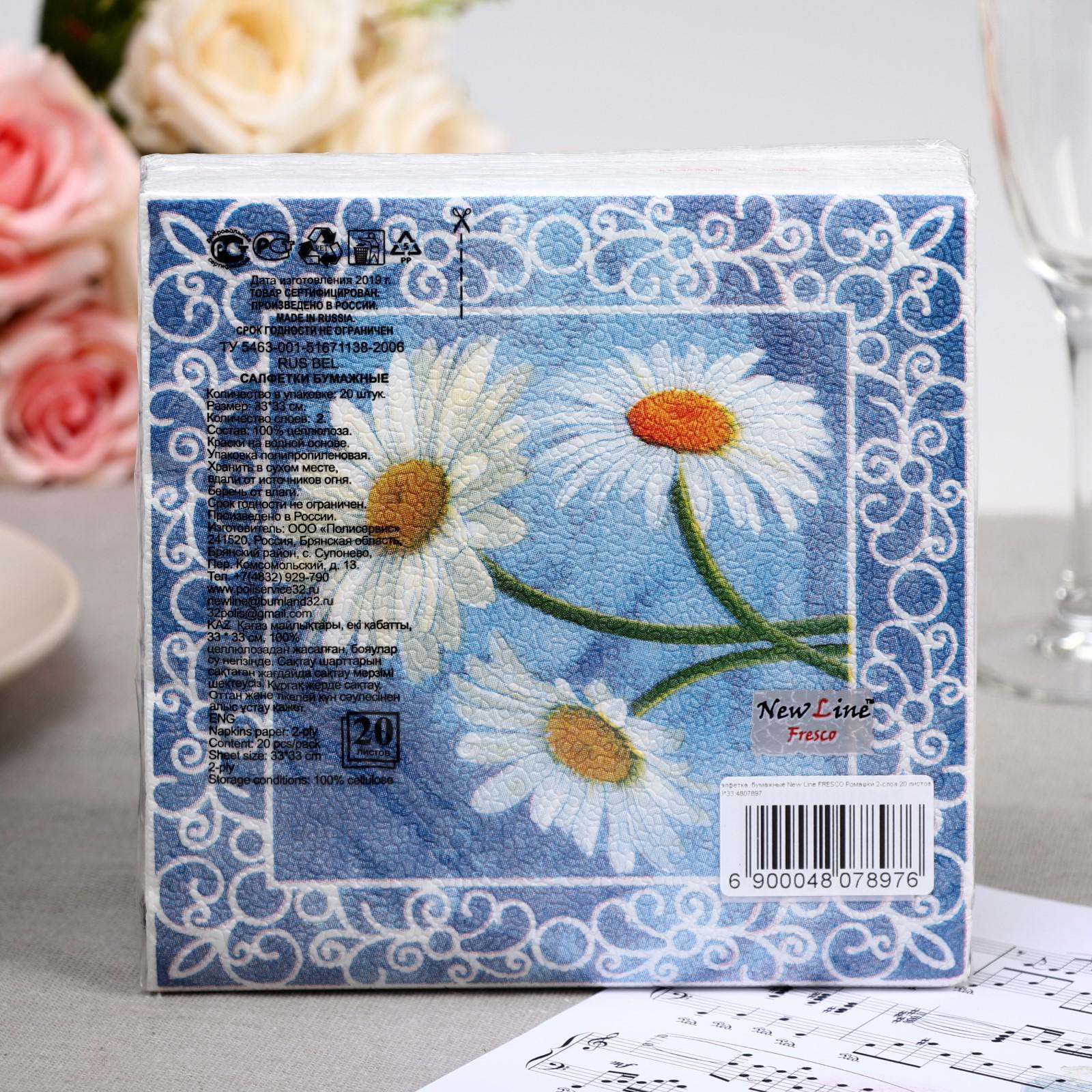 Салфетки бумажные New Line Fresco «ромашки», 2 слоя, 33*33 см, 20 шт.