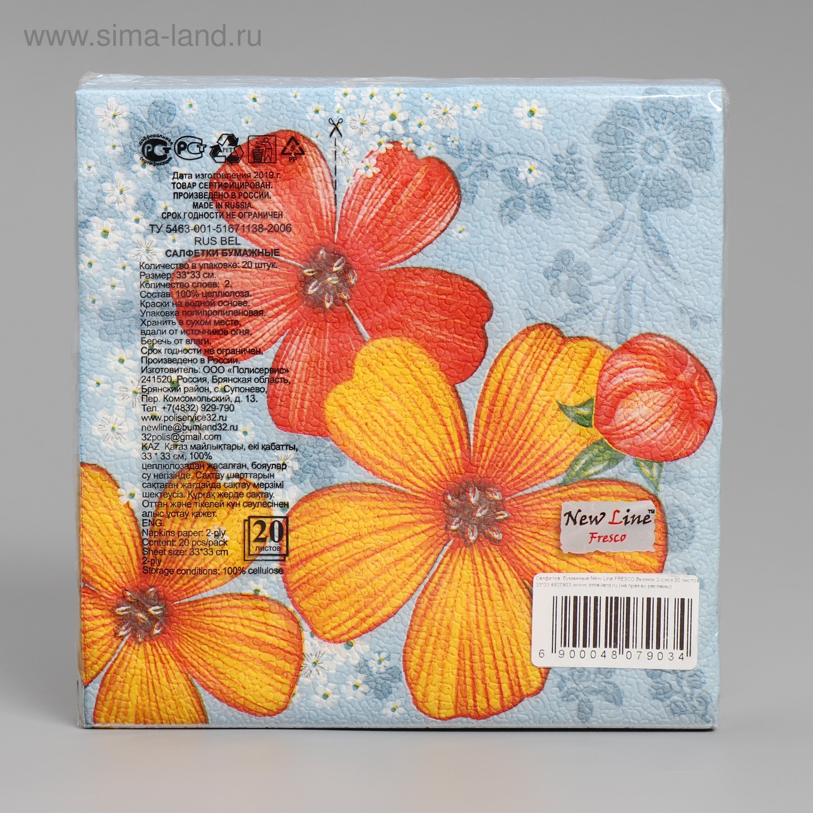 Салфетки бумажные New Line Fresco «вьюнок», 2 слоя, 33*33 см, 20 шт.
