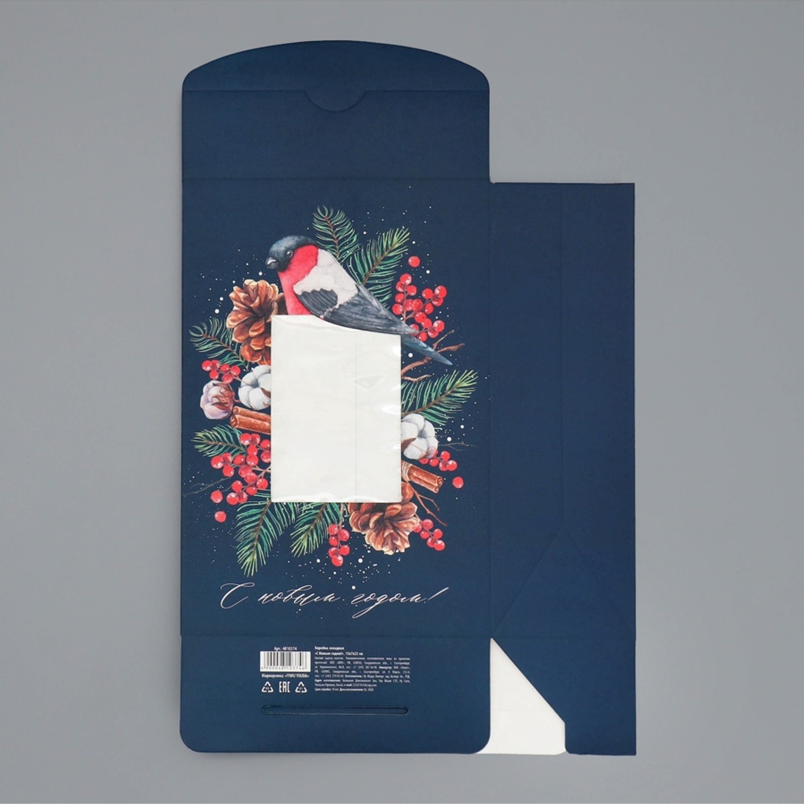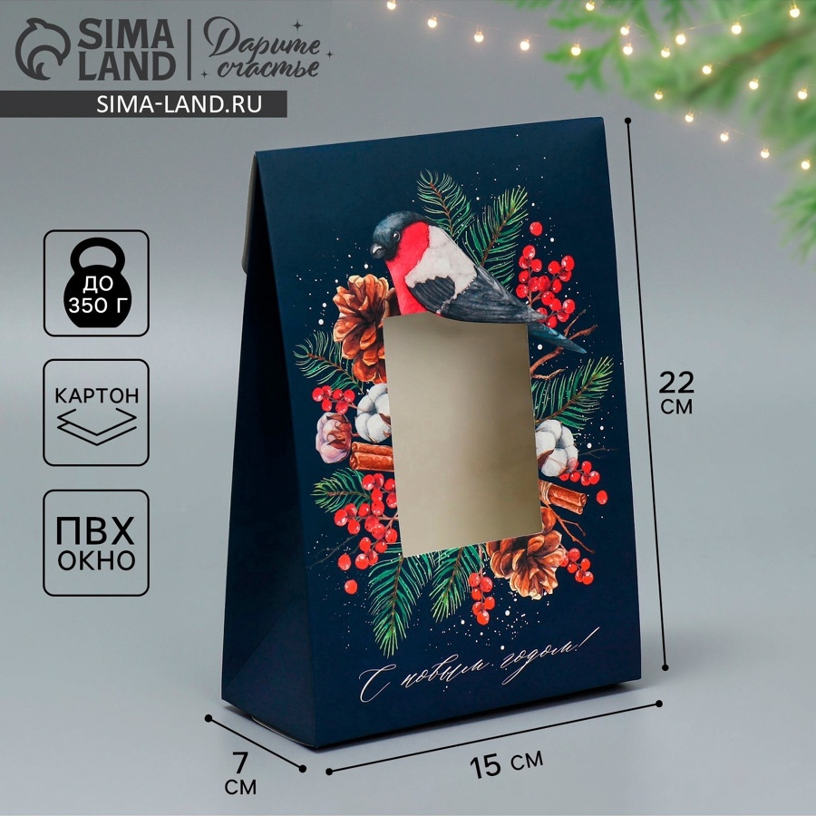 Коробка подарочная новогодняя складная «с новым годом!», 15 х 7 х 22 см. Вид упаковки:Для конфет|Цвет:Чёрный|Форма:Трапеция|Плотность, г/м :250|Длина, см:15|Ширина, см:7|Высота, см:22|Допустимый вес вложения, г:350|Тематика:Новогодняя|Символ года:Нет|Тематика праздника:Новый год|Материал:Картон|Вид ручки:Без ручки|Декоративные элементы:Без декора|Вид:Складные коробки|Размер:Средний (18-24 см)|Окошко:Да|Крышка-дно:Нет|Страна:Китай  развернуть описание ▼