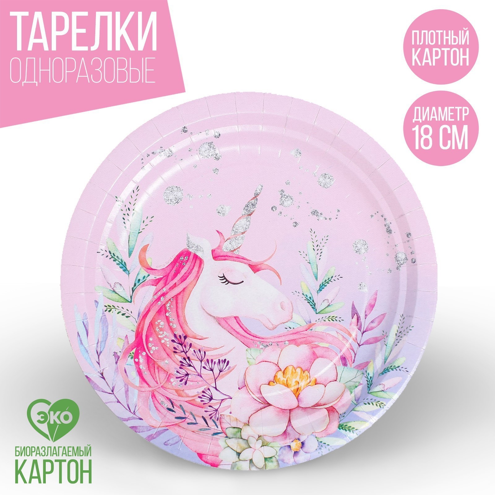 Тарелка одноразовая бумажная "единорожка", 18 см