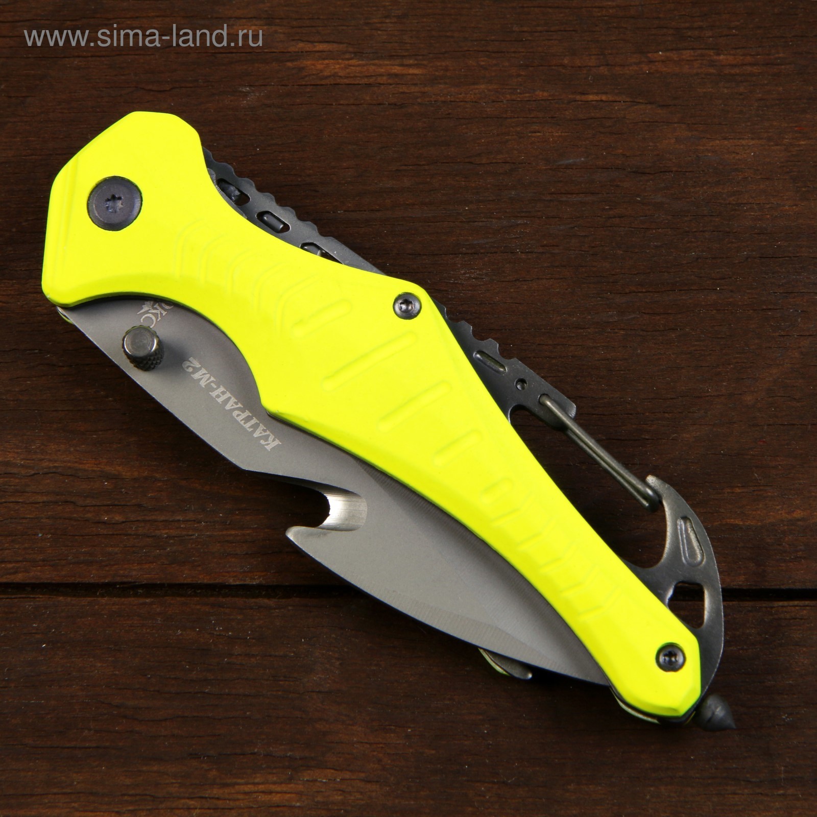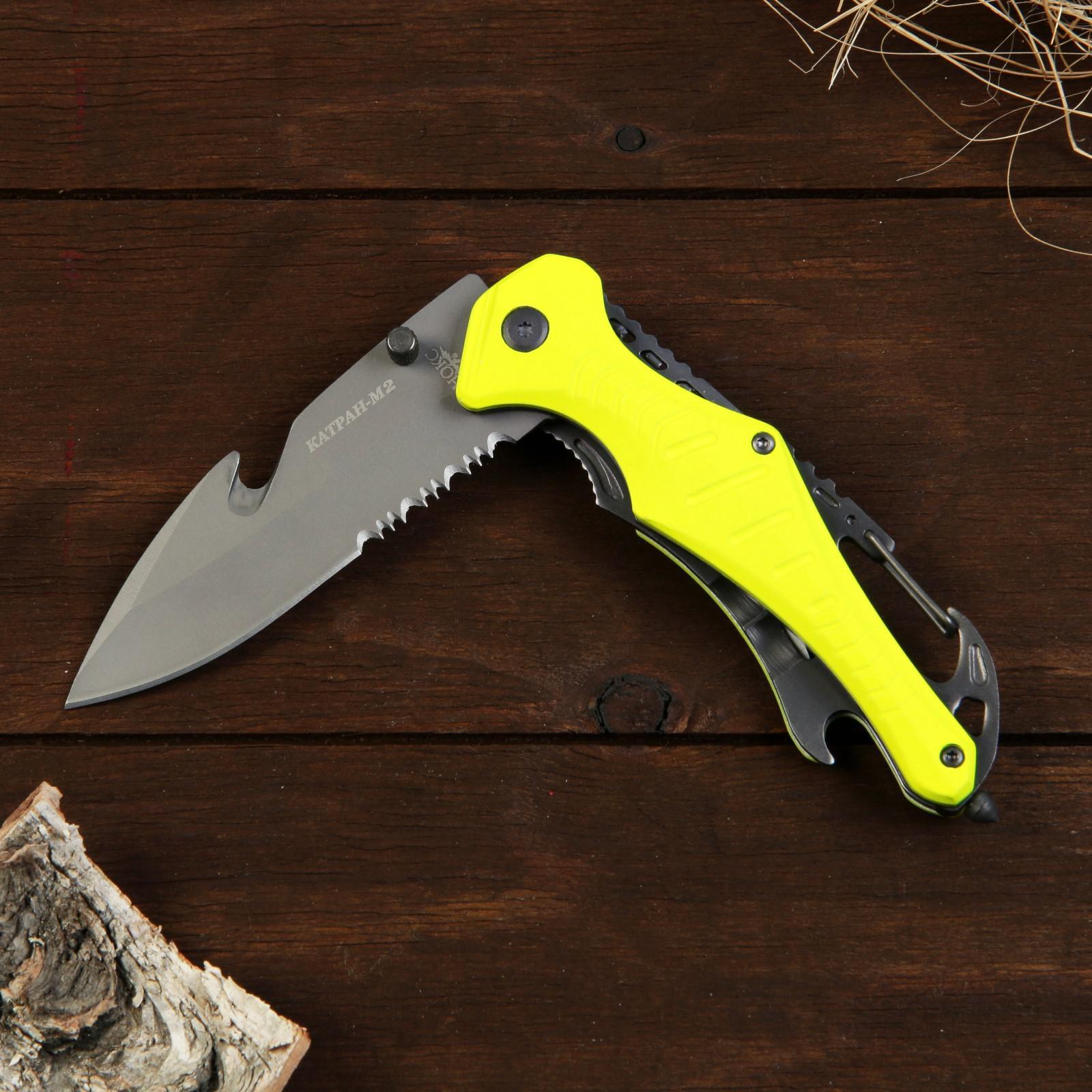 Нож складной аварийно-спасательный "катран-м2". Длина лезвия, см: 8.8 Твёрдость лезвия, HRC: 58 Материал ручки: Алюминий Материал ручки: Резина Материал ручки: Пластик Фиксатор: Да Сталь: AUS-8 Температурное ограничение: Нет Тип ножа: Складной неавтоматический  развернуть описание ▼
