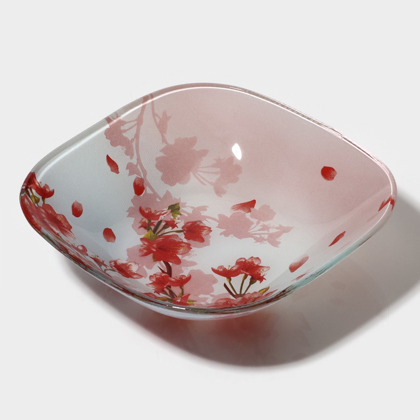 Салатник стеклянный доляна «сакура», 400 мл, 15x15 см