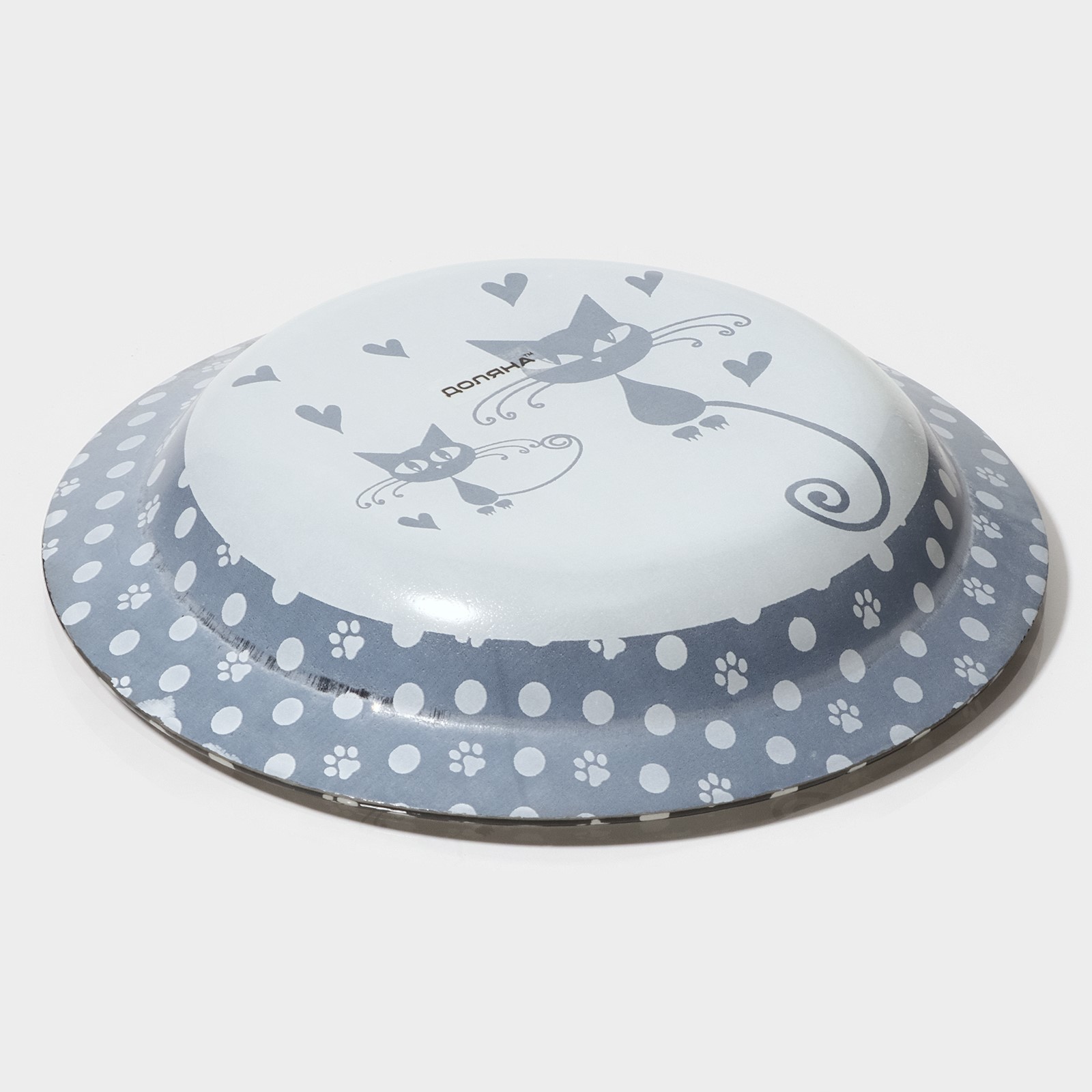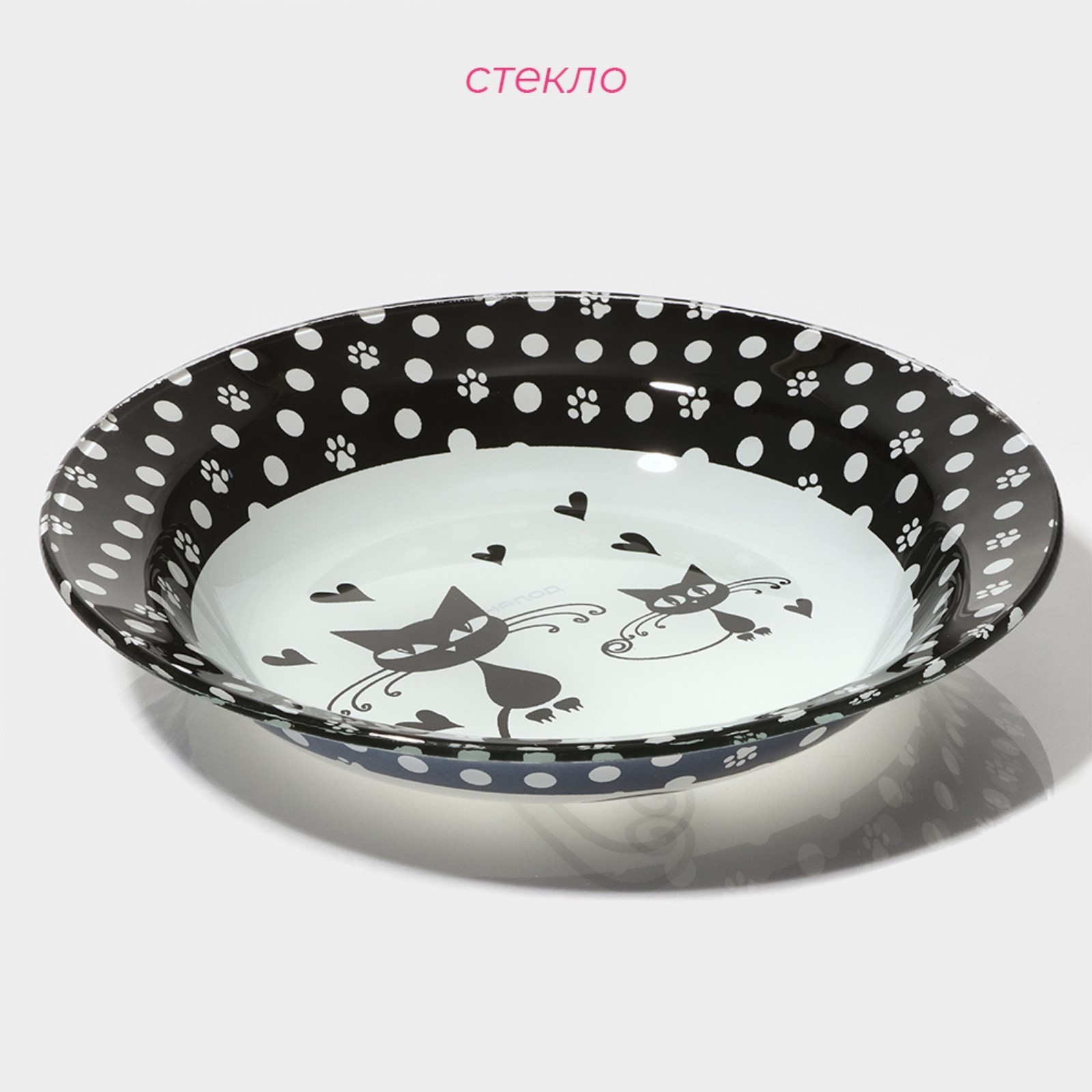 Тарелка стеклянная суповая доляна «котики», 450 мл, D=18,8 см, цвет белый/чёрный