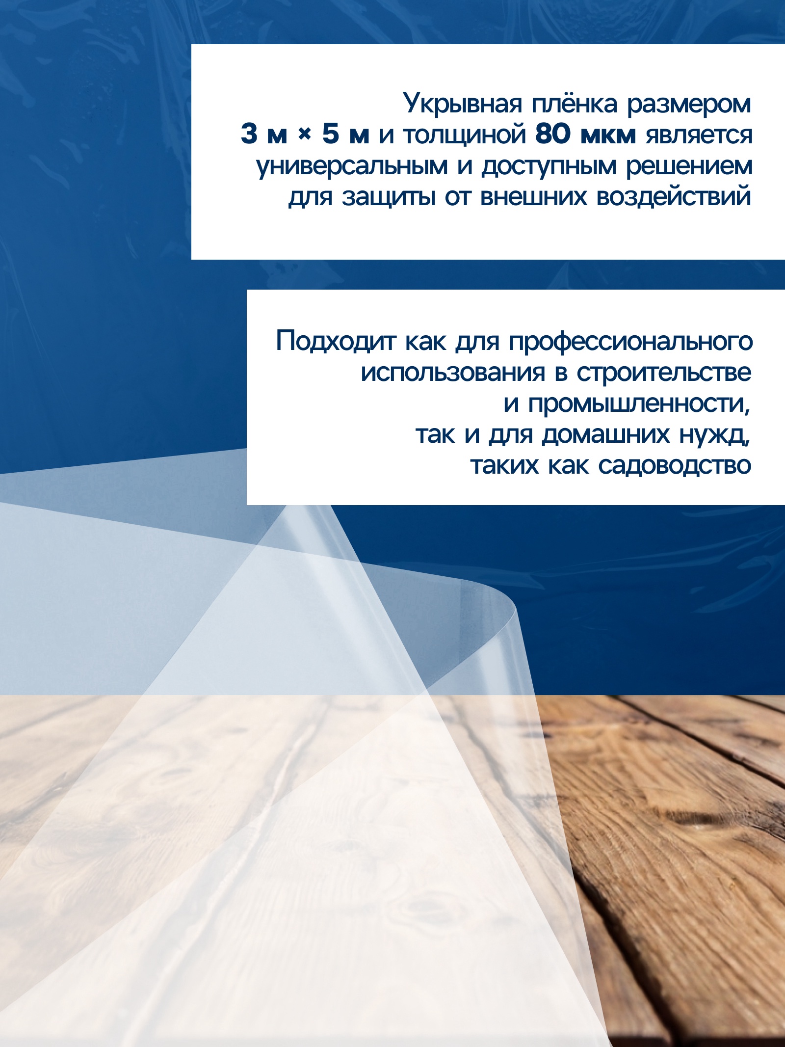 Плёнка полиэтиленовая 80 мкм, прозрачная, длина 5 м, ширина 3 м, рукав (1.5 2 м), эконом 50% , Greengo