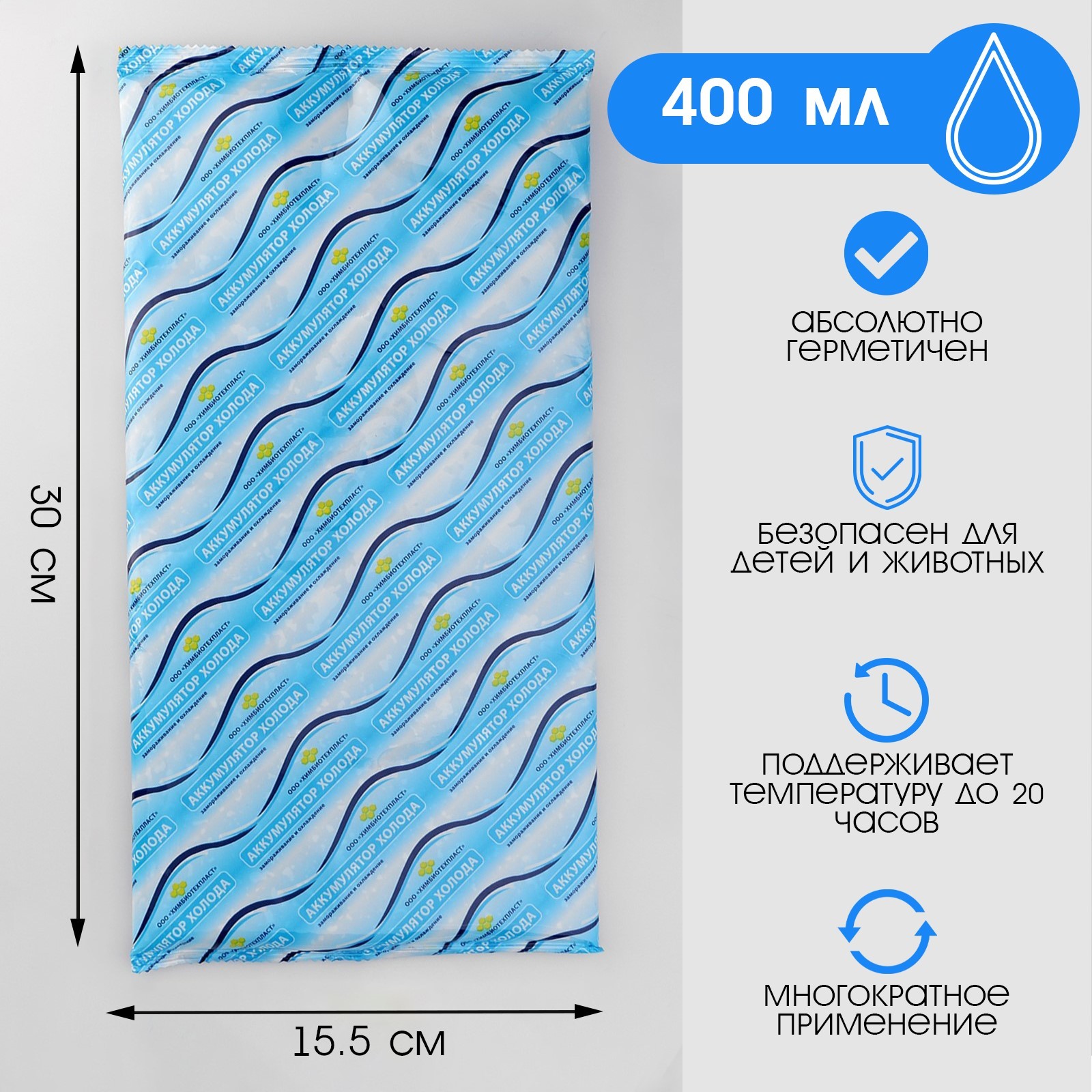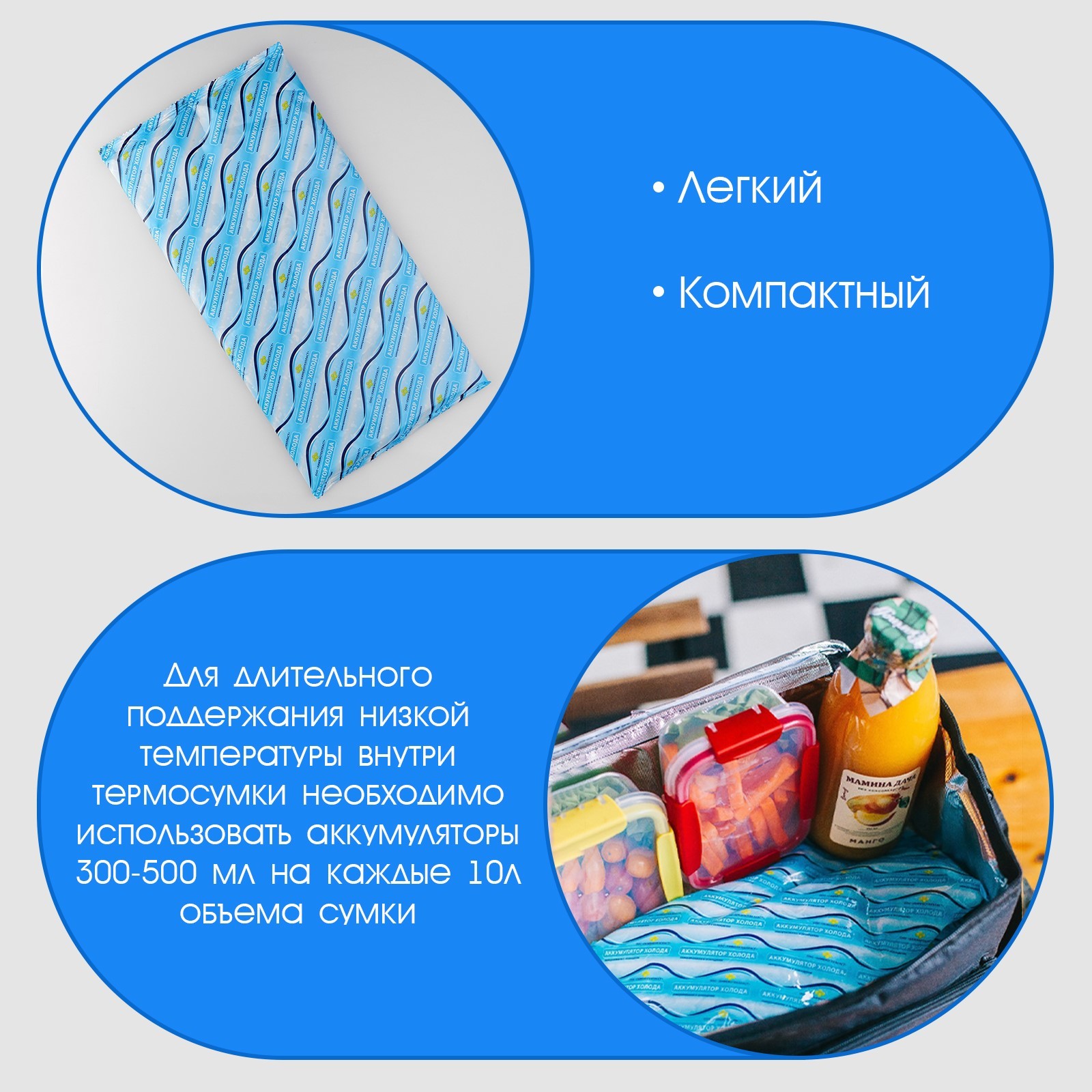 Аккумулятор холода - гелевый хладоэлемент для термосумки "мастер к.", до 20 ч, 400 мл. Путешествие, поход, туристическое приключение станут проще, если в дорогу взять портативный аккумулятор холода. Аккумулятор тепла/холода, он же хладоэлемент и холодоаккумулятор, предназначен для поддержания высокой или низкой температуры в контейнерах из вспененных материалов, сумках-холодильниках и термопакетах. Он равномерно распределяет холод или тепло внутри термосумки, не протекает, обеспечивает долговременное охлаждение продуктов. Термоаккумулятор также используется медицинскими работниками и спортсменами для охлаждения или прогревания отдельных участков тела при ушибах и гематомах, или для восстановления мышц после интенсивных тренировок. Этот компактный резервуар со специальным гелевым растровом (хладагентом) обладает высокой теплоемкостью. Криопакет актуален для хранения продуктов питания и напитков, когда предстоят продолжительные поездки или же отправка на пикник. А также, хранения лекарств, которые требуют пребывания в прохладной среде. Маленький охладитель прост в использовании: достаточно поместить его в холодильник или морозилку на 8-12 часов. После этого терморегулятор можно разместить в термосумке, контейнере, сумке-холодильнике, термопакете или аптечке. Количество элементов, необходимых для охлаждения, зависит от объемов аксессуара. На каждые 10 литров необходимо использовать 300-500 мл охладителя. Располагать рекомендуем на разных сторонах сумки, а для более эффективного охлаждения, аккумуляторы следует размещать между продуктами. Для отдыха на природе, путешествий на автомобиле, рыбалки, охоты, рюкзака – аккумулятор холода способен пригодиться в самых разных ситуациях. Для дачи, садового домика, где нет полноценного холодильника, он станет незаменимым решением. В таких условиях его можно использовать как автомобильный холодильник. Длина, см: 30 Ширина, см: 15.5 Объём, л: 0.4 Время сохранения тепла/холода, ч: 20 Объём, мл: 400 Вид: Аккумулятор температуры Температурное ограничение: Нет Вид: Мягкий  развернуть описание ▼