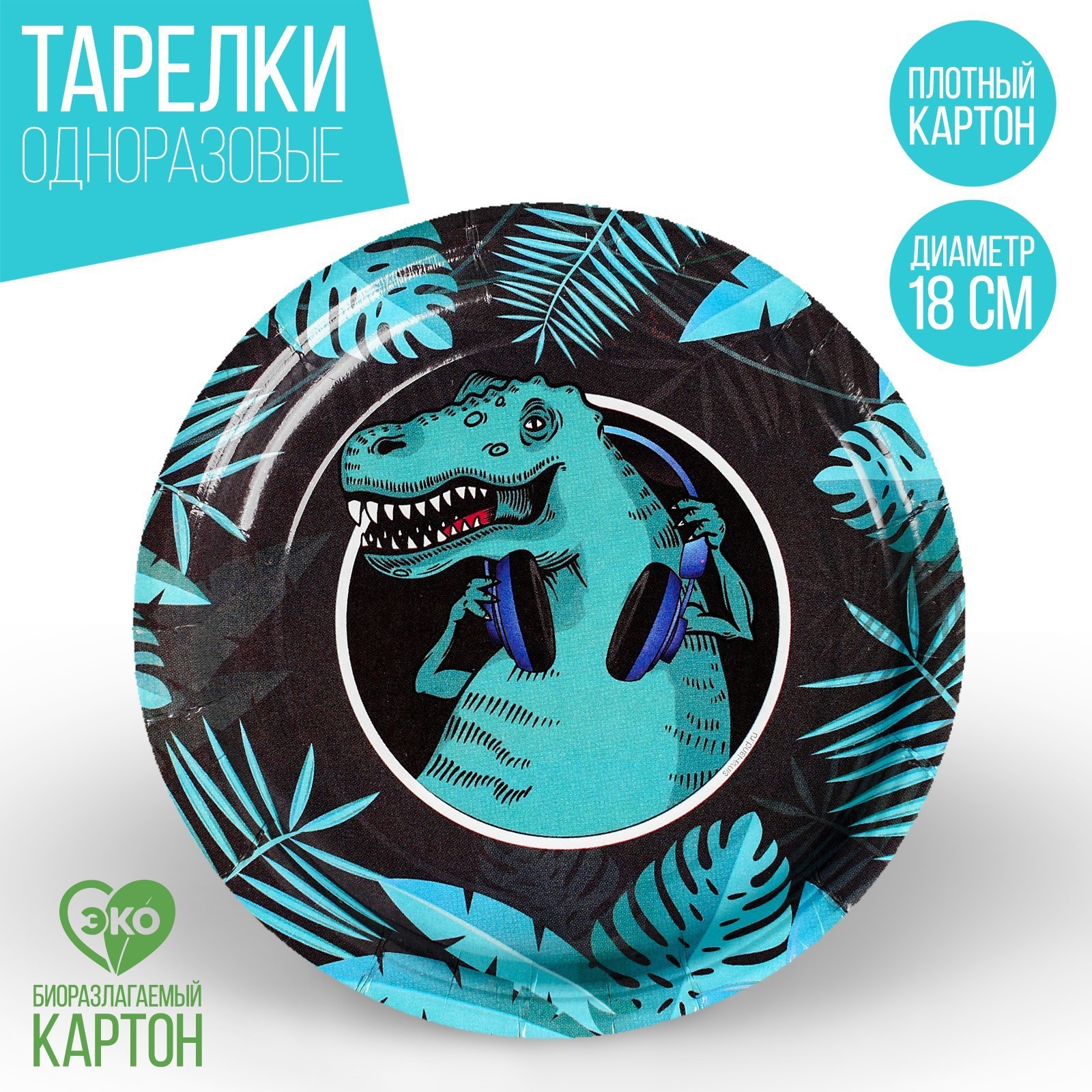 Тарелка одноразовая бумажная "динозавр", 18 см