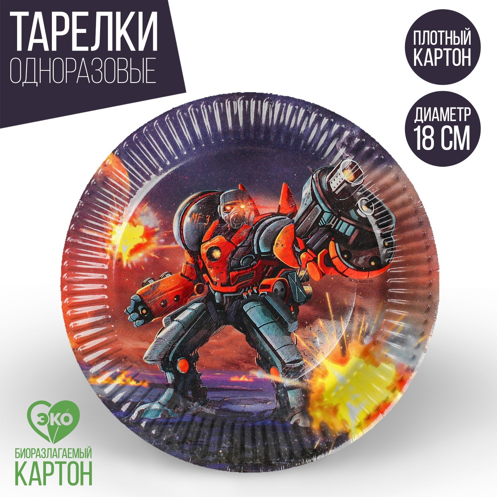 Тарелка одноразовая бумажная "робот", 18 см