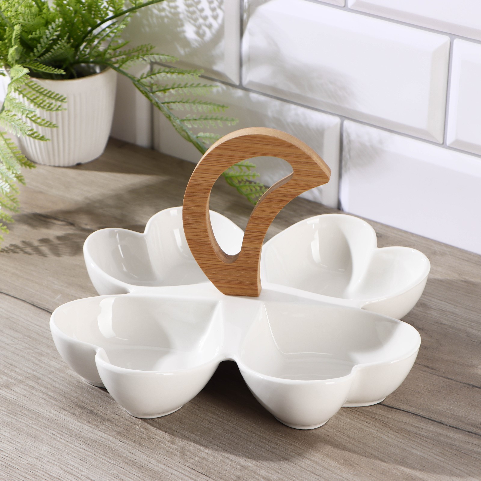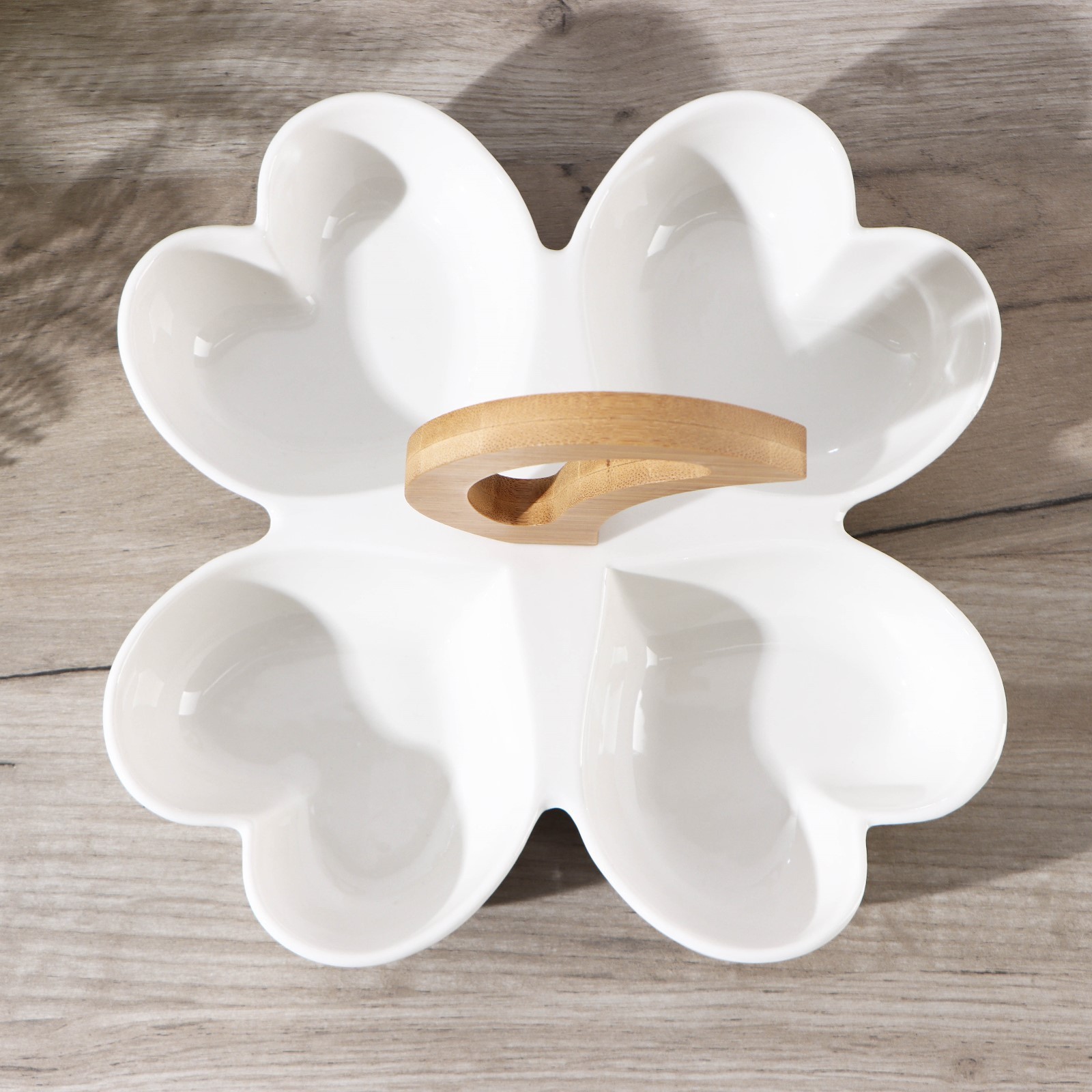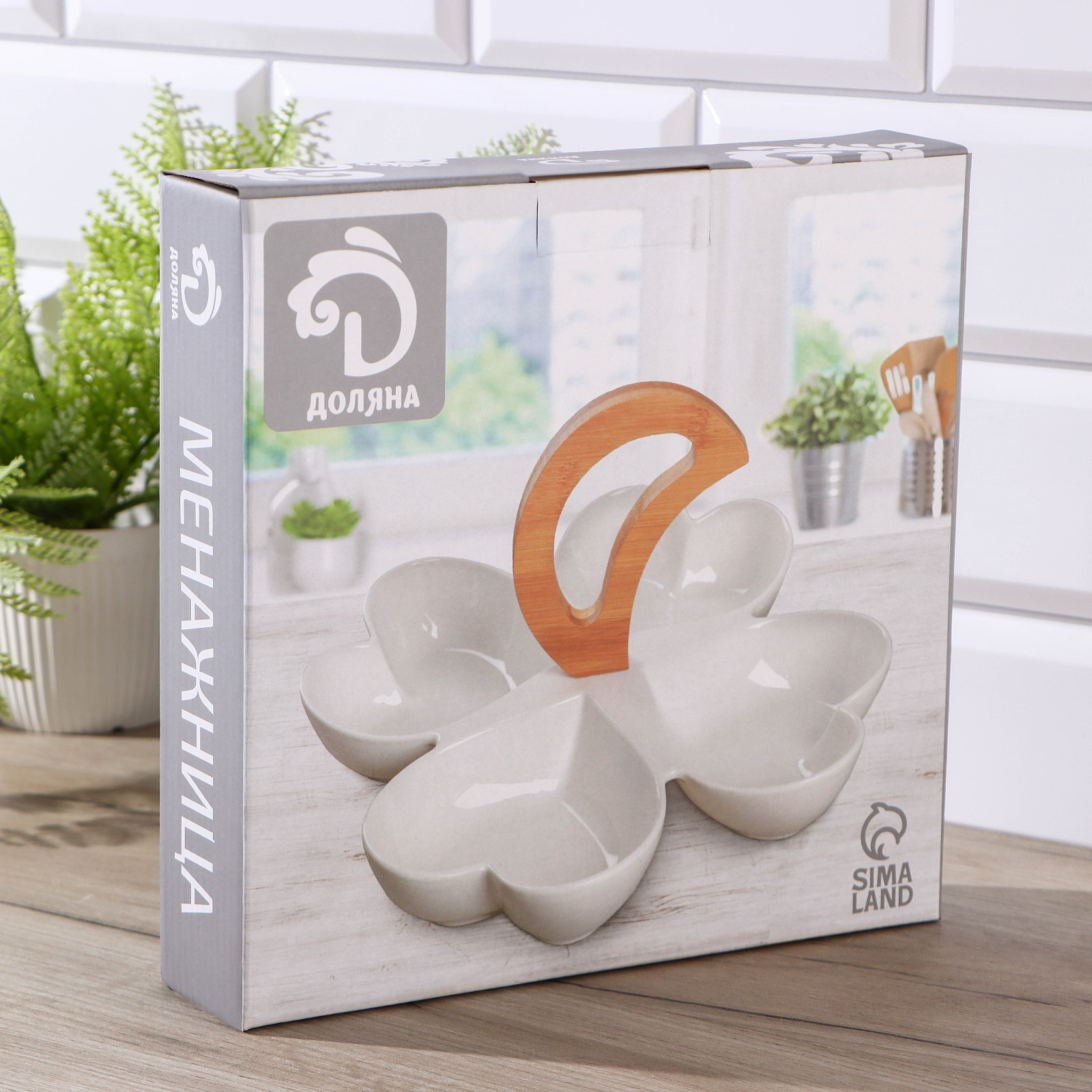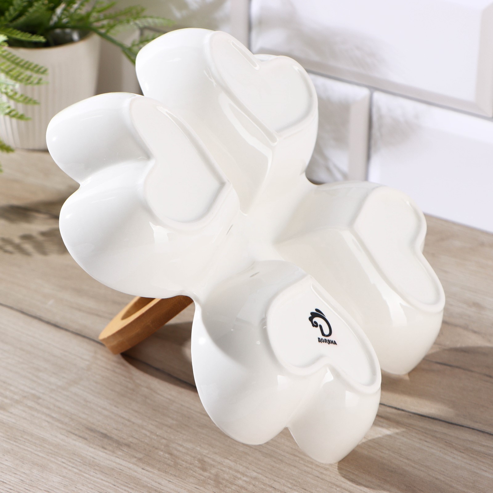 Менажница фарфоровая 4 ячейки доляна «эстет. квадрат», D=24 см, цвет белый