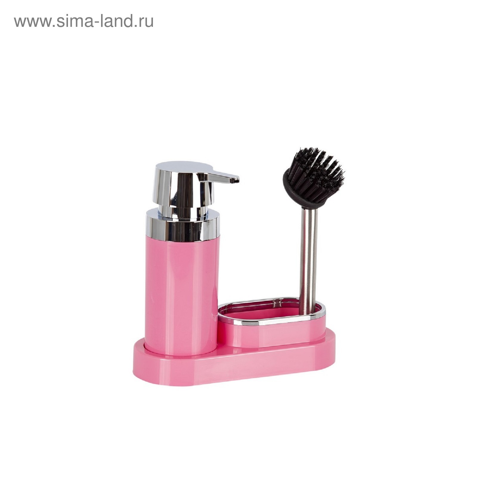 Кухонный набор для мытья посуды, 20х8,5х19,5 см, цвет розовый